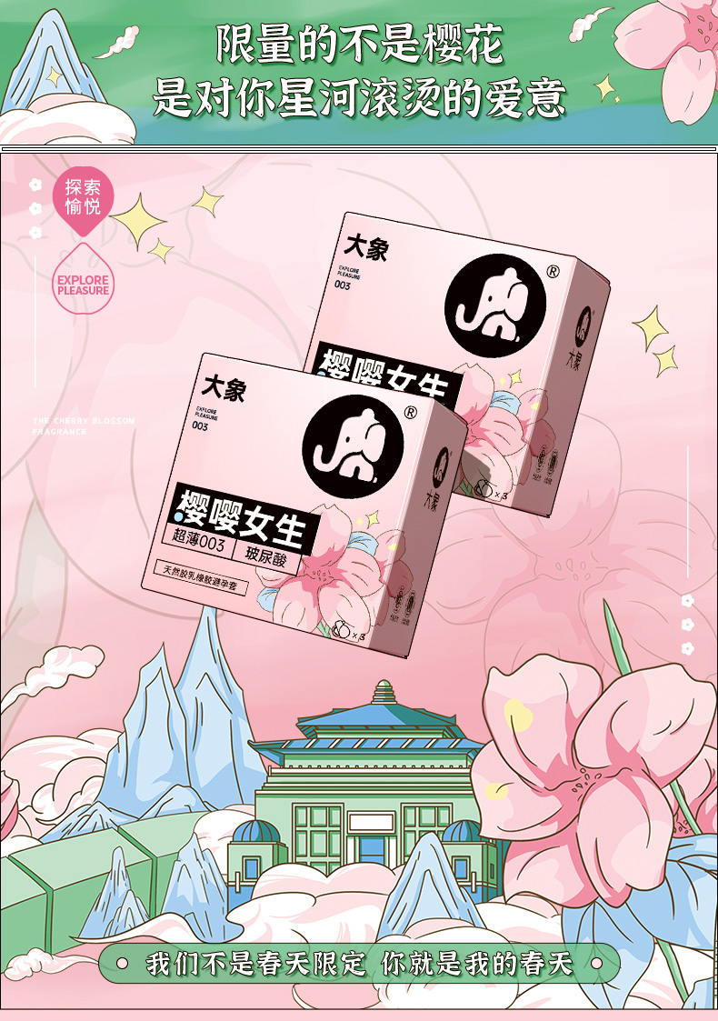 【内含快感因子】大象安全避孕套 嘤嘤女生只3+激润款2只 组合5只装