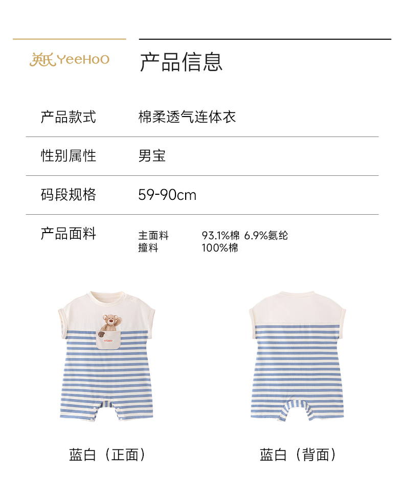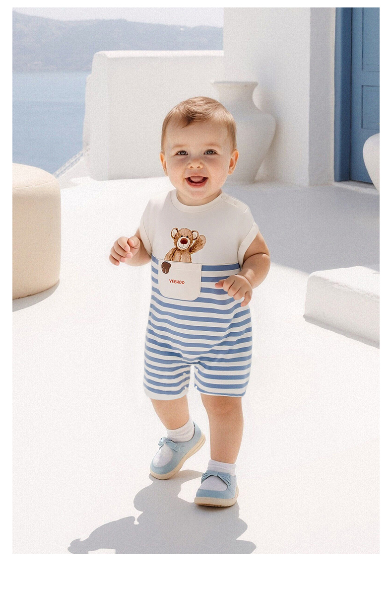 【联名款】英氏&Happy Horse宝宝夏季短袖连体衣速干透气哈衣
