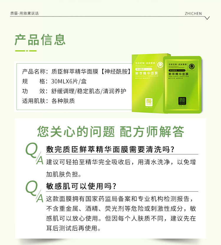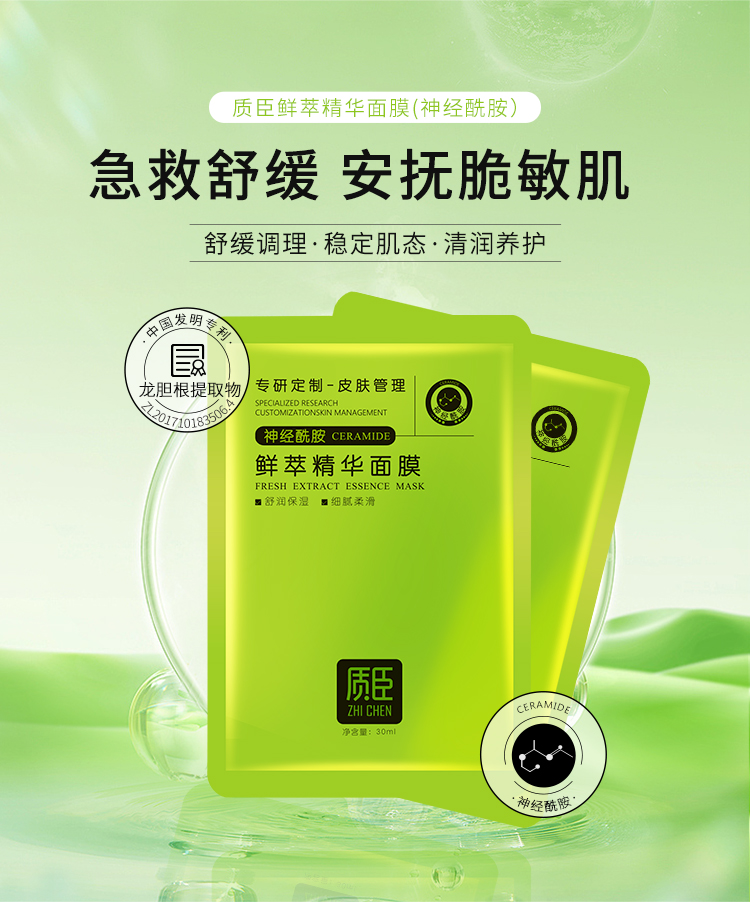 【2送1】质臣鲜粹精华面膜【神经酰胺】【6片/盒】【60】