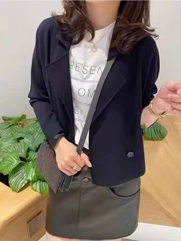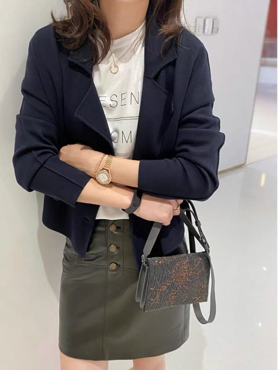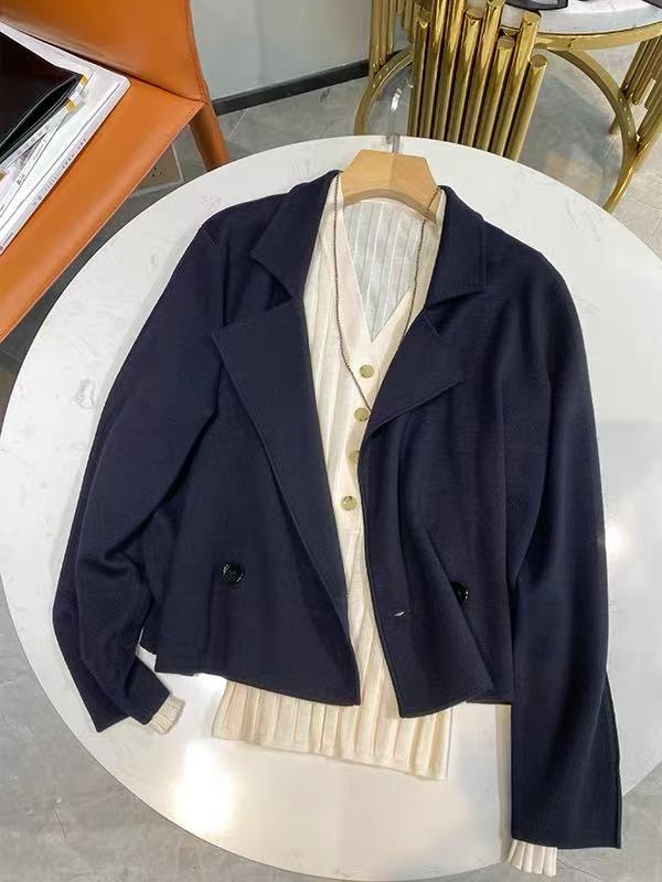 【孤品捡漏】G130藏青包边精致针织西装-喜出