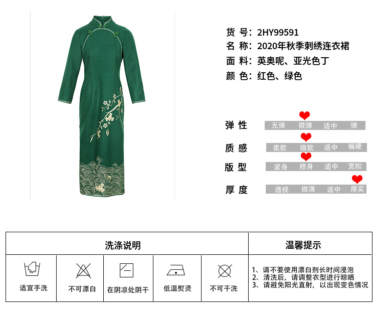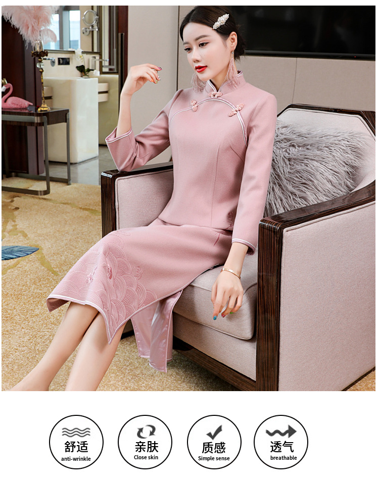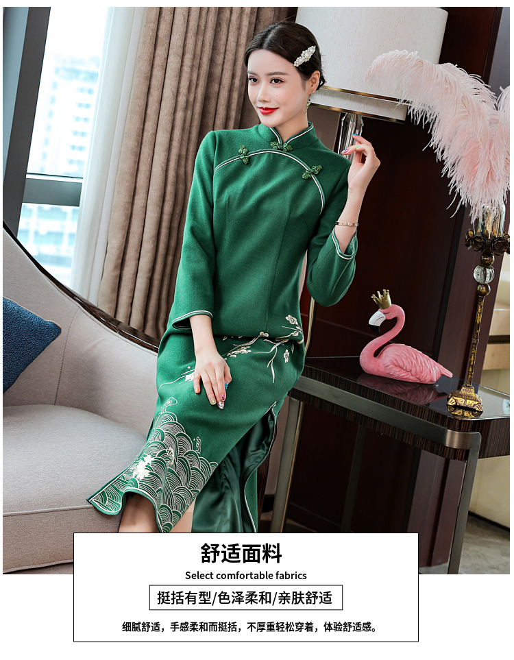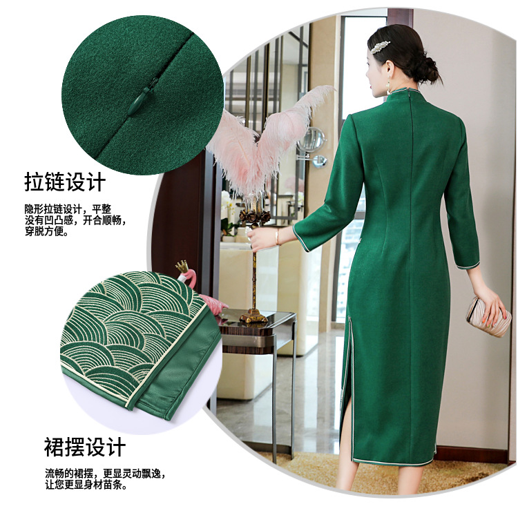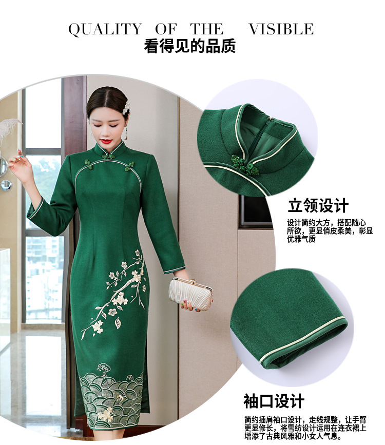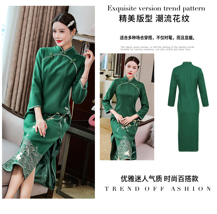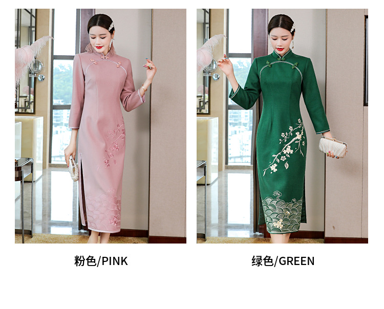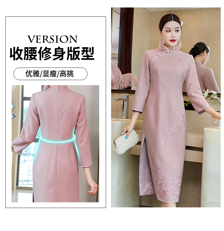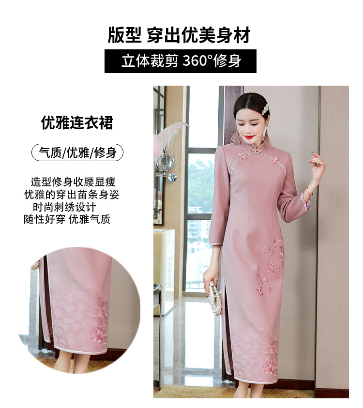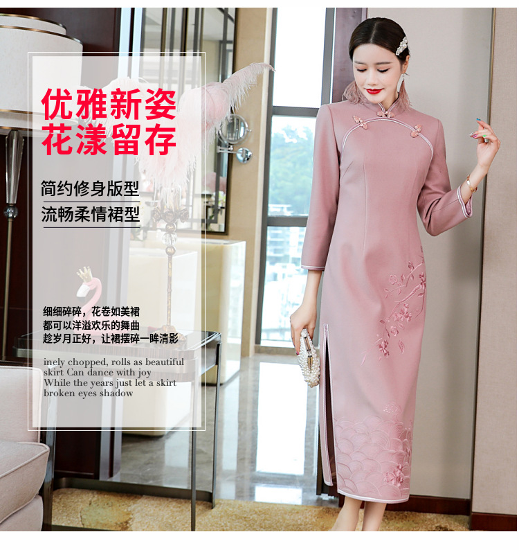 MW-HY99591旗袍改良长袖连衣裙2020新款刺绣时尚妈妈装秋装