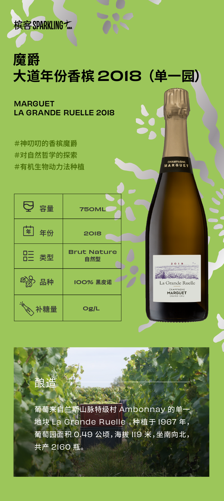Marguet La Grande Ruelle 2018 魔爵大道年份香槟2018(单一园)