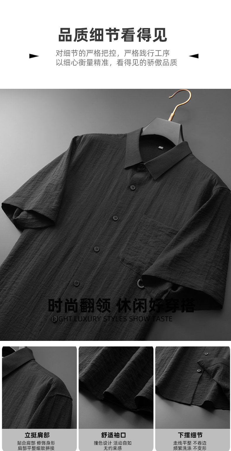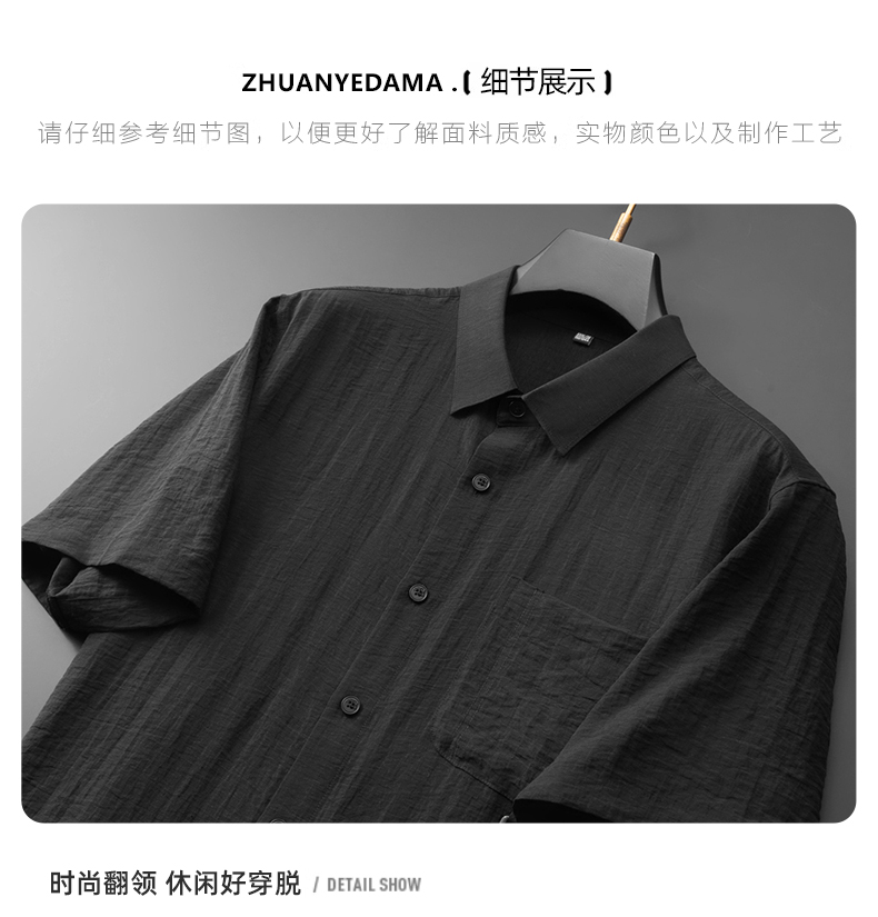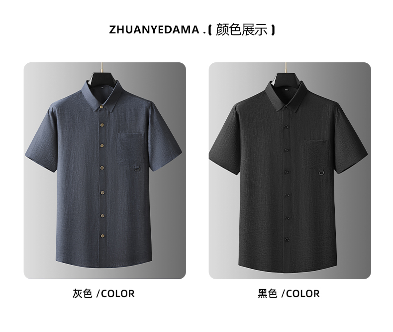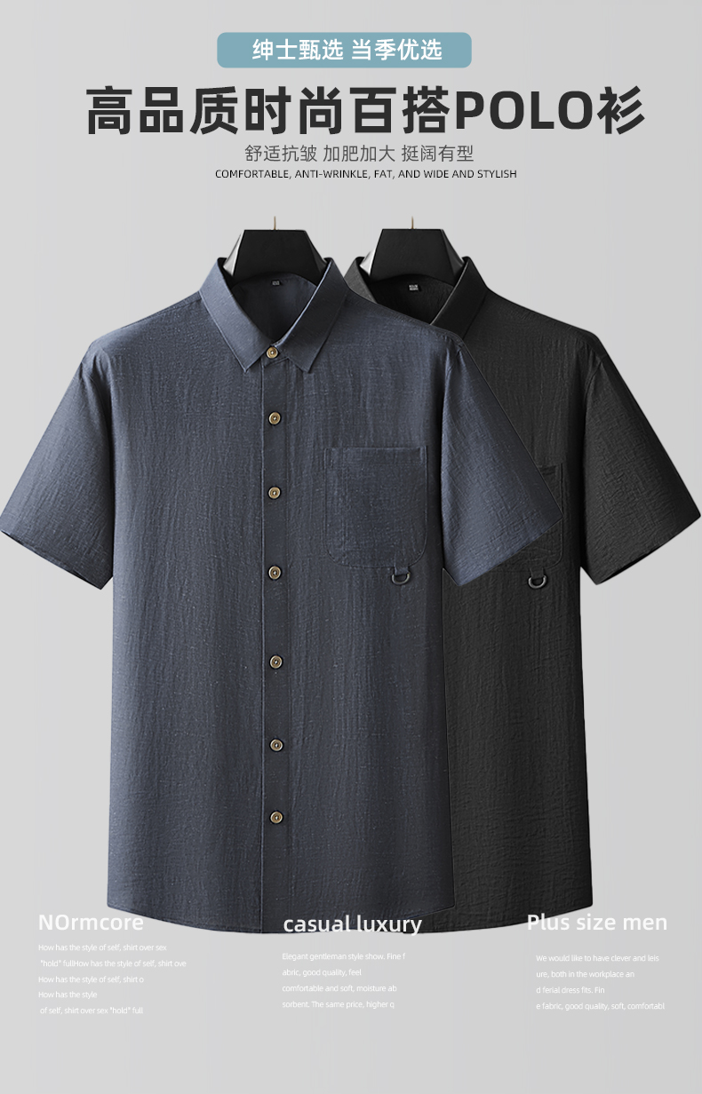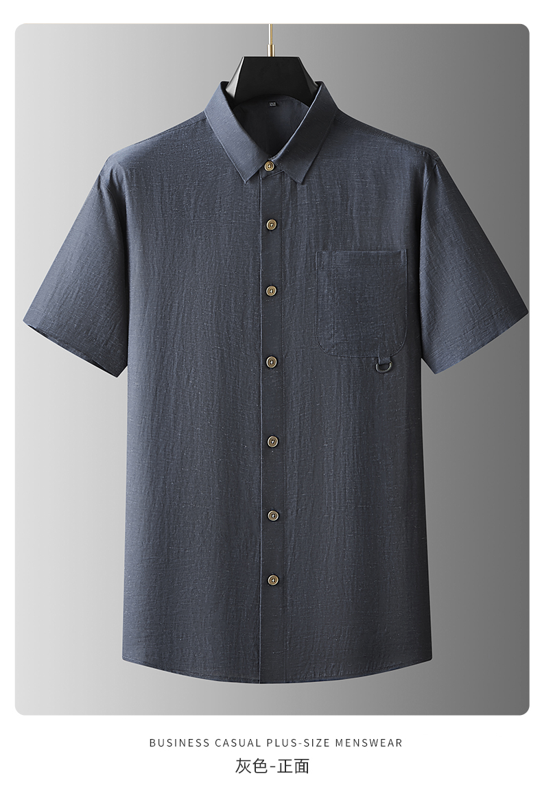 【亚麻】【DDA】大依优型大码短袖衬衫翻领衬衣商务休闲透气半袖夏季上衣男士