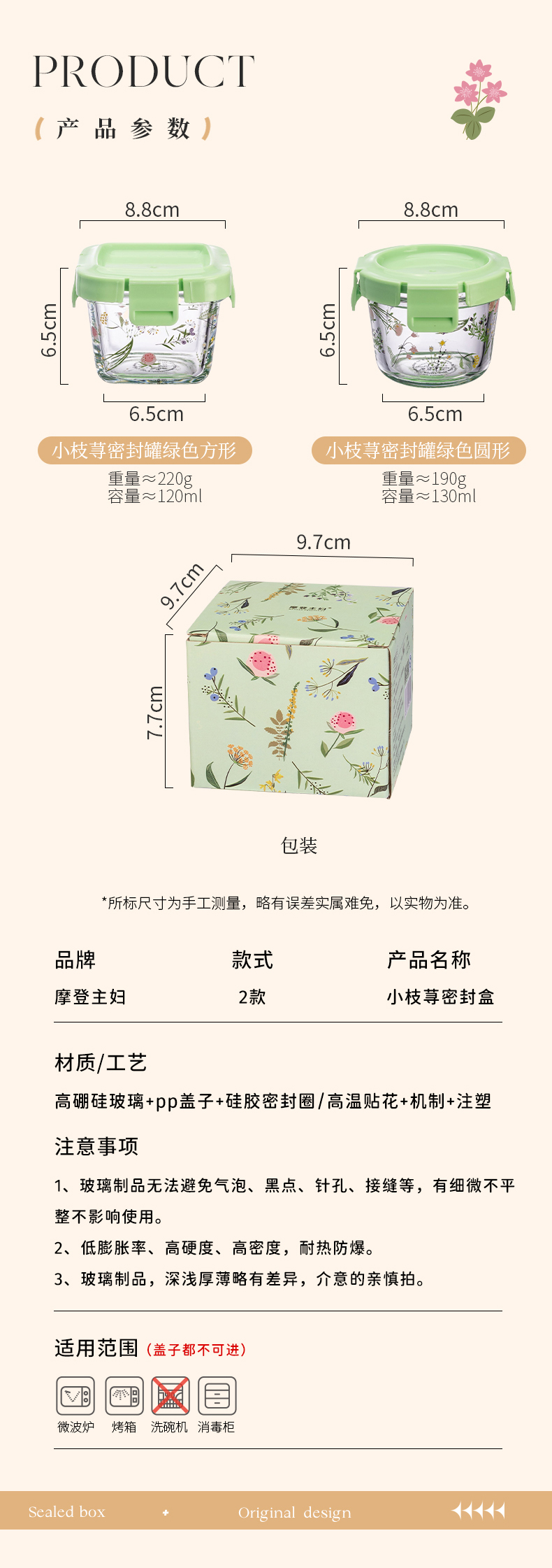 摩登主妇小枝荨密封罐小玻璃瓶食品级保鲜盒零食储存罐燕窝分装瓶