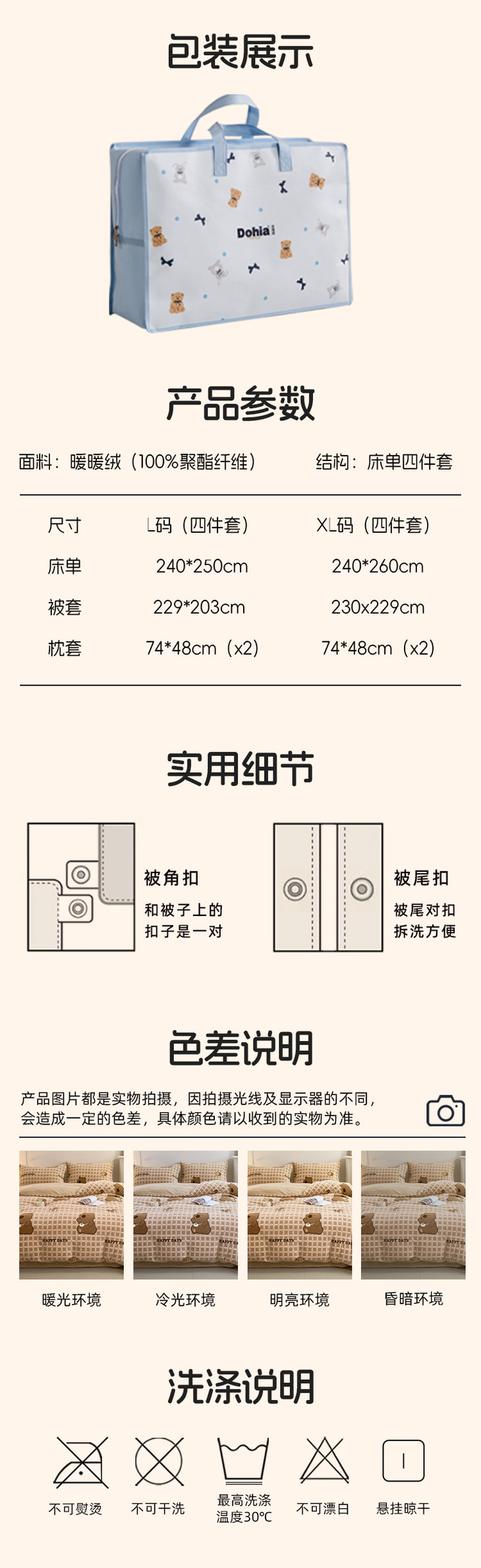 多喜爱 暖暖绒保暖四件套 卡皮宝宝/焦糖小狗/森林派对/星际漫游/樱桃小狗hl【高克重暖绒】【6.8度升温】【双面加厚】萌趣卡通 防静电 三款可选 拉链设计/FX