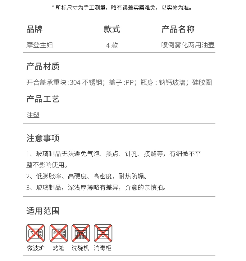 摩登主妇喷倒一体喷油壶厨房家用雾化不挂油防漏油罐酱油醋调料瓶
