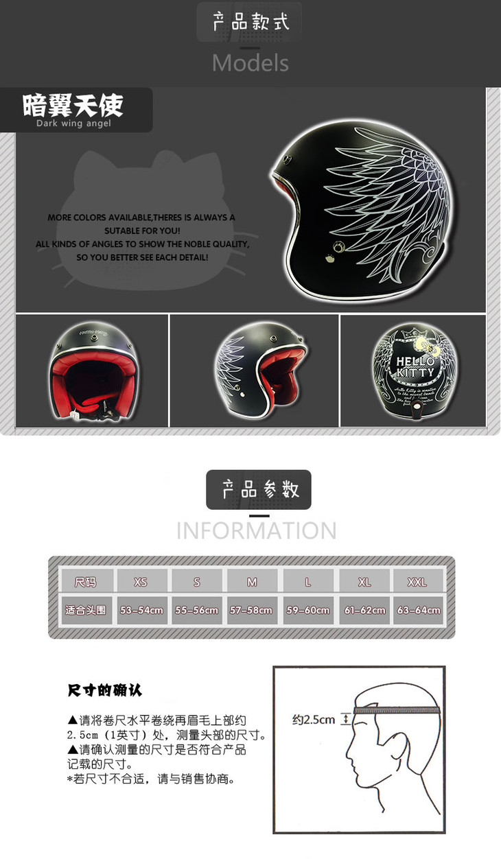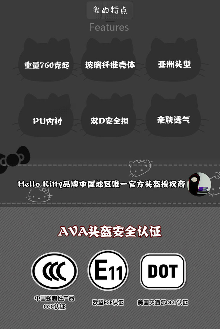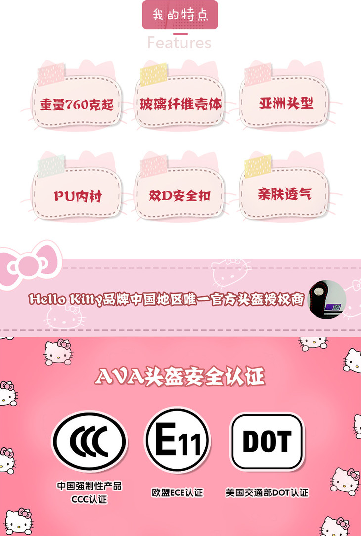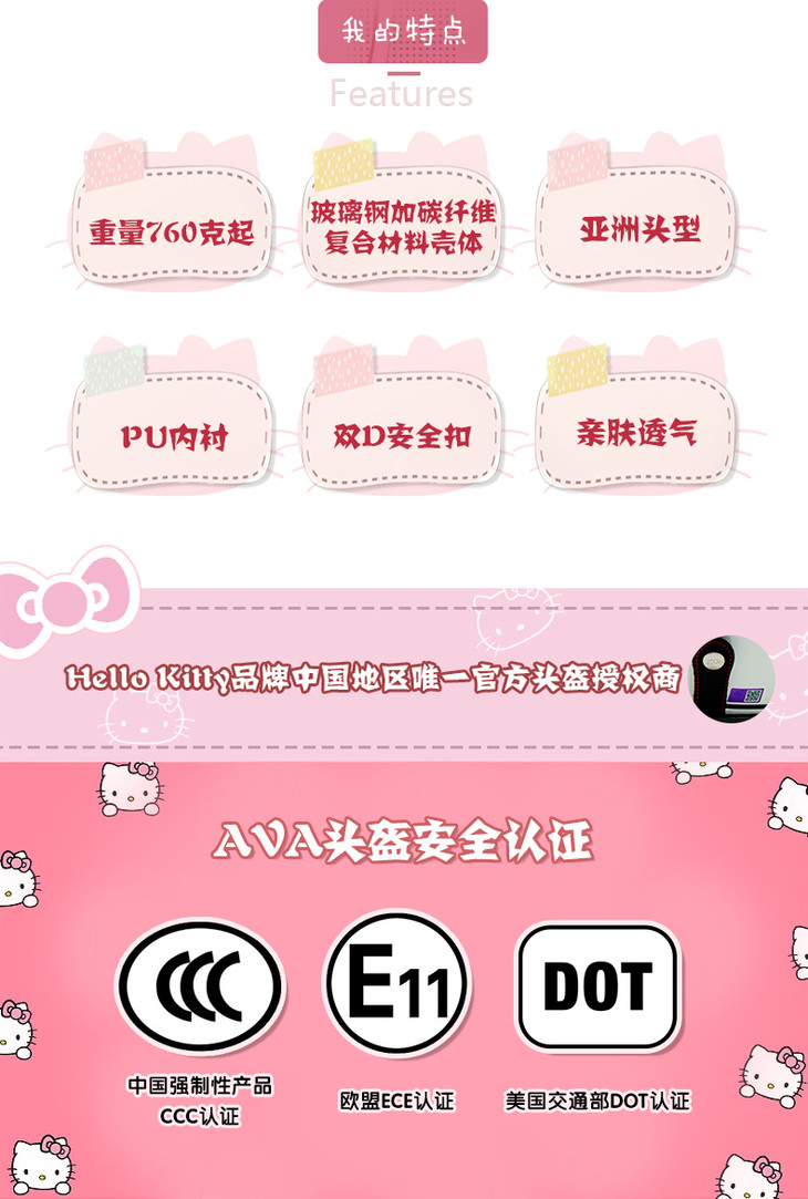 AVA&Hello Kitty联名花色头盔3/4盔半盔