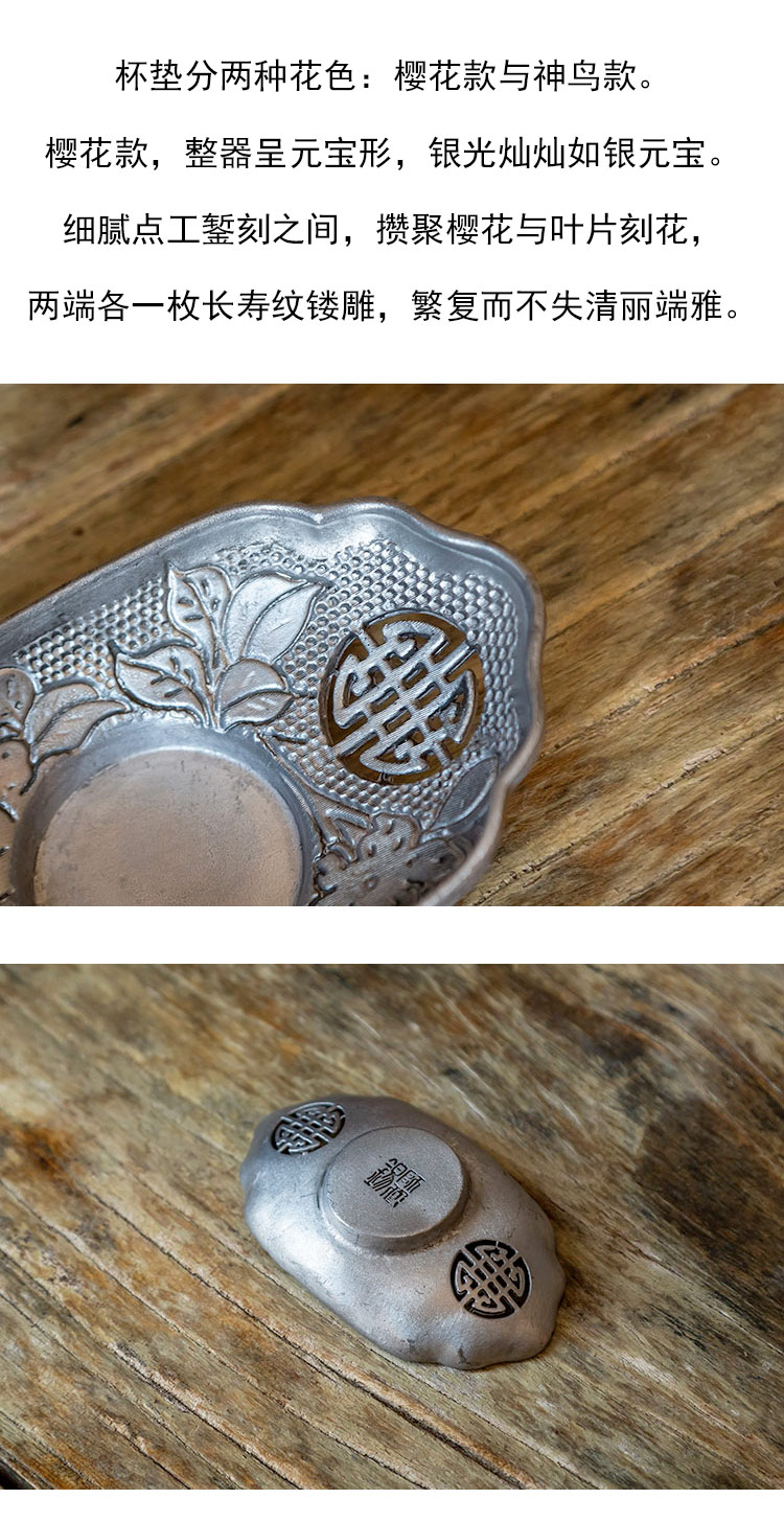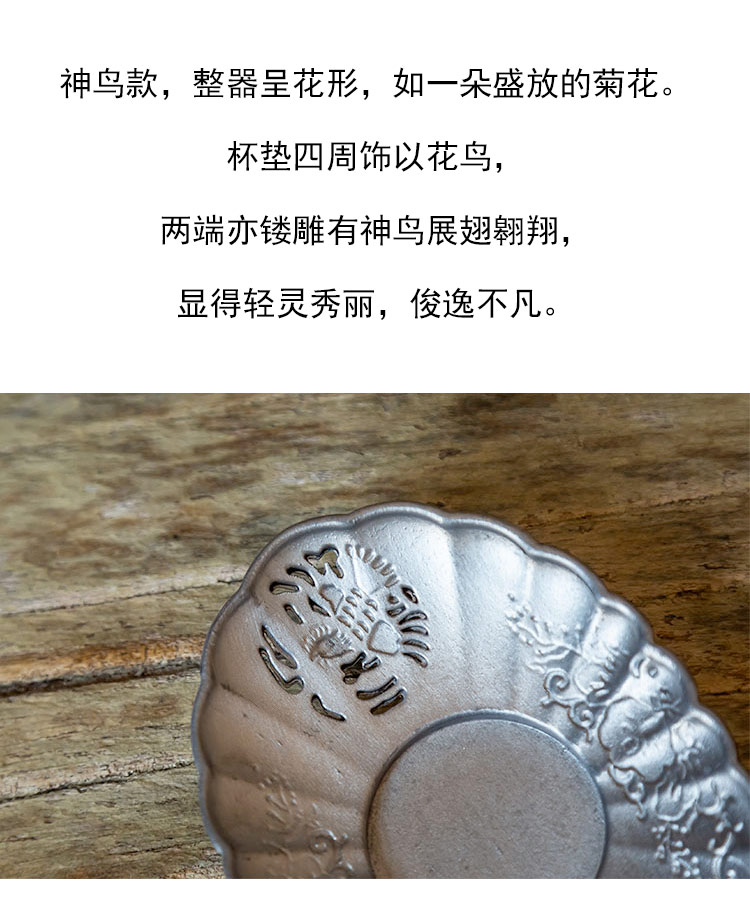 茶香记 锡制锤纹杯垫 古锡镂空 樱花杯垫 神鸟杯垫 茶道零配 杯托