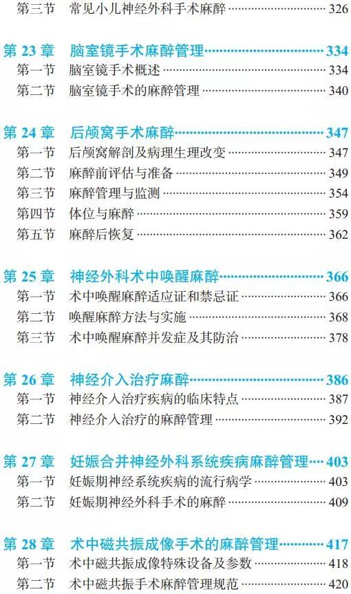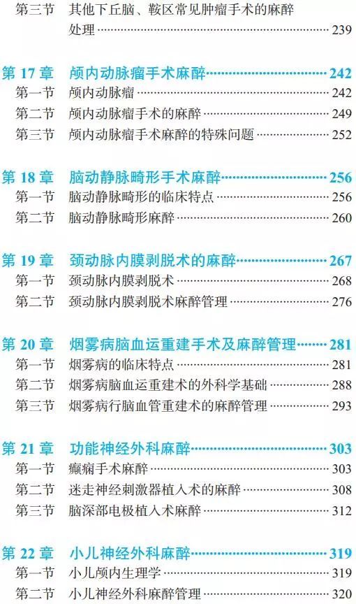 ▶ 新增「神经药理学基础」「神经影像学基础」「微创神经外科技术」「麻醉前评估与准备」「脑动静脉畸形手术麻醉」「烟雾病脑血运重建手术及麻醉管理」「神经外科术后重症监测与治疗」七个章节,并大幅更新「神经介入治疗的麻醉」一章。
