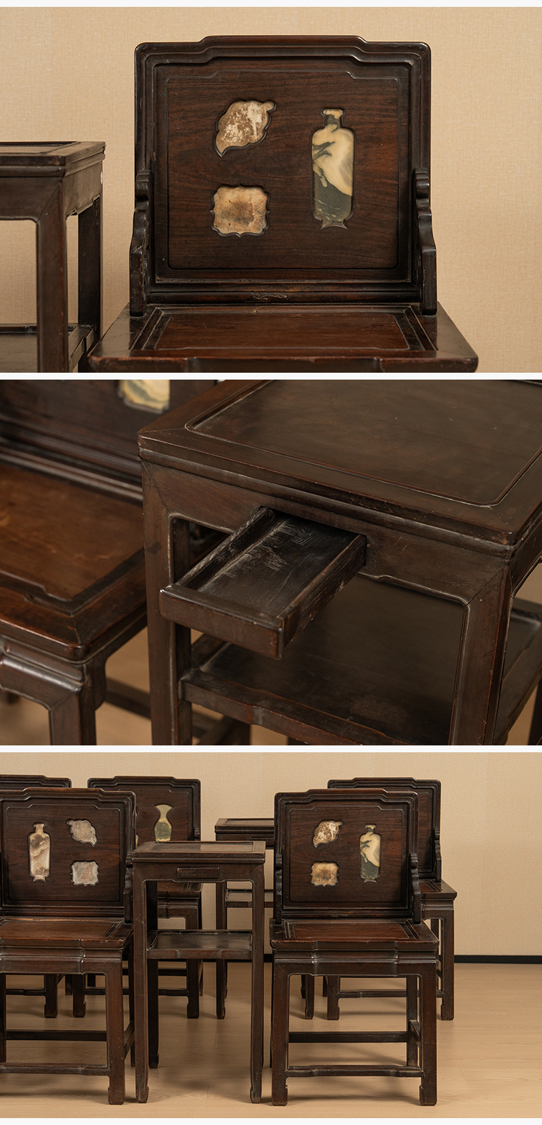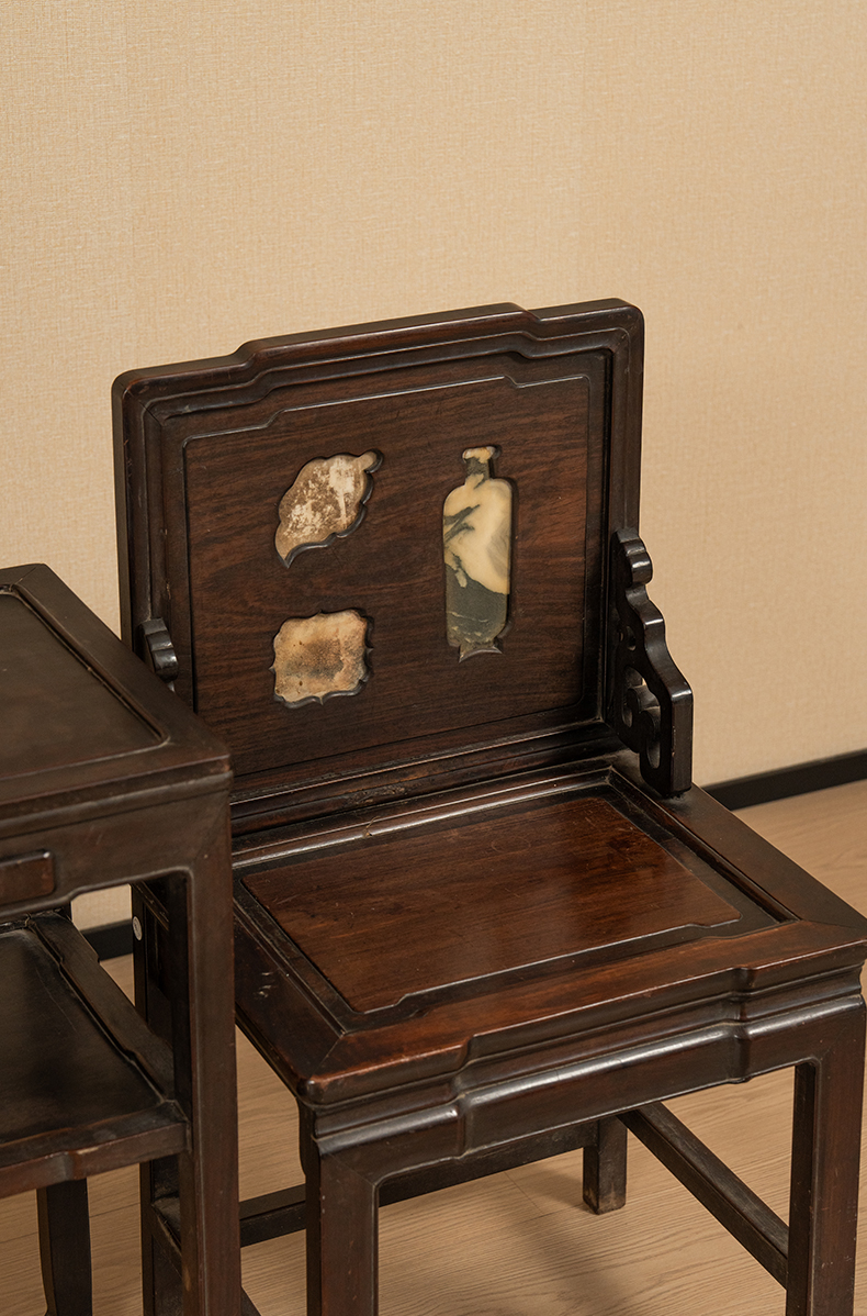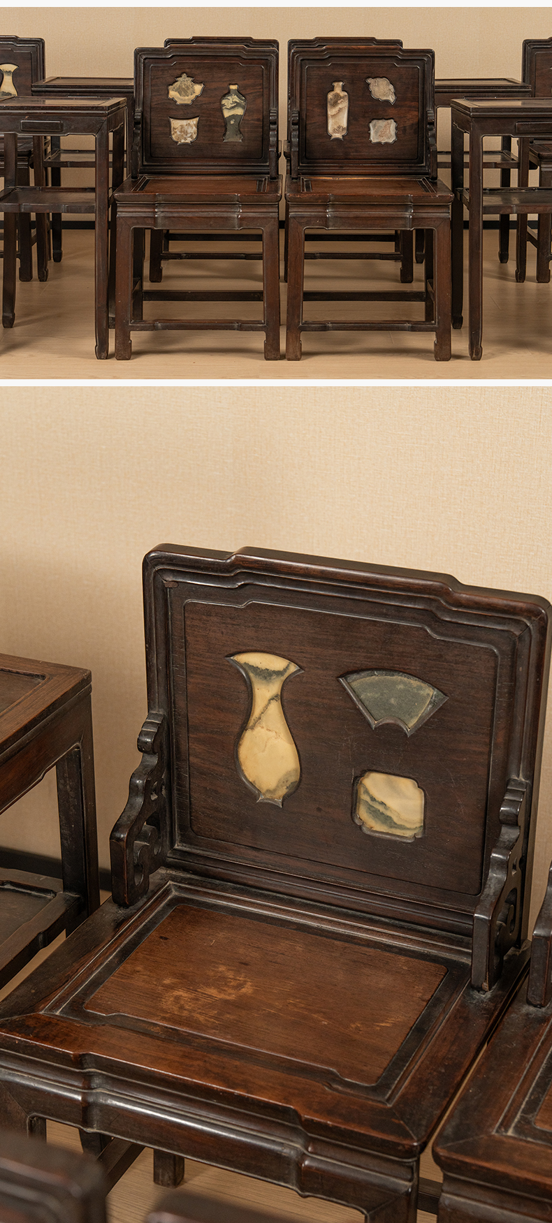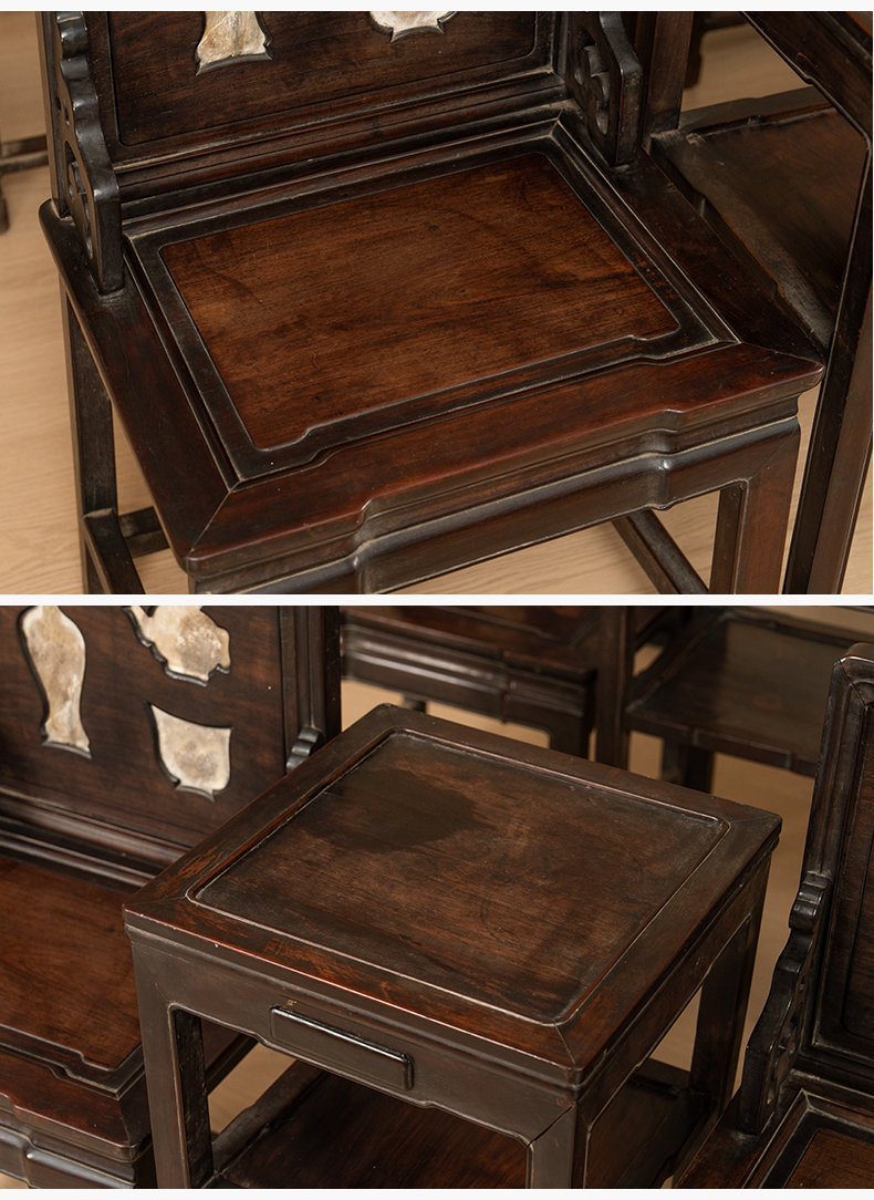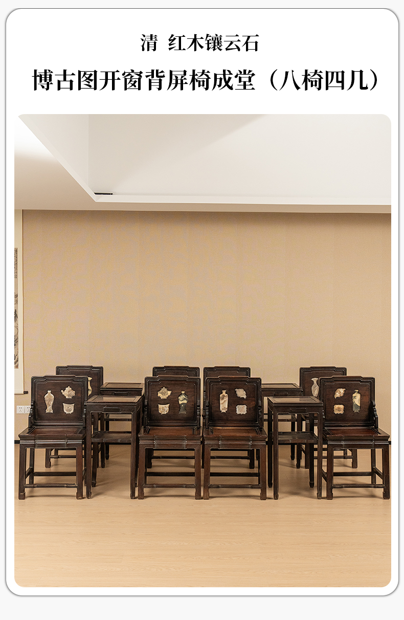 清 红木镶云石博古图开窗背屏椅成堂(八椅四几)