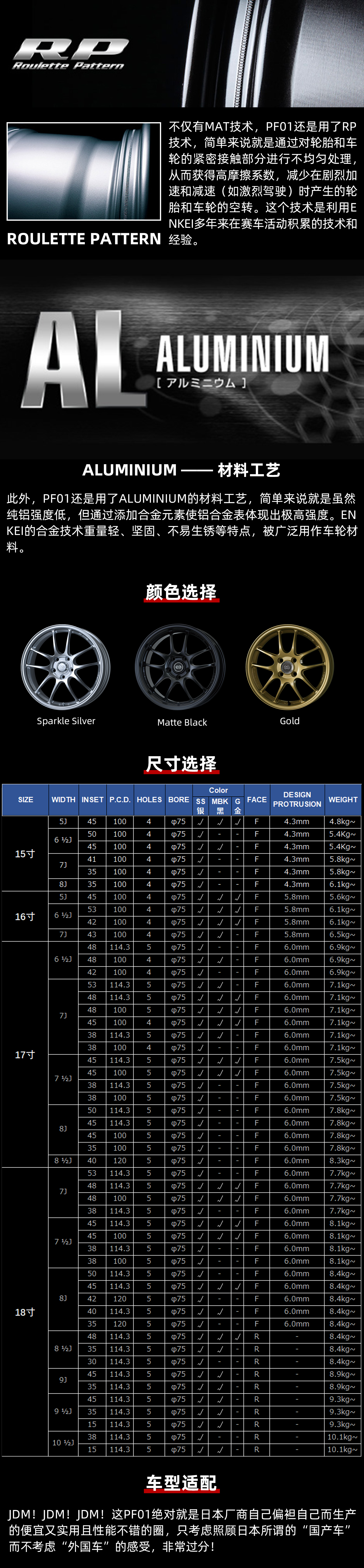 ENKEI PF01 轮圈 15/16/17/18寸 4*100 5*100/112/114.3/120 旋压铸造 日本进口 总代正品