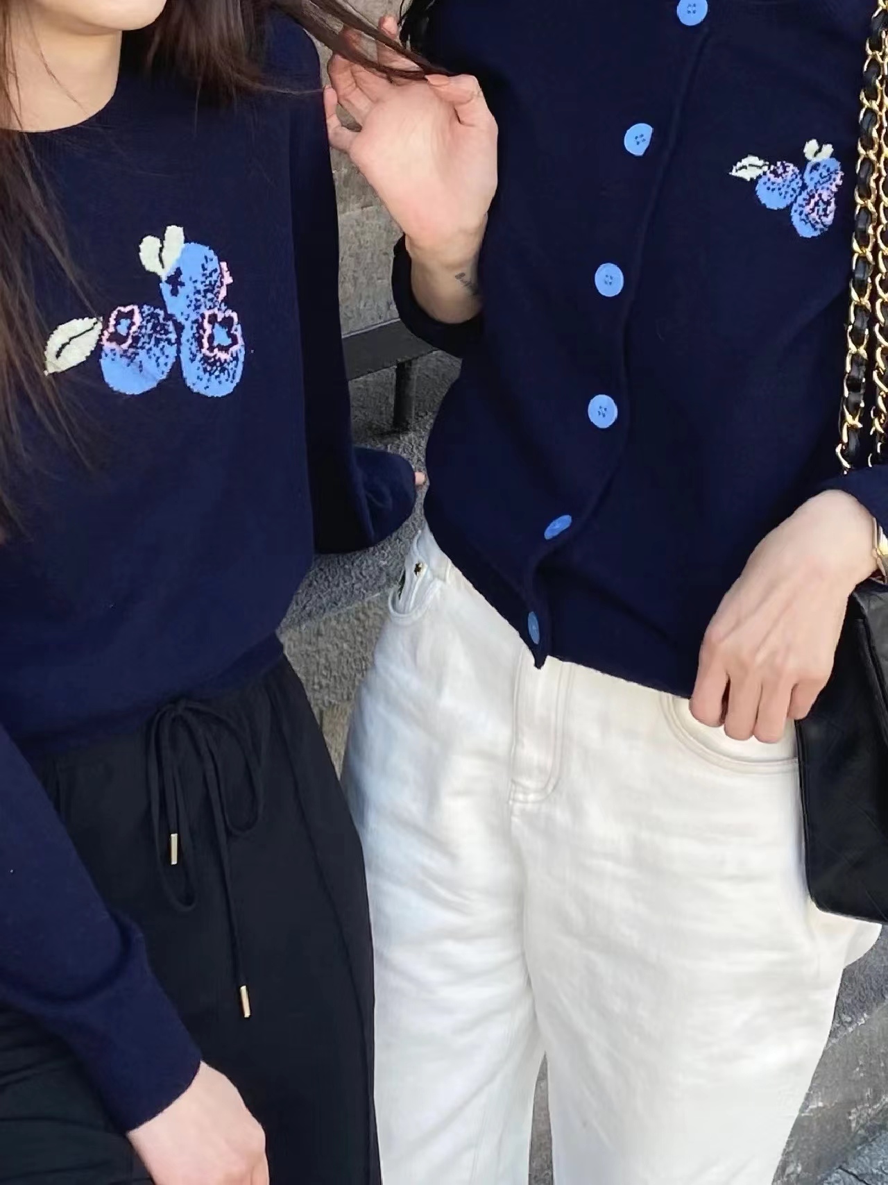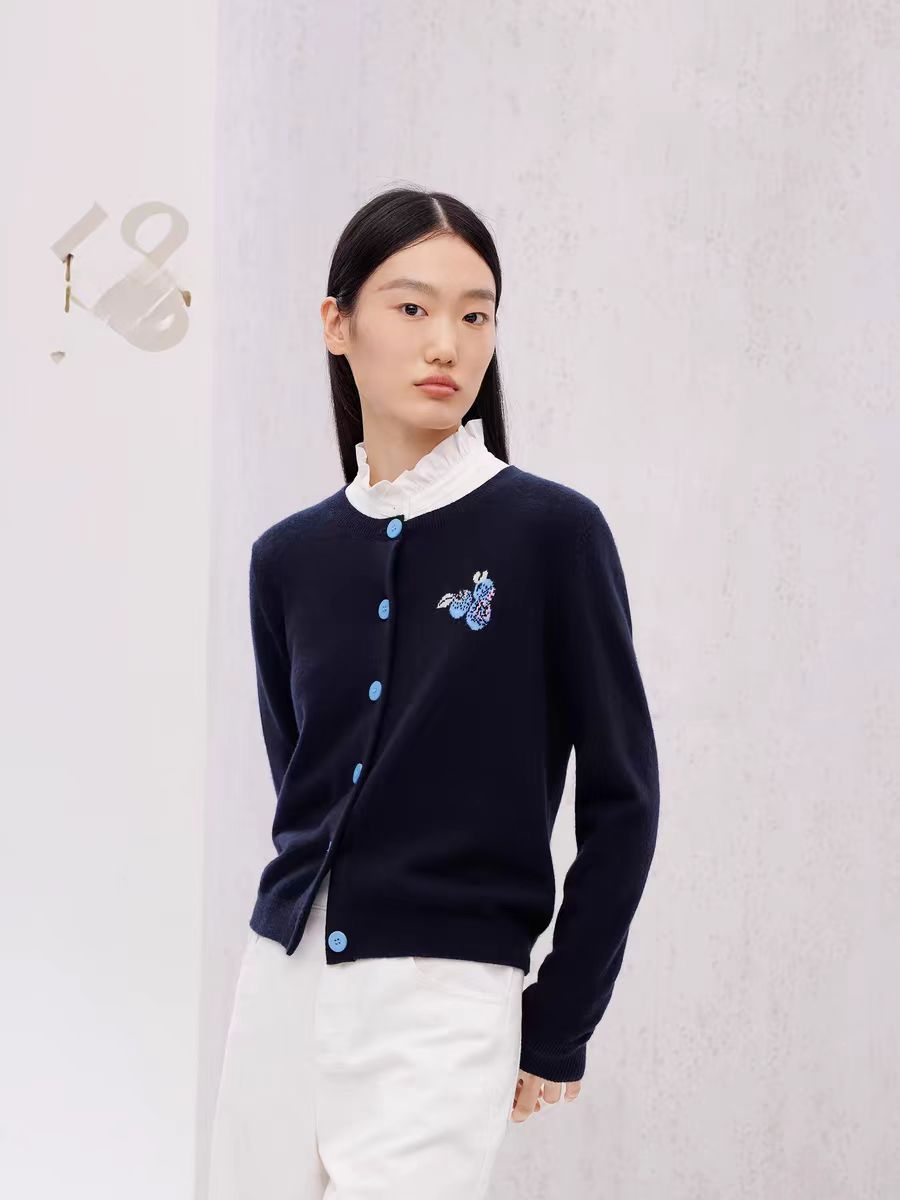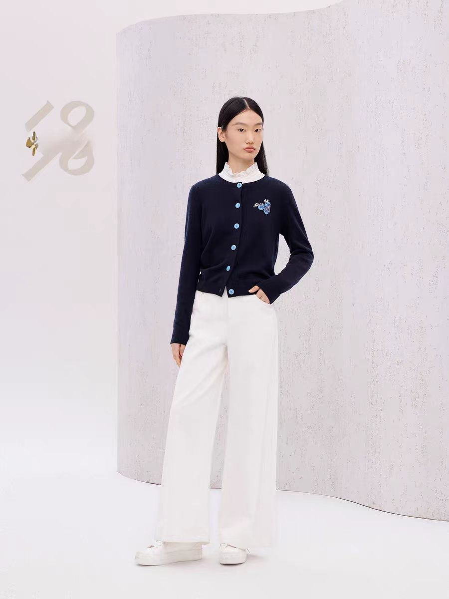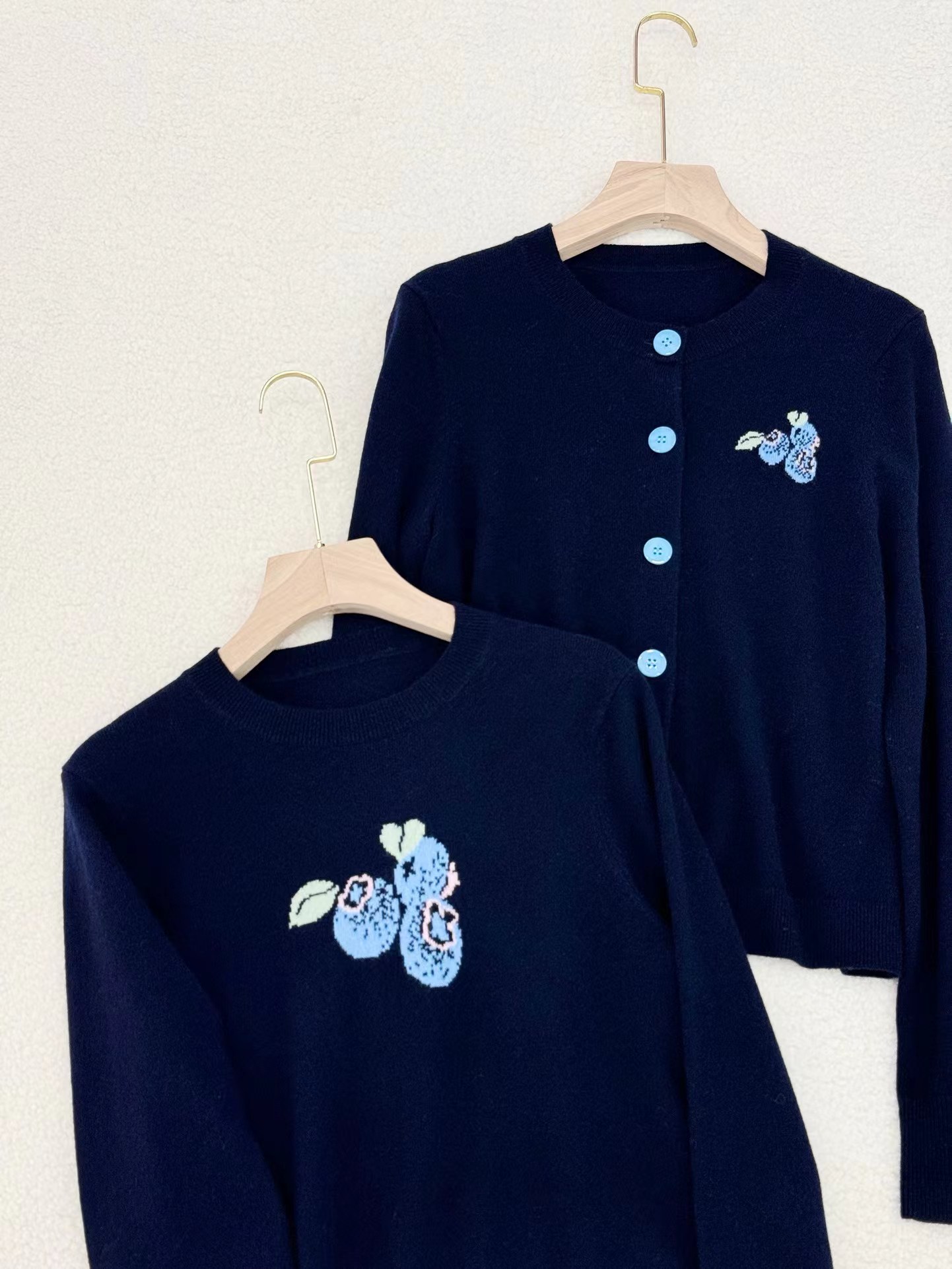 【à perles】博主同款 鄂家可爱的蓝莓图案女士羊绒衫 套头和开衫两个款式【现货】