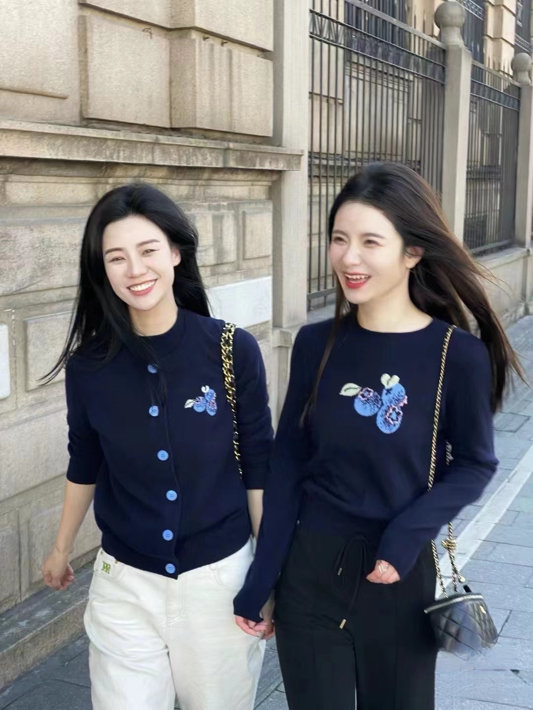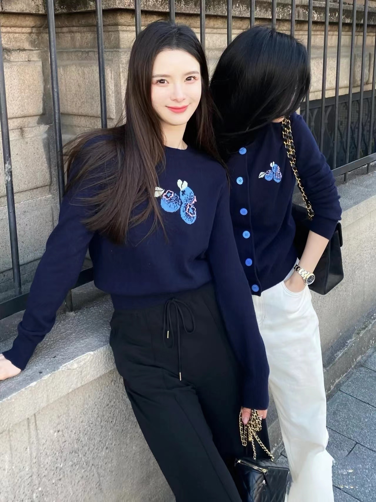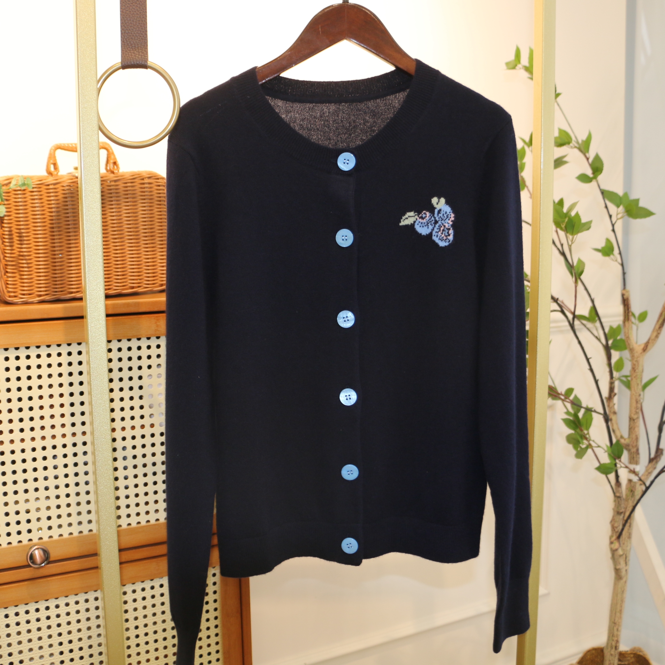 【à perles】博主同款 鄂家可爱的蓝莓图案女士羊绒衫 套头和开衫两个款式【现货】
