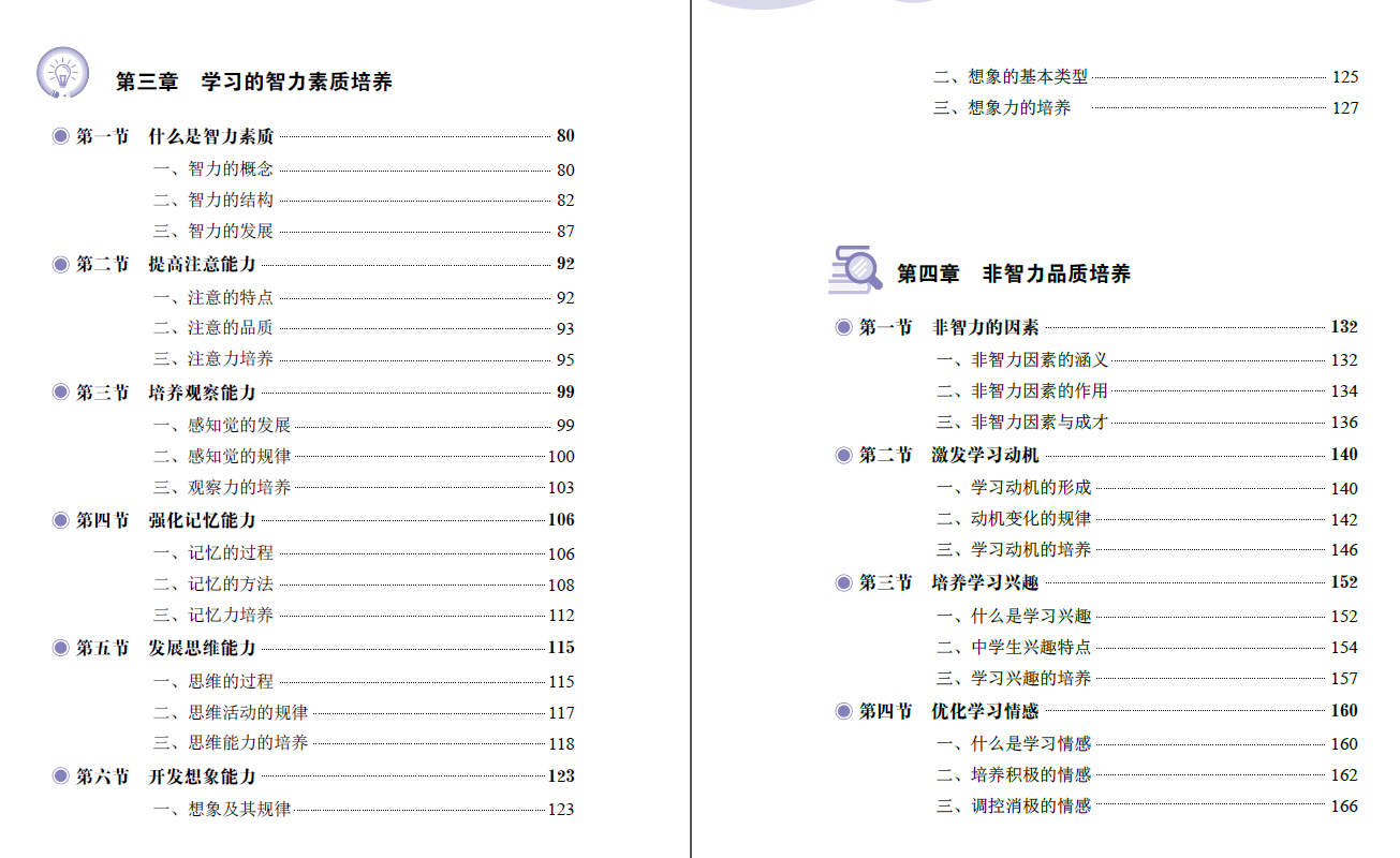 中心主题:帮助学生掌握学而全面的学习与应考方法,从心智的角度解读。本丛书分为5册,包括“初中篇”、“高中篇”、“考试篇”、“通识篇”和“心智篇”等5个部分,共计120万字(每分册20余万字)。“心智篇”分为五章,分别介绍了:中学生学习心理、学习的心理卫生、学习的智力素质培养、学习的非智力品质培养和大脑潜能的生理开发。