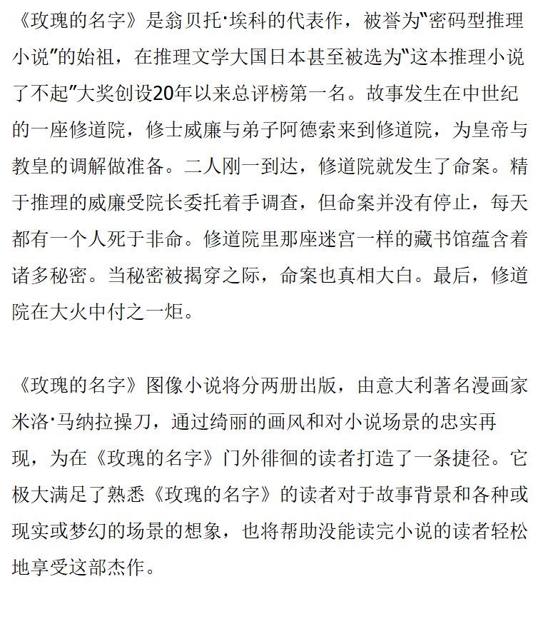 玫瑰的名字:图像小说(上) [意]翁贝托·埃科 著 米洛·马纳拉 绘 陈英 译 古典推理 密码型推理小说始祖 中世纪 绚丽插图 上海译文出版社 正版