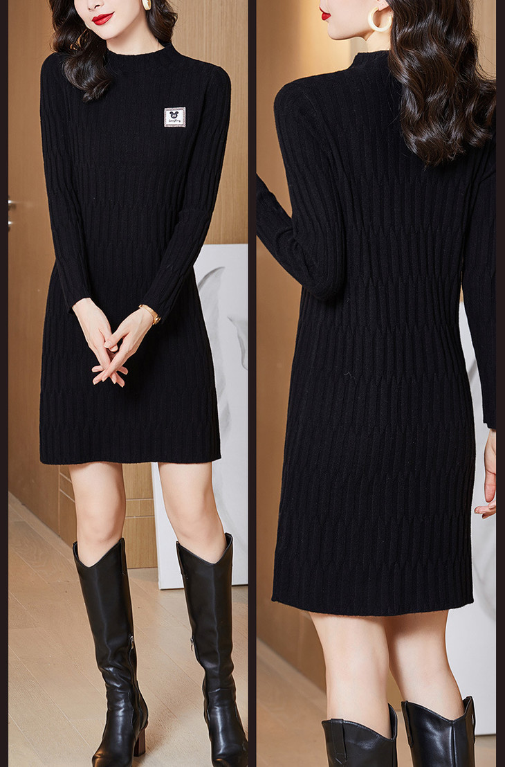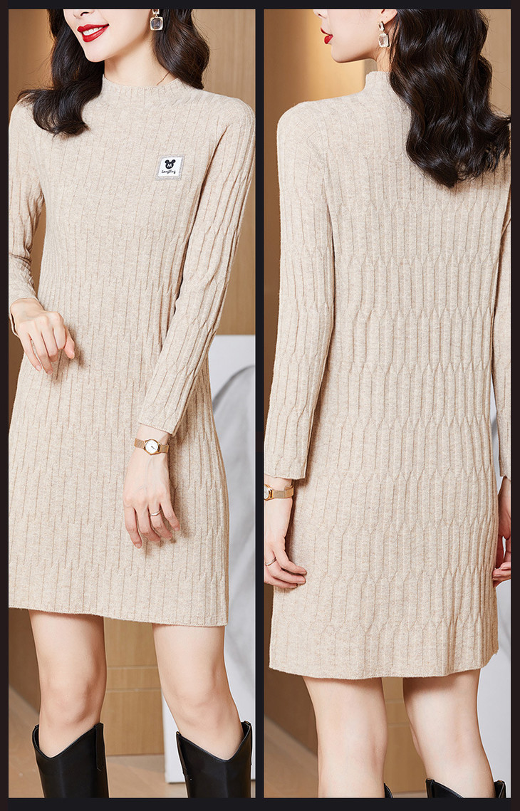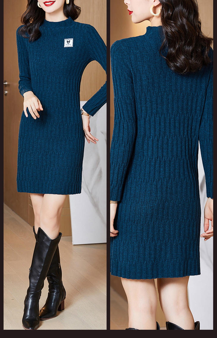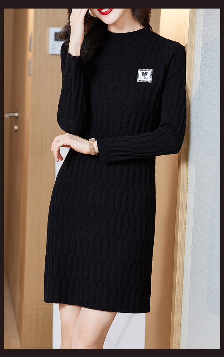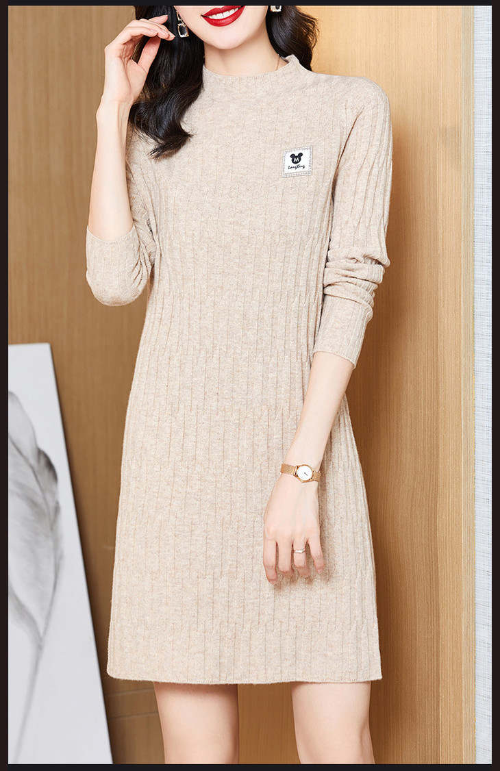 QY 1387纯色素净针织羊毛裙