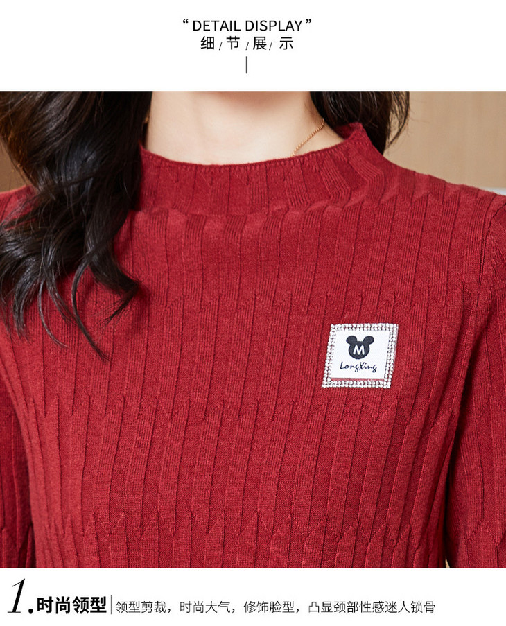 P E7872 半高领大码羊毛针织衫打底