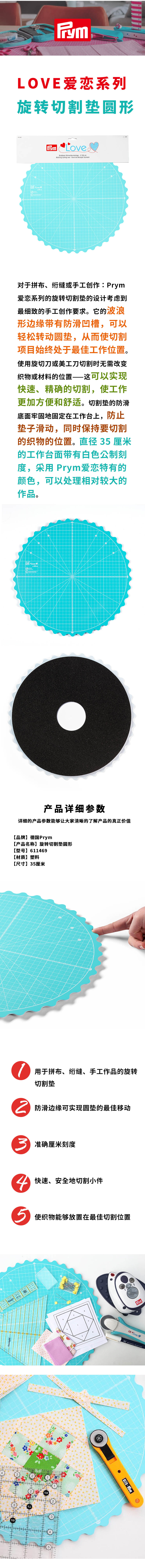 德国Prym 爱恋系列 旋转切割垫圆形35厘米薄荷色