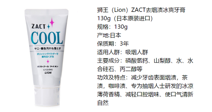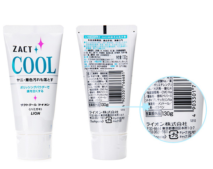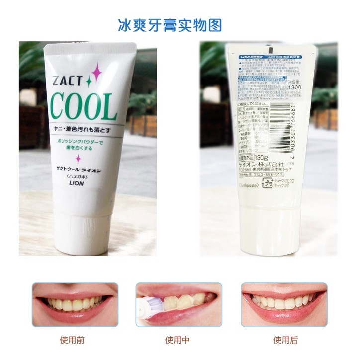 日本狮王ZACT渍脱去烟渍茶渍cool冰爽美白牙膏(766681)