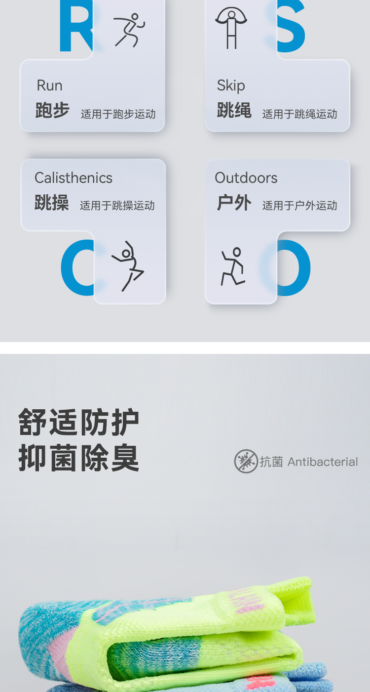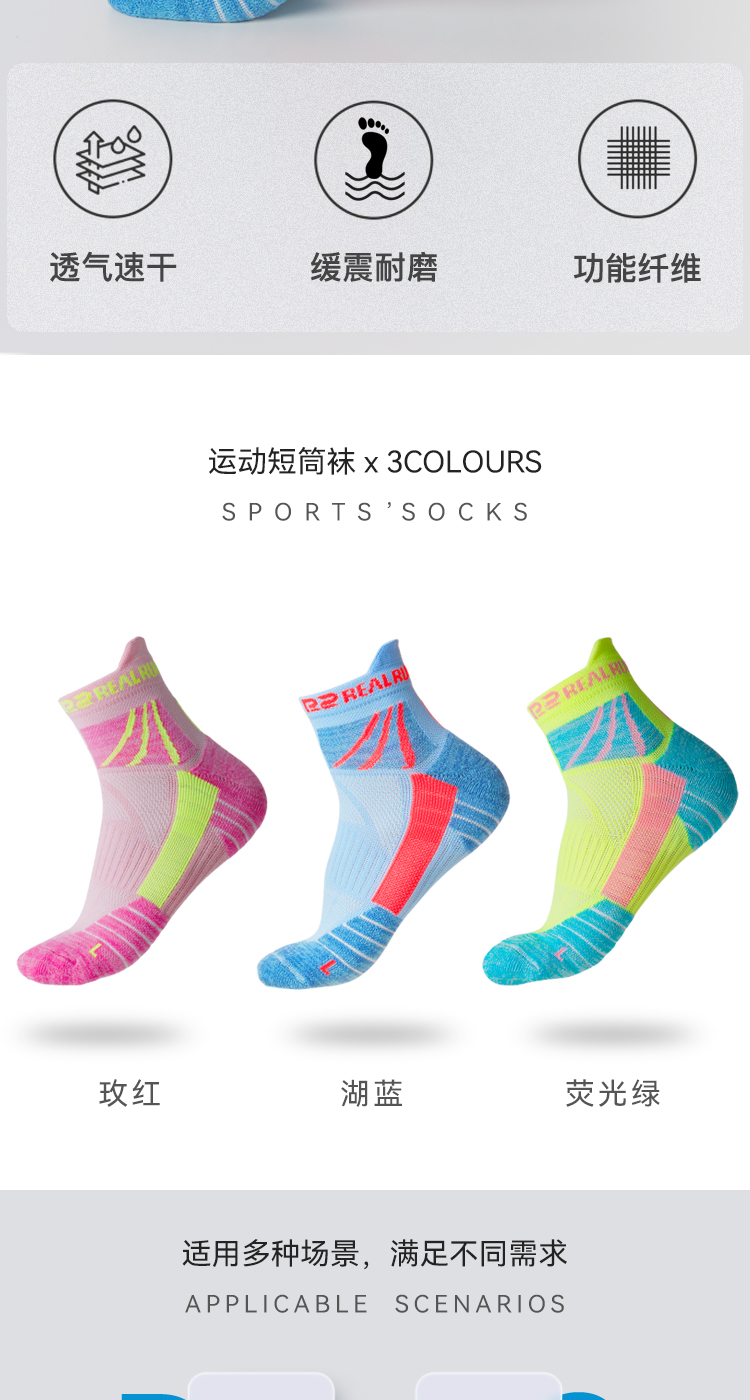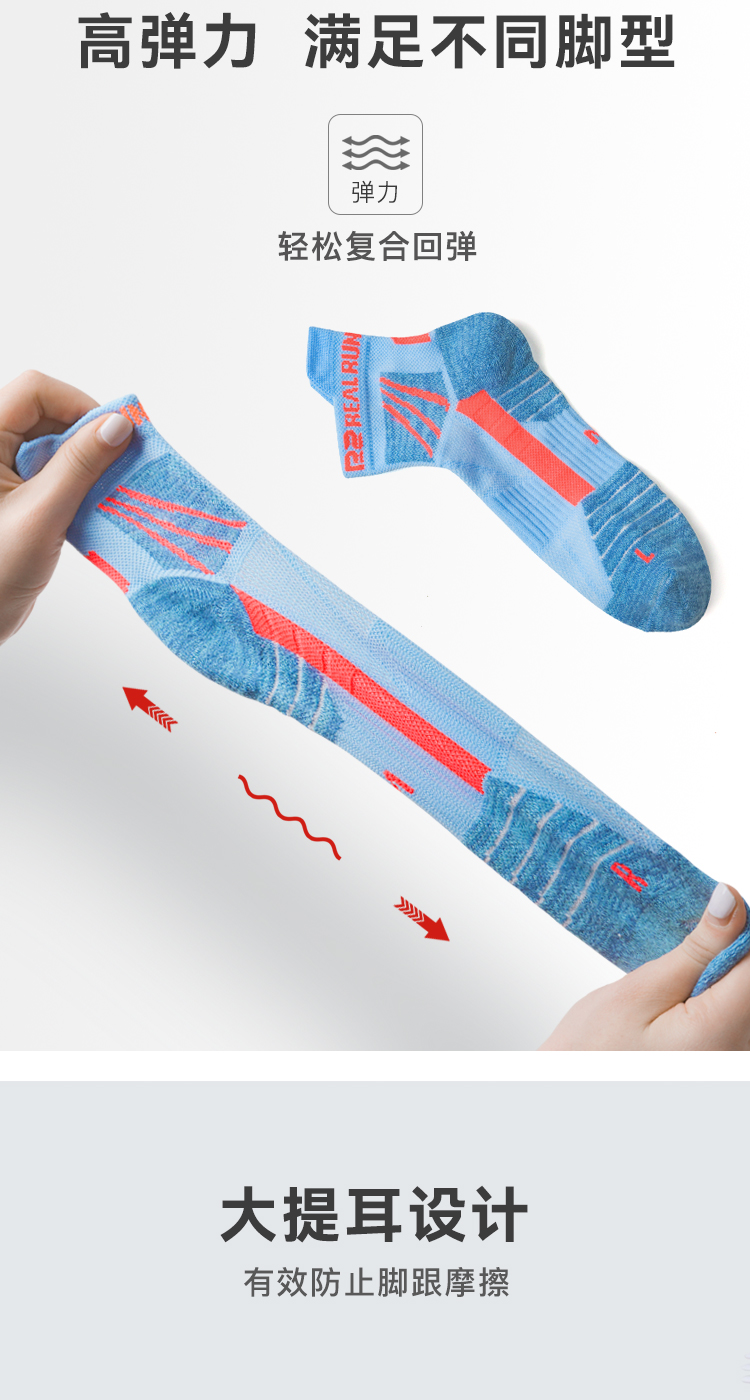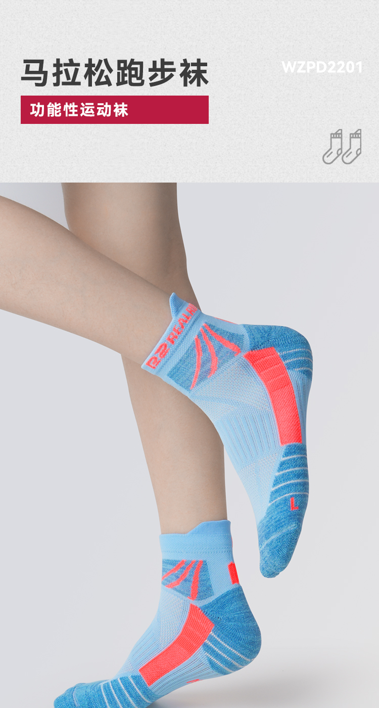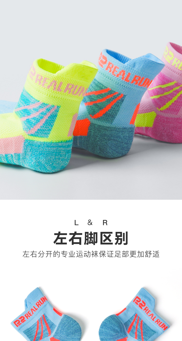R2户外运动跑步袜缓震吸汗透气速干高弹区分左右脚防滑健身短袜