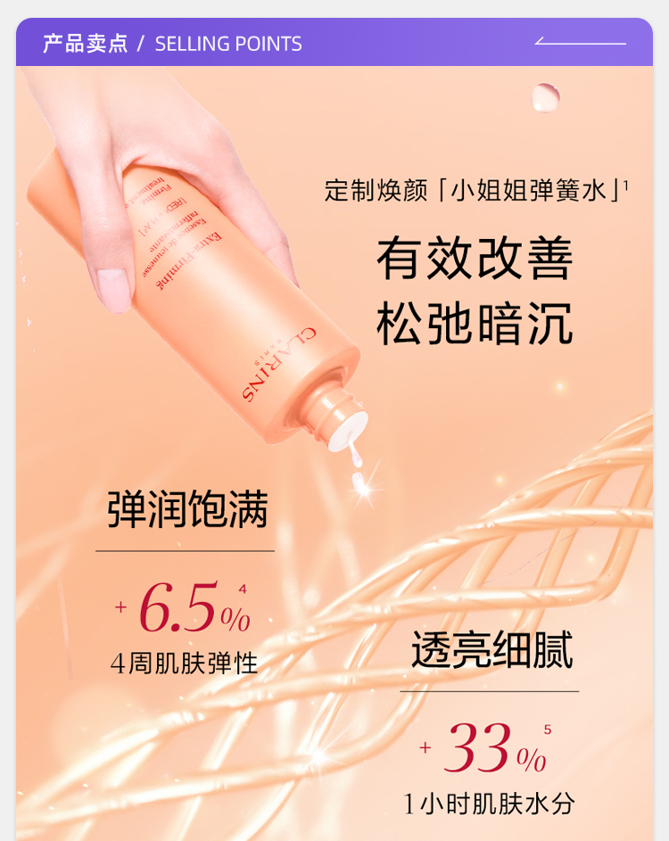 法国Clarins娇韵诗小姐姐精华水200ml弹簧焕颜紧致抗皱分龄水保湿