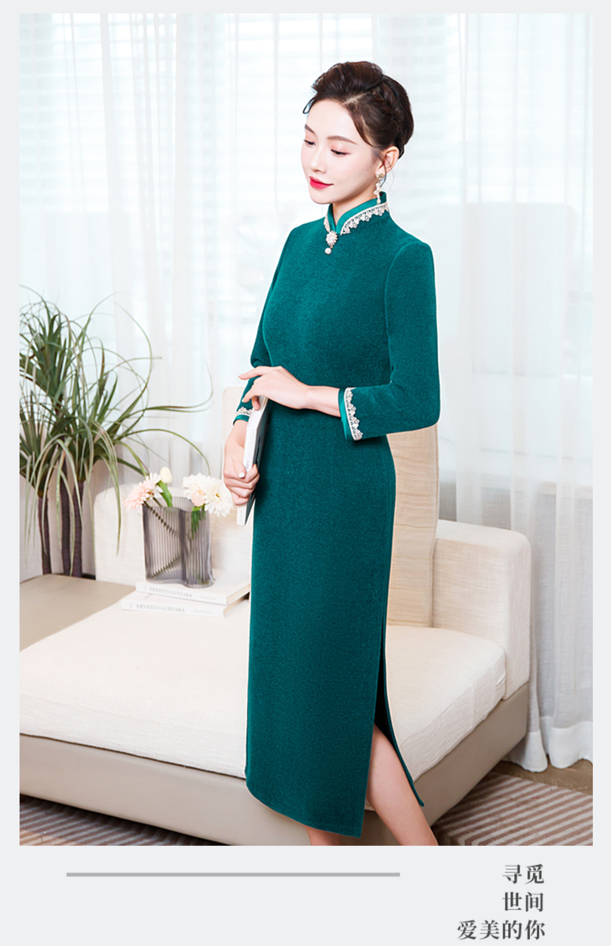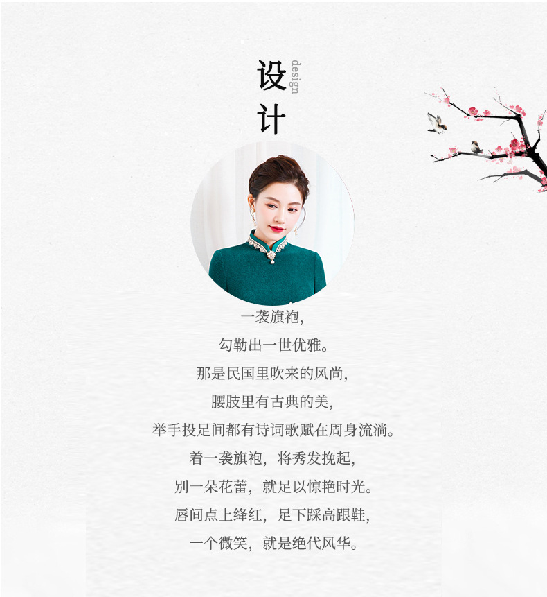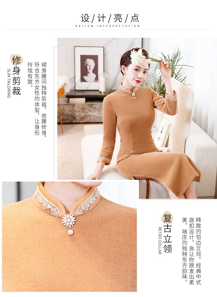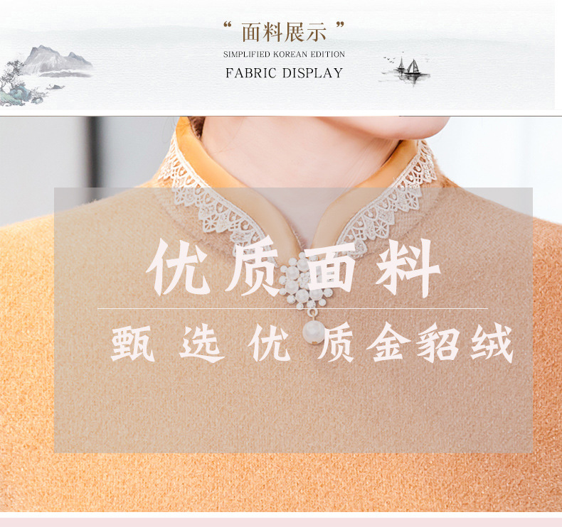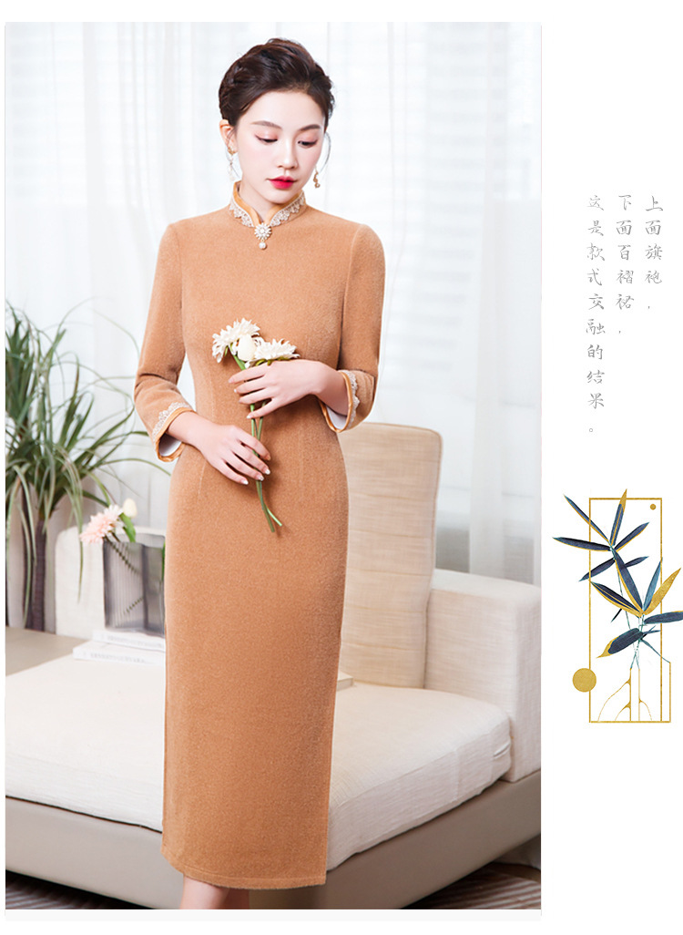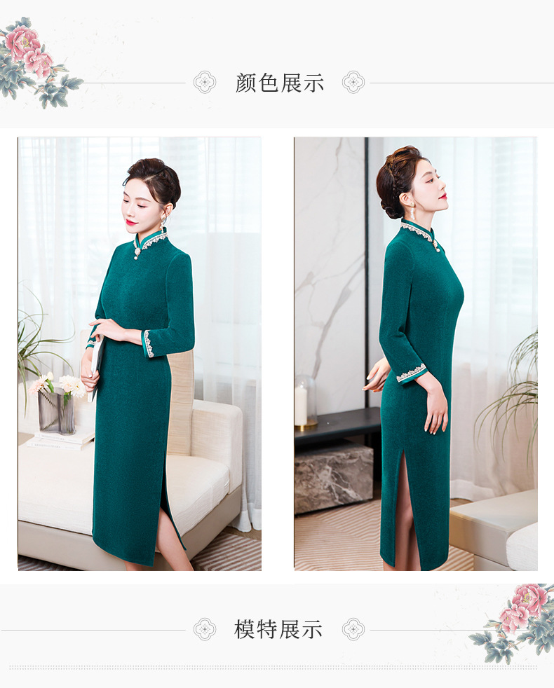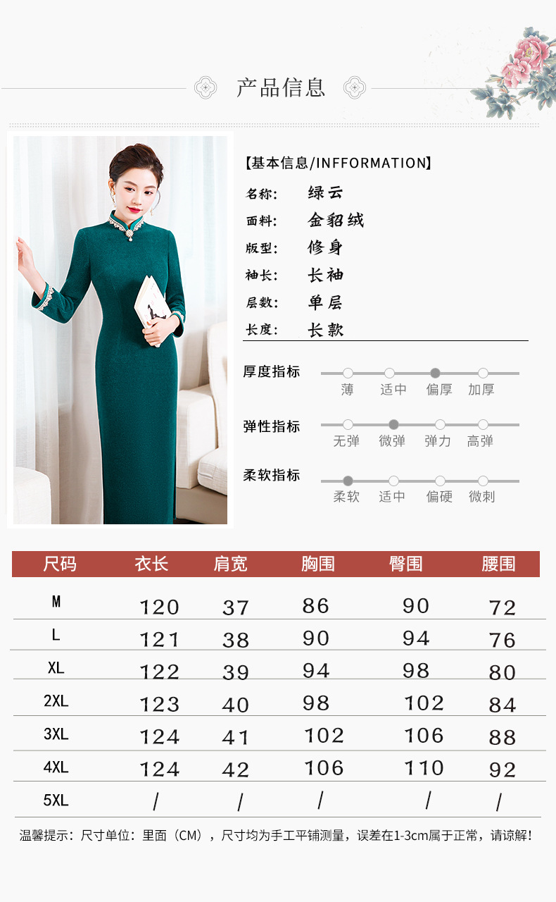 修身显瘦,新款冬季金貂绒面料遮肚柔软肤优雅小清新旗袍TY-928