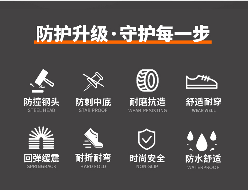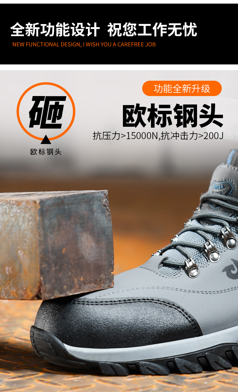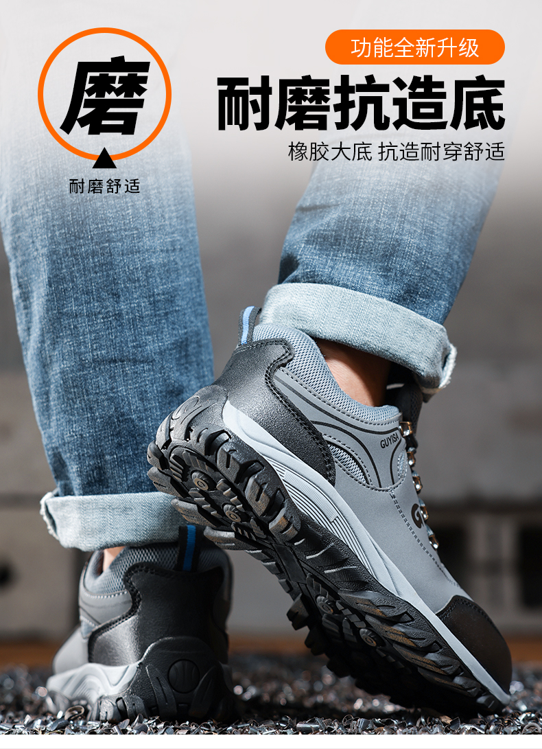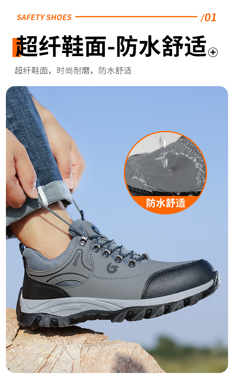2023新品秋款防水男士劳保鞋钢头防砸防刺穿舒适透气工作鞋