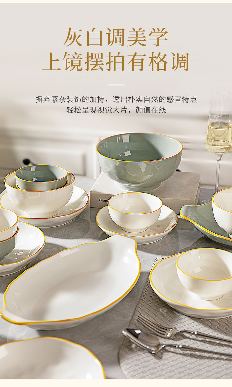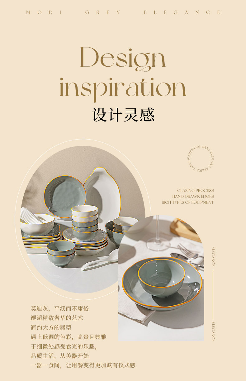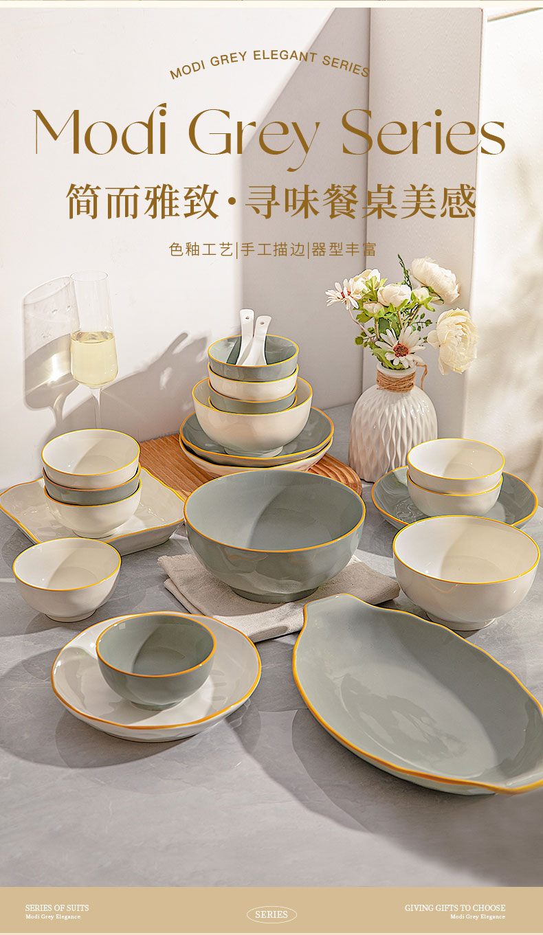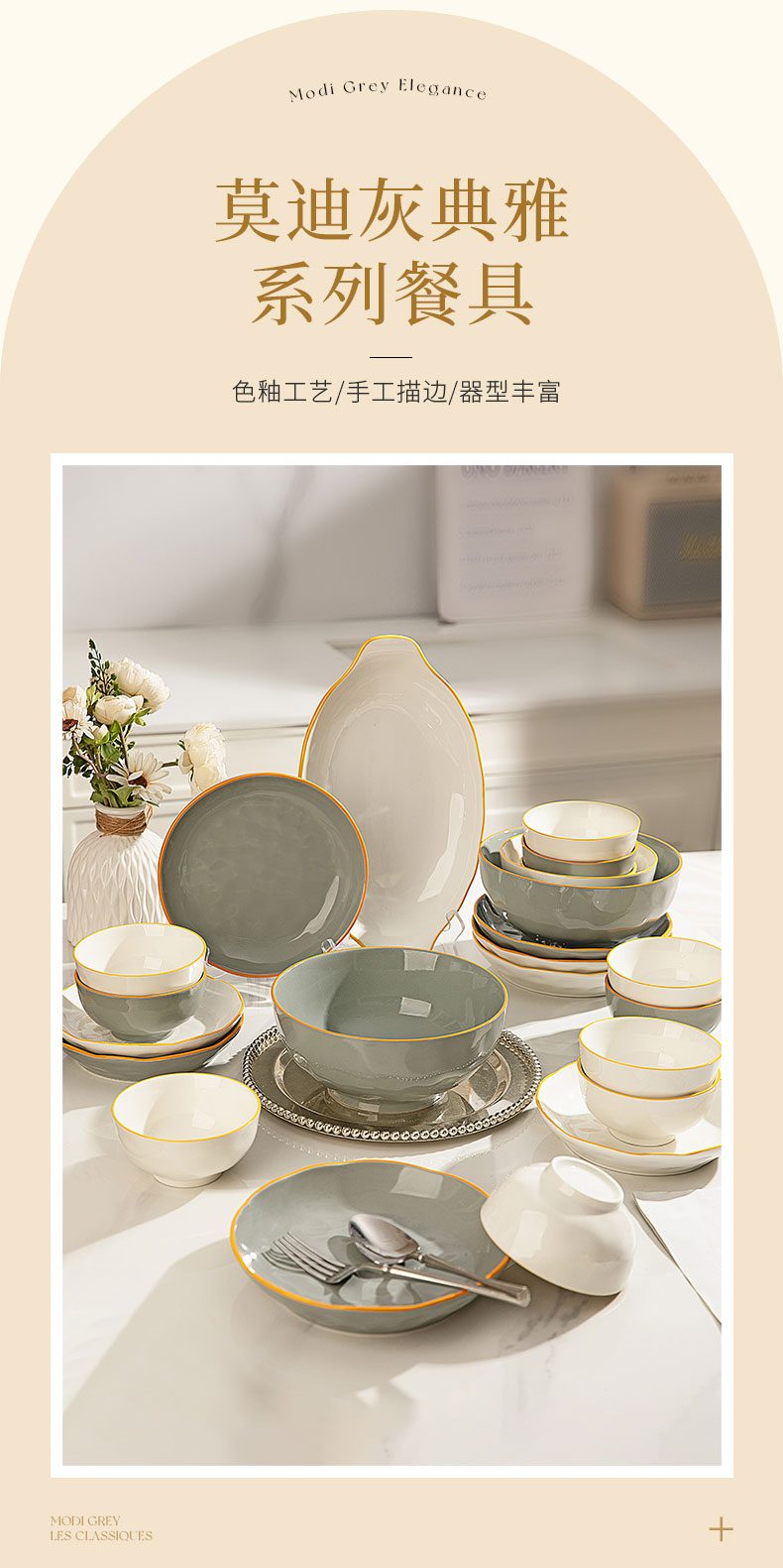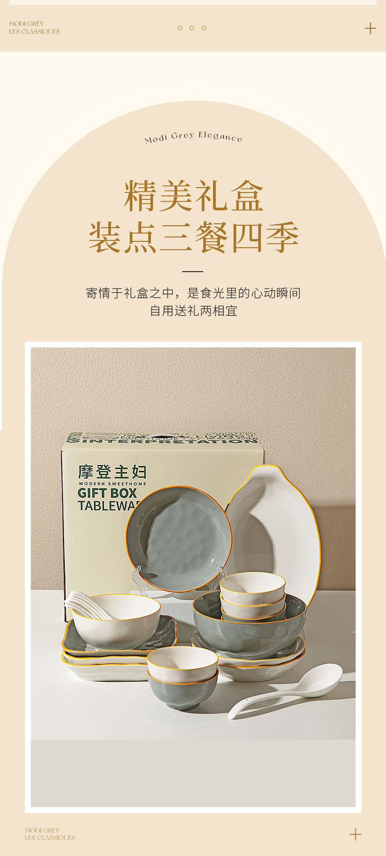 摩登主妇莫迪灰高级感碗碟套装家用2024新款碗具盘子乔迁新居餐具