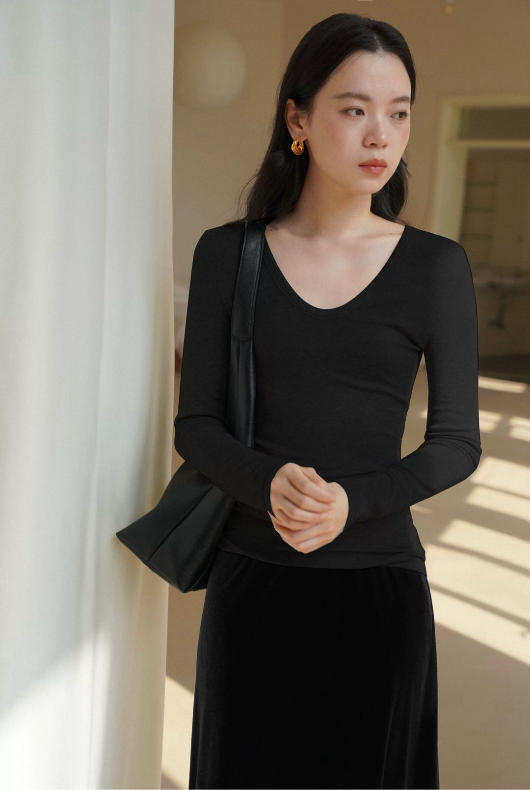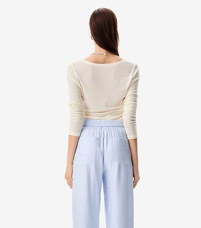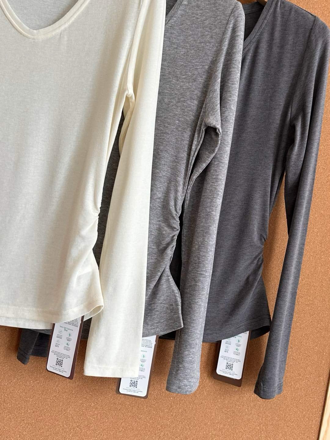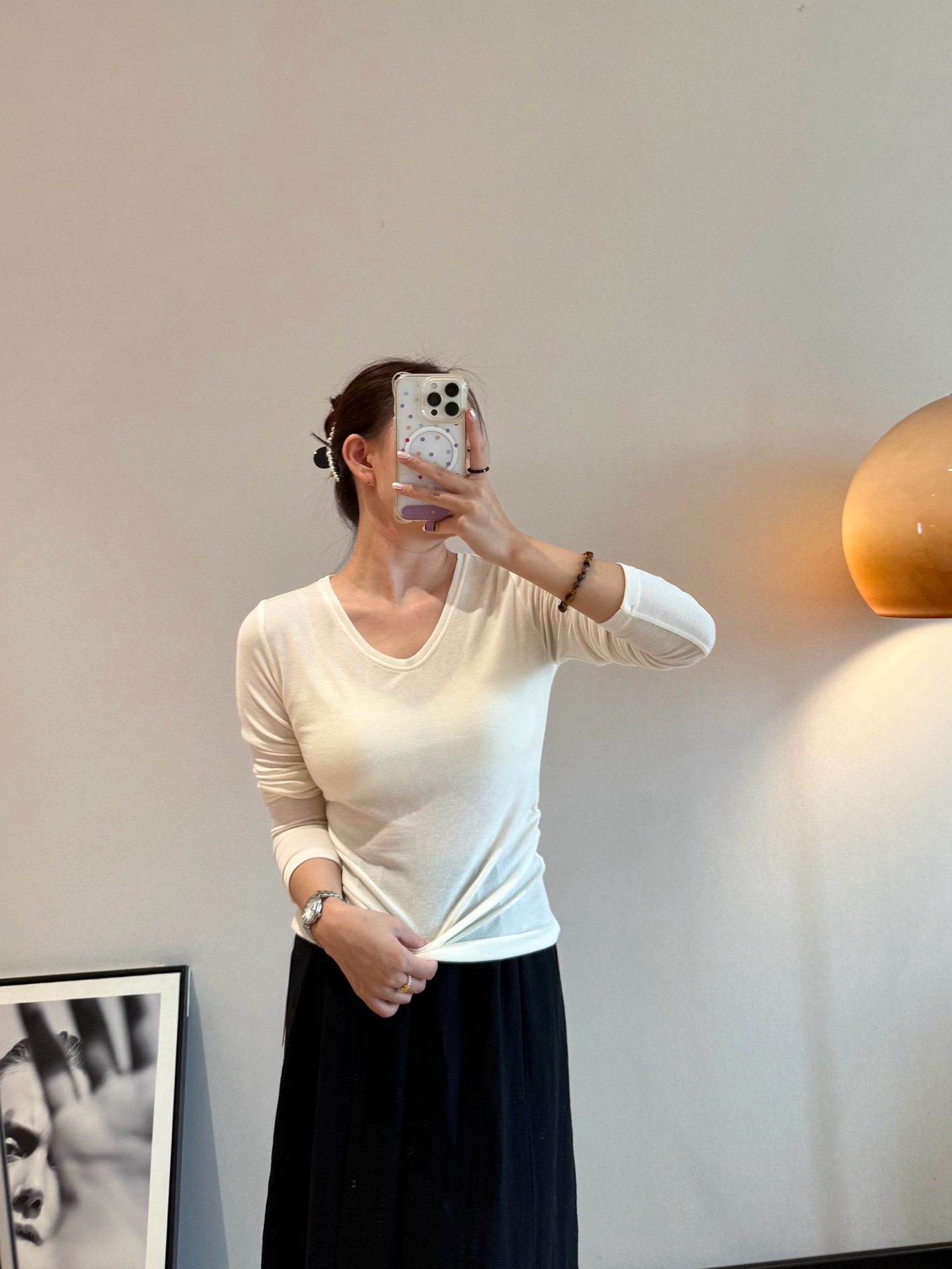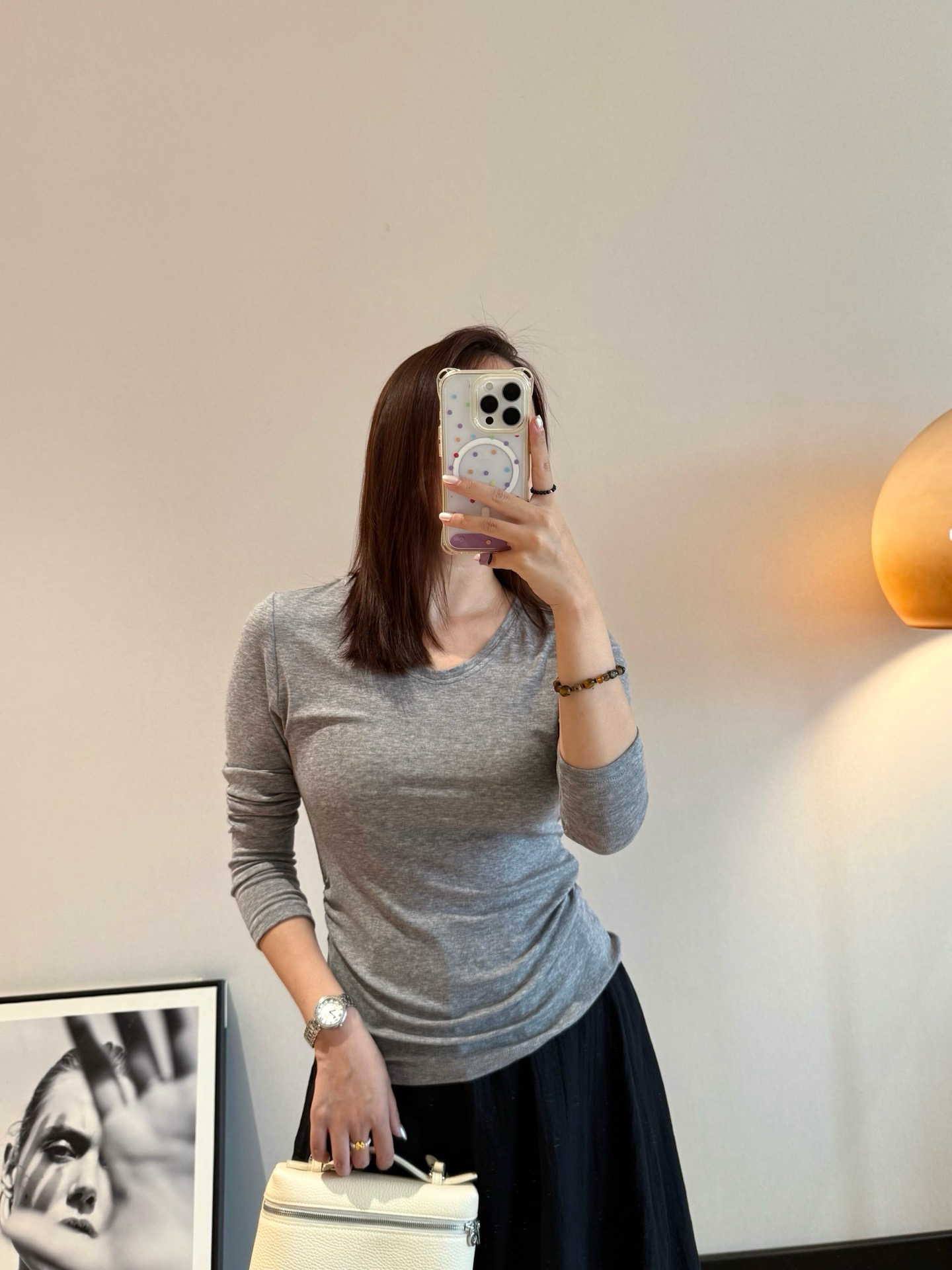 猫店售价862软币💰这件打底衫从面料到剪裁都写着高级二字,无论是单穿还是内搭都是提升整体穿搭的秘密武器~电视剧里的有钱主妇或者高级白领在家穿的就是这种高级又松弛的打底😛⚠️领口是设计亮点,也是防伪细节。图4是官方的图,可以放大看一下,领口一圈是虚开的,更显松弛~我们的工艺完全对版😎市面上的样子货没有可比性