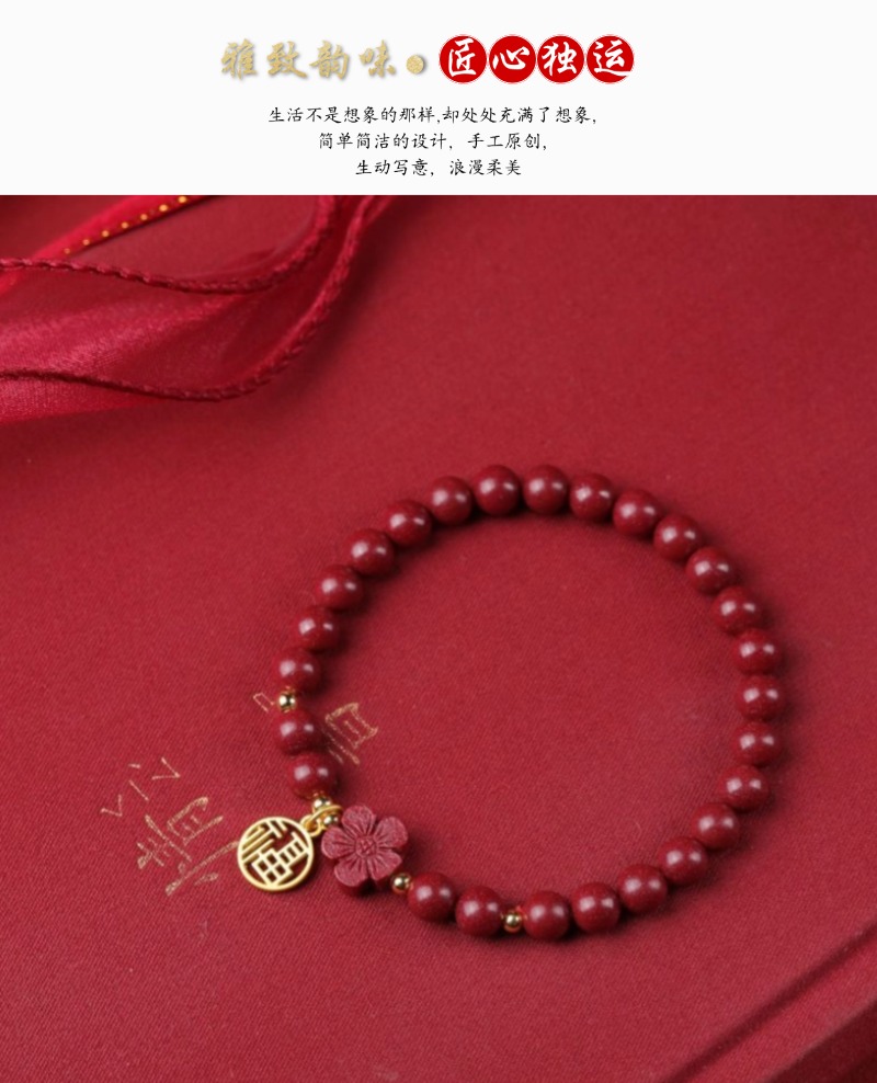 珩钻 国潮系列红花福运手串高质朱砂手链6mm