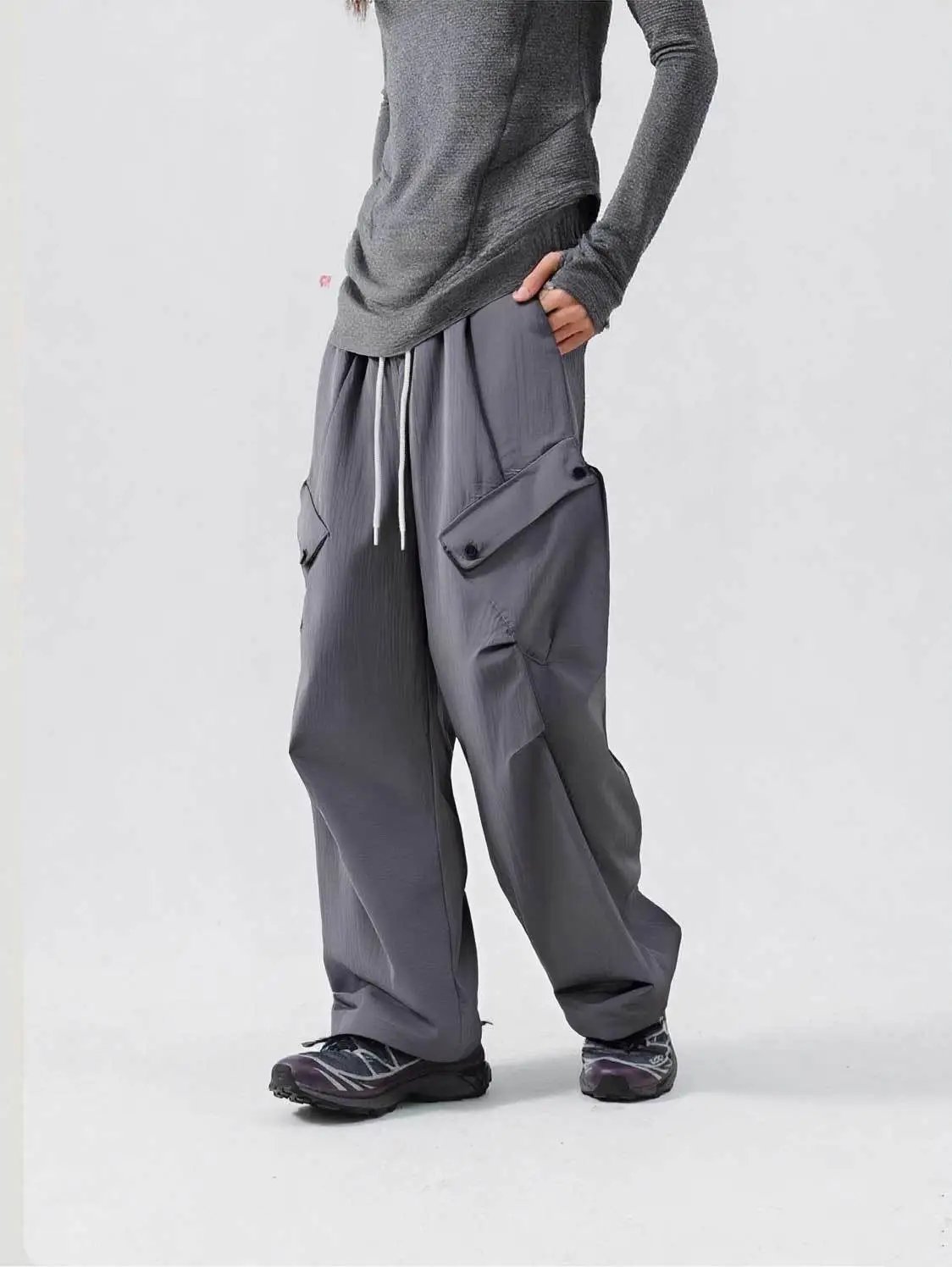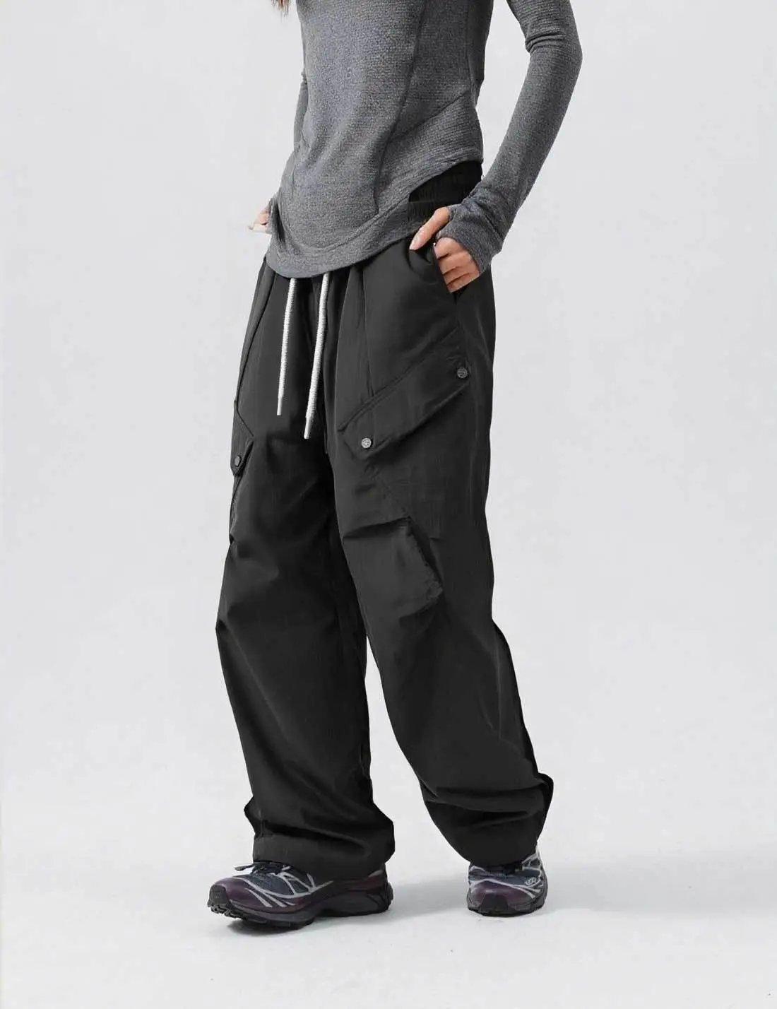 一拉一抽变换长短,还能在阔腿or束脚之间随意切换 ,真的不要太实用,太百搭!