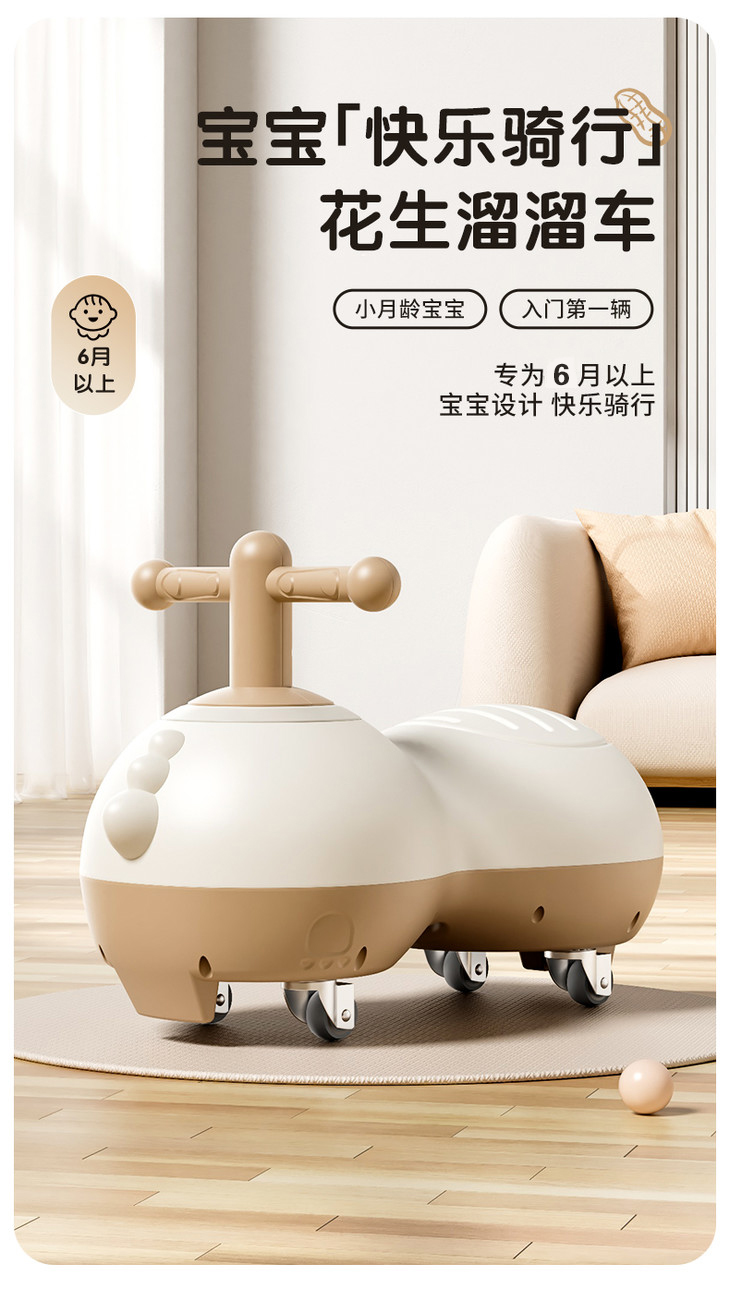 花生扭扭车儿童6个月-3岁婴儿男女溜溜车防侧翻滑行车宝宝一周岁礼物