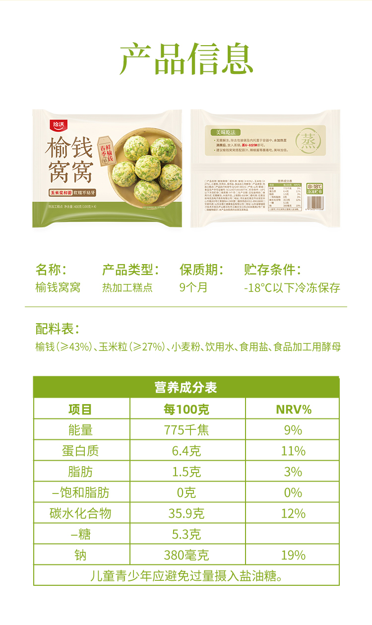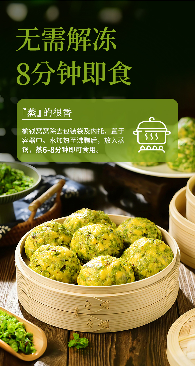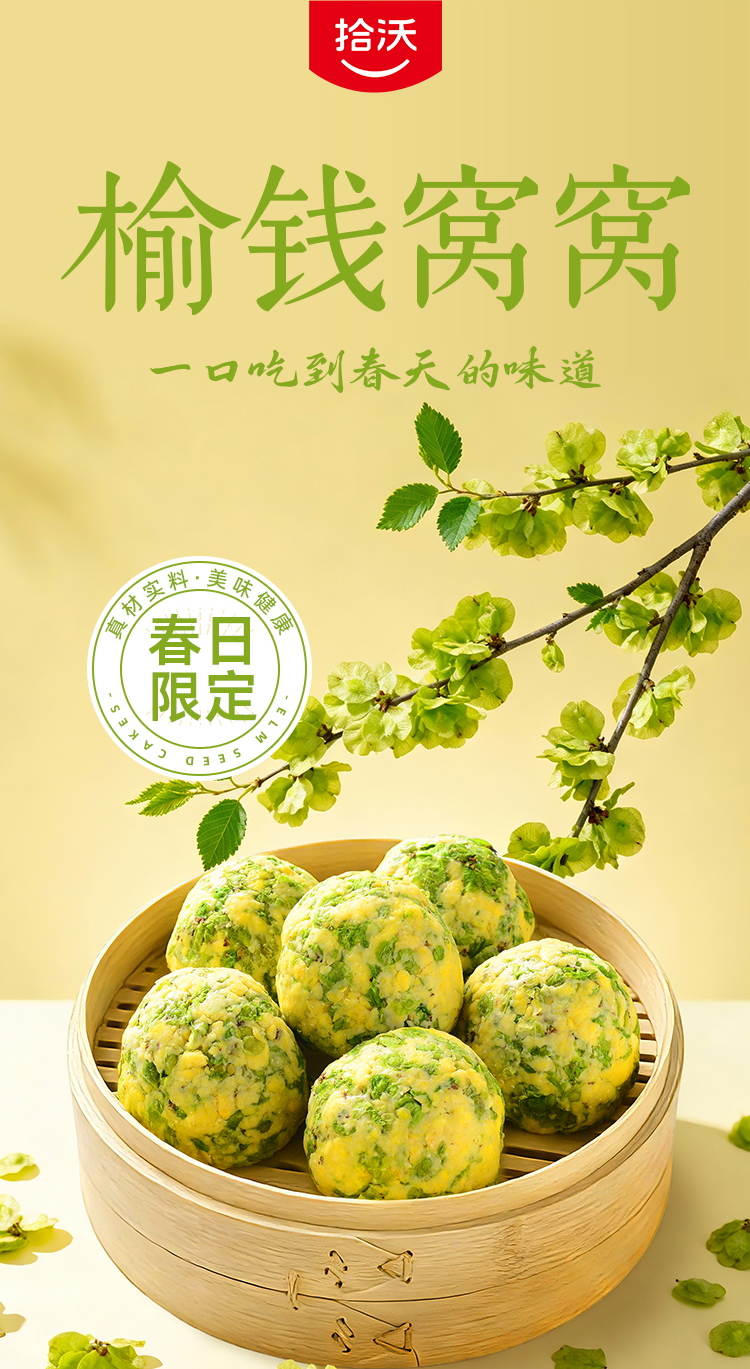 【春日限定尝鲜】拾沃榆钱窝窝 玉米榆钱窝头菜团子粗粮细作速食早餐杂粮包 3袋/12个