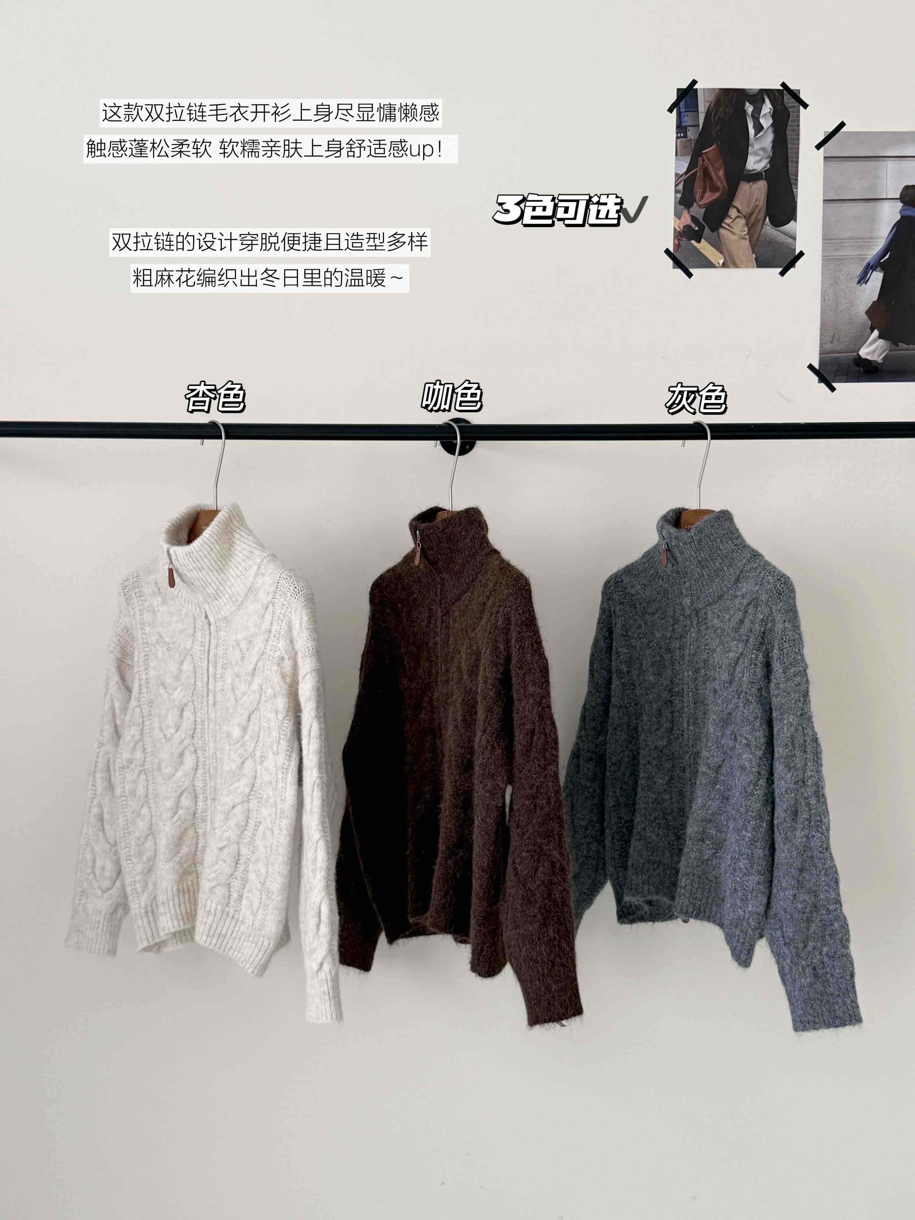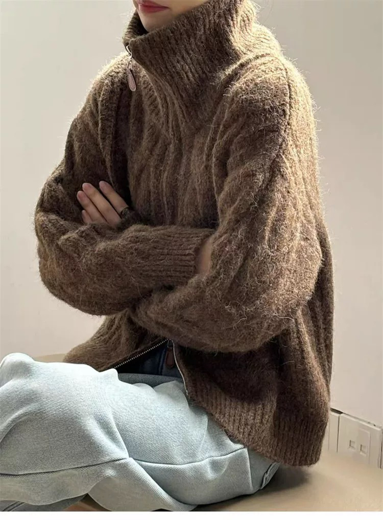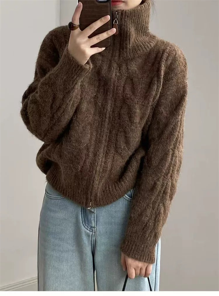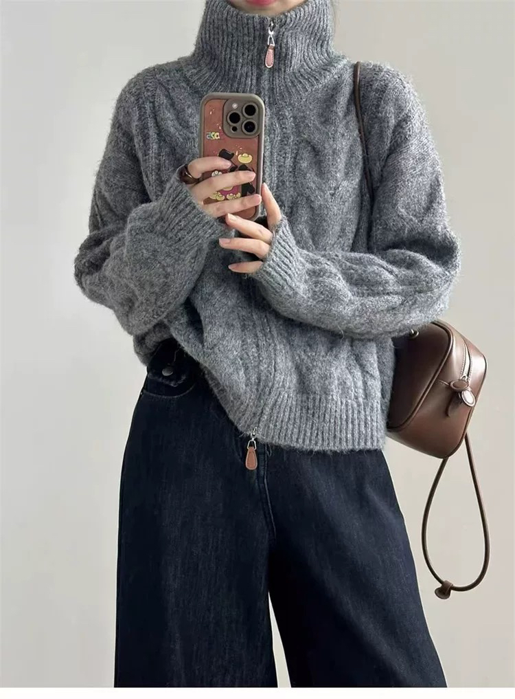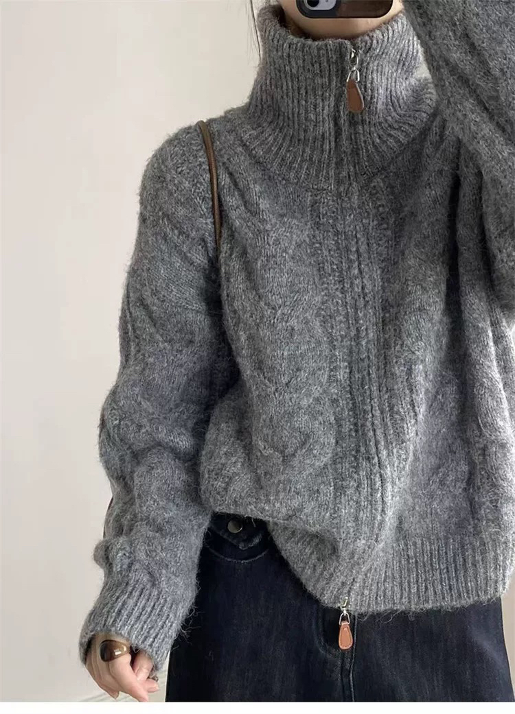 【双头拉链麻花毛衣外套】含羊毛+羊驼绒 氛围感拉满 经典款式 时尚不挑人