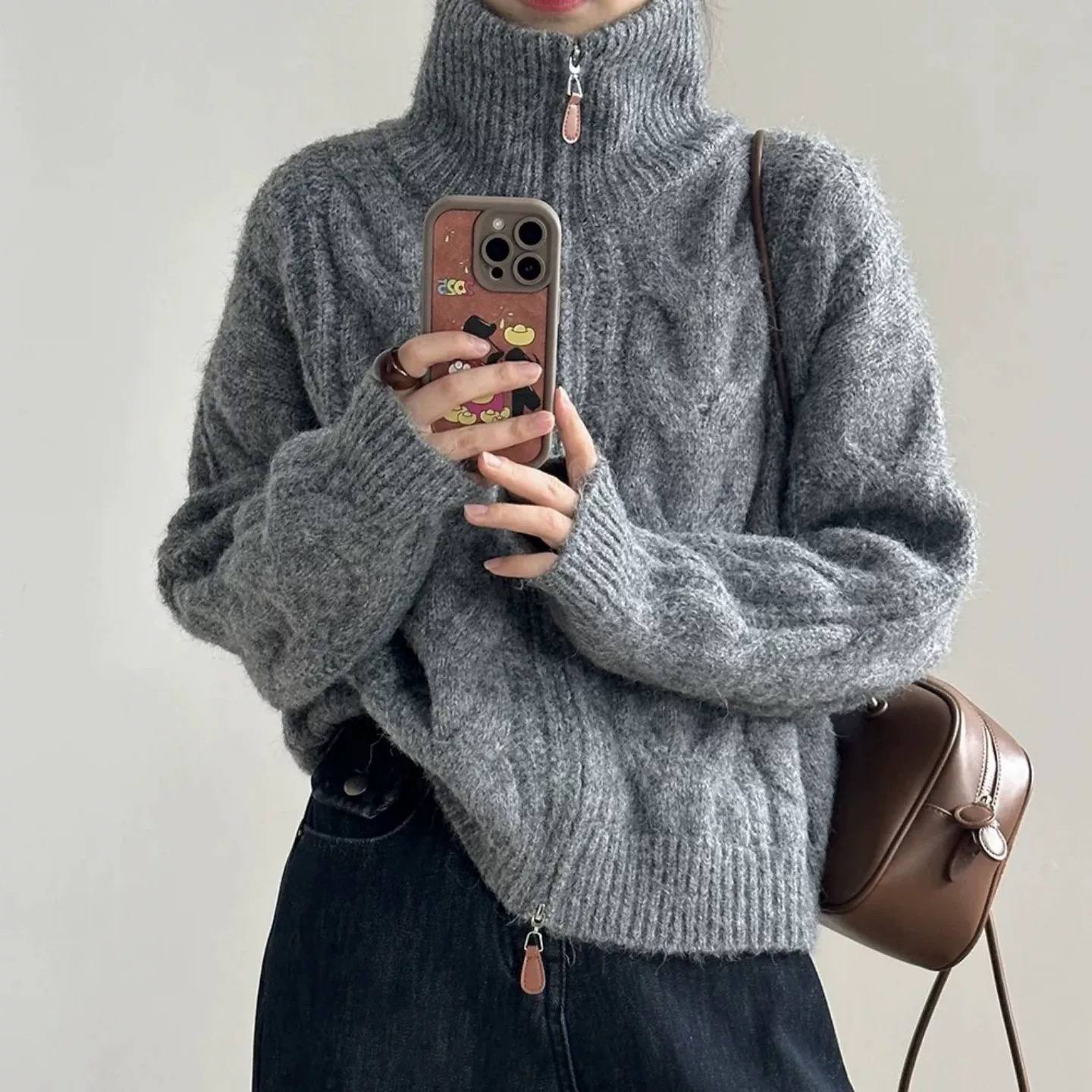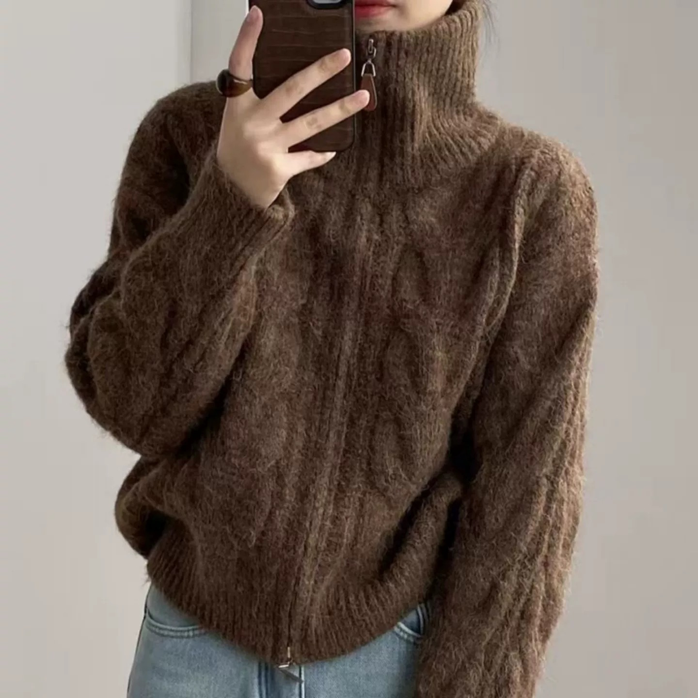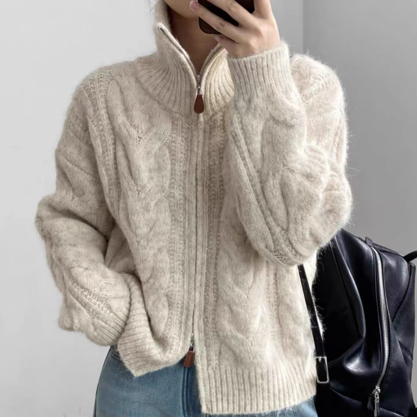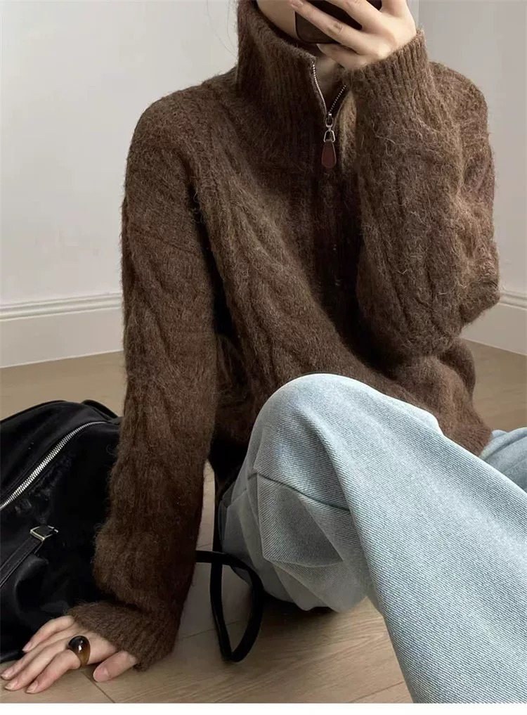 【双头拉链麻花毛衣外套】含羊毛+羊驼绒 氛围感拉满 经典款式 时尚不挑人