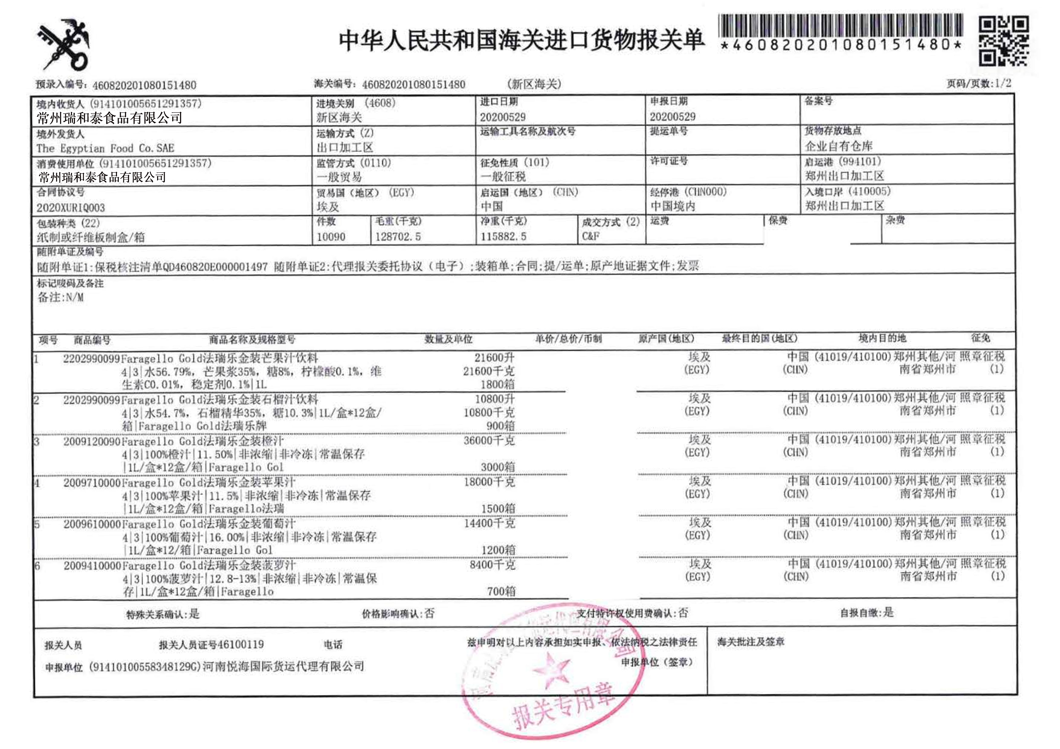 【12.23视频号】1LFaragelloGold法瑞乐金装橙汁/芒果汁/葡萄汁