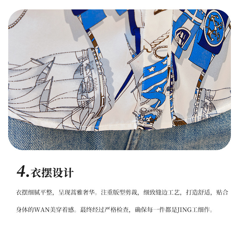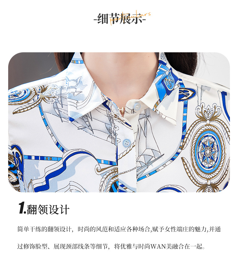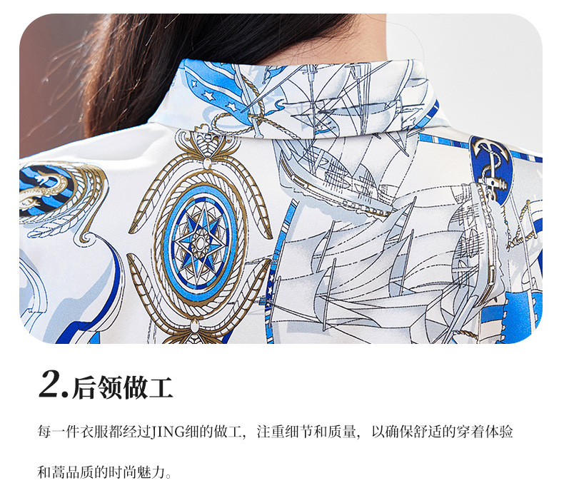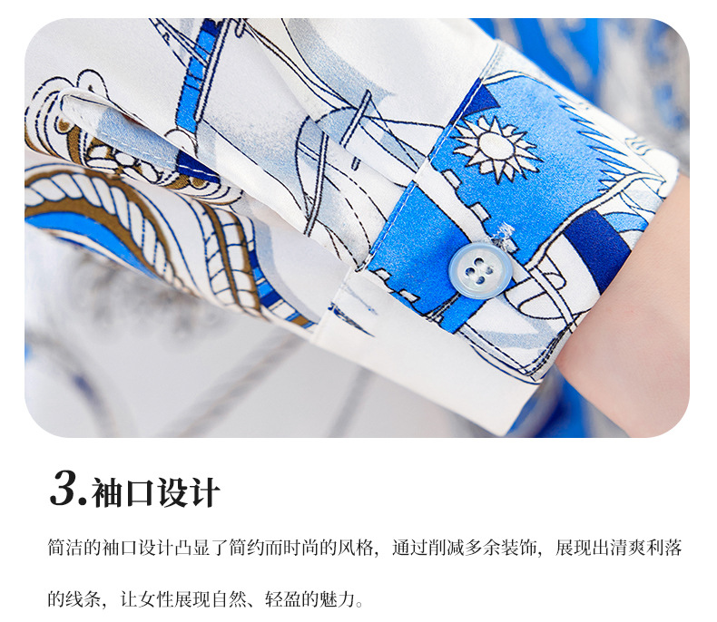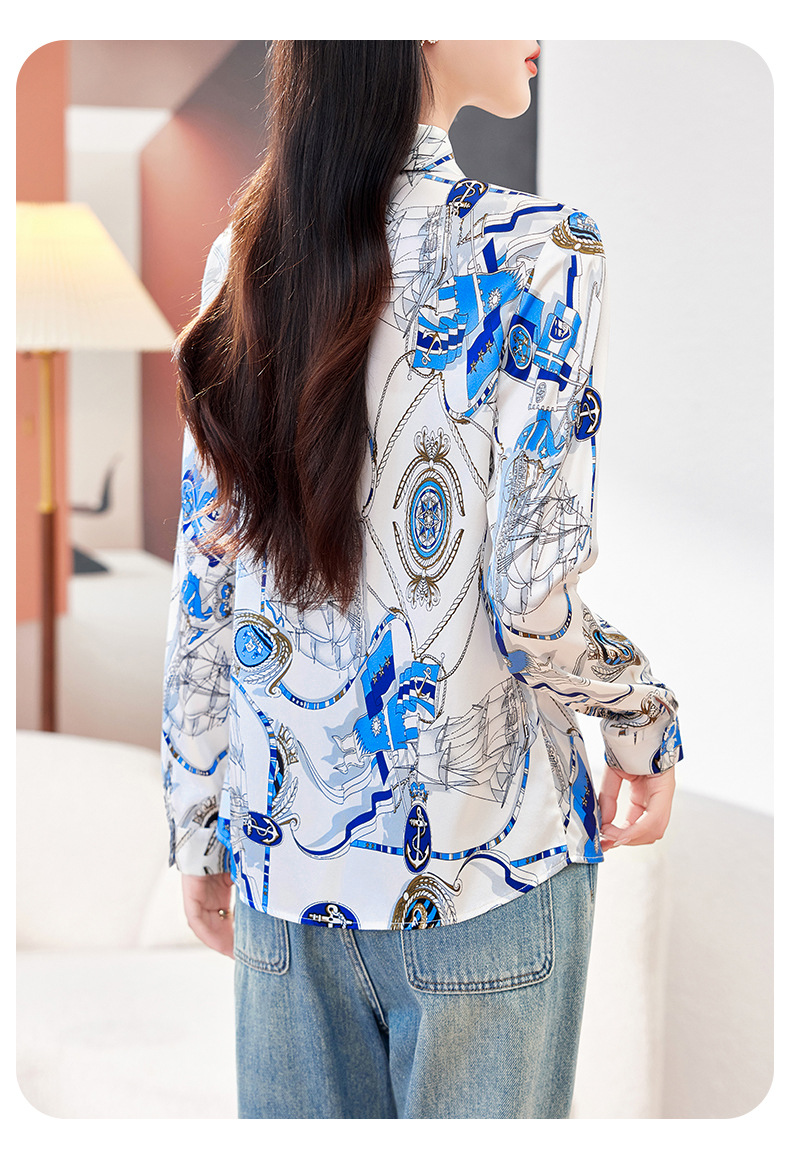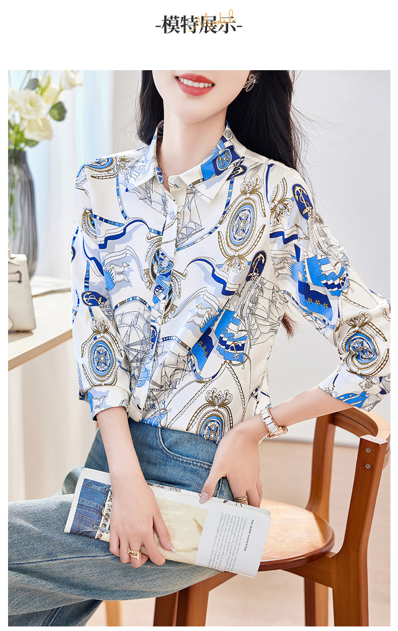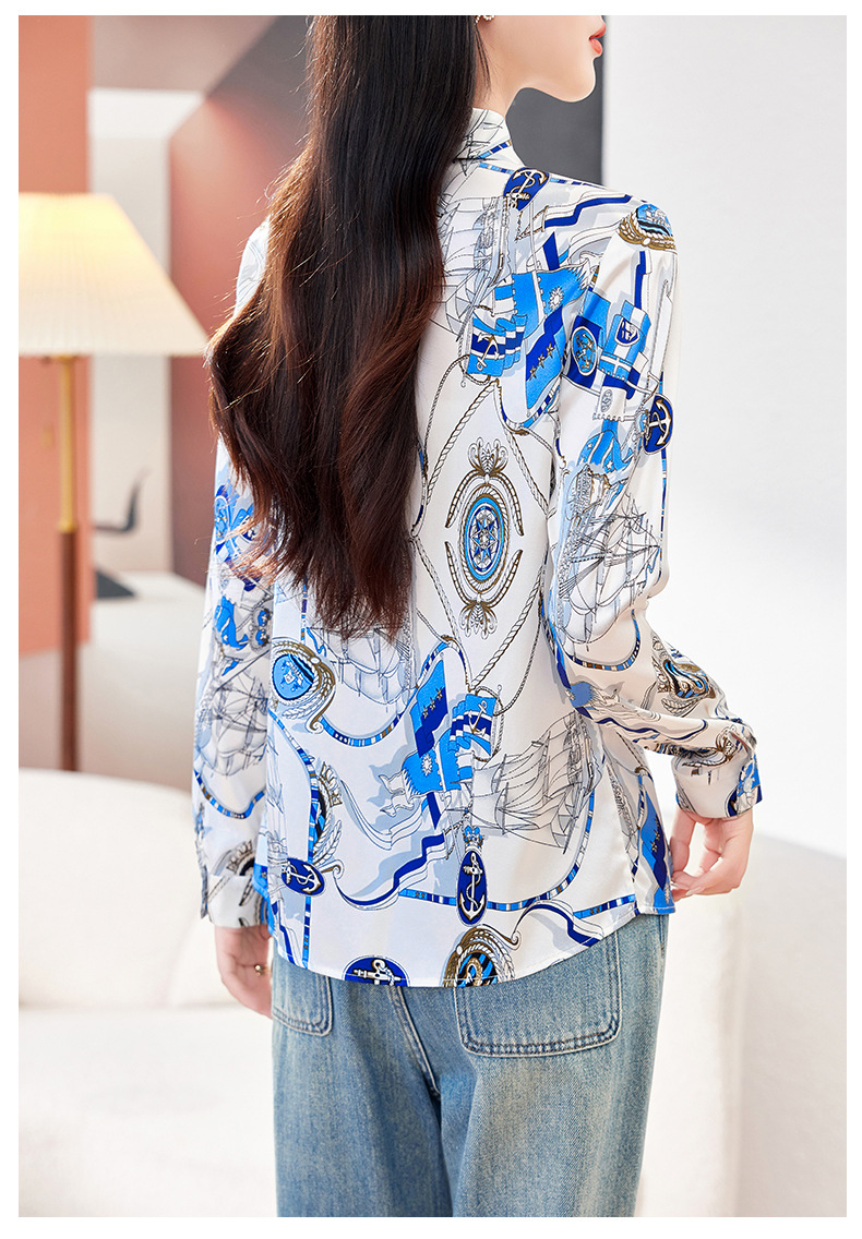 KQ2025早秋桑蚕丝趣味印花真丝衬衫polo领长袖花色通勤衬衣女士上衣