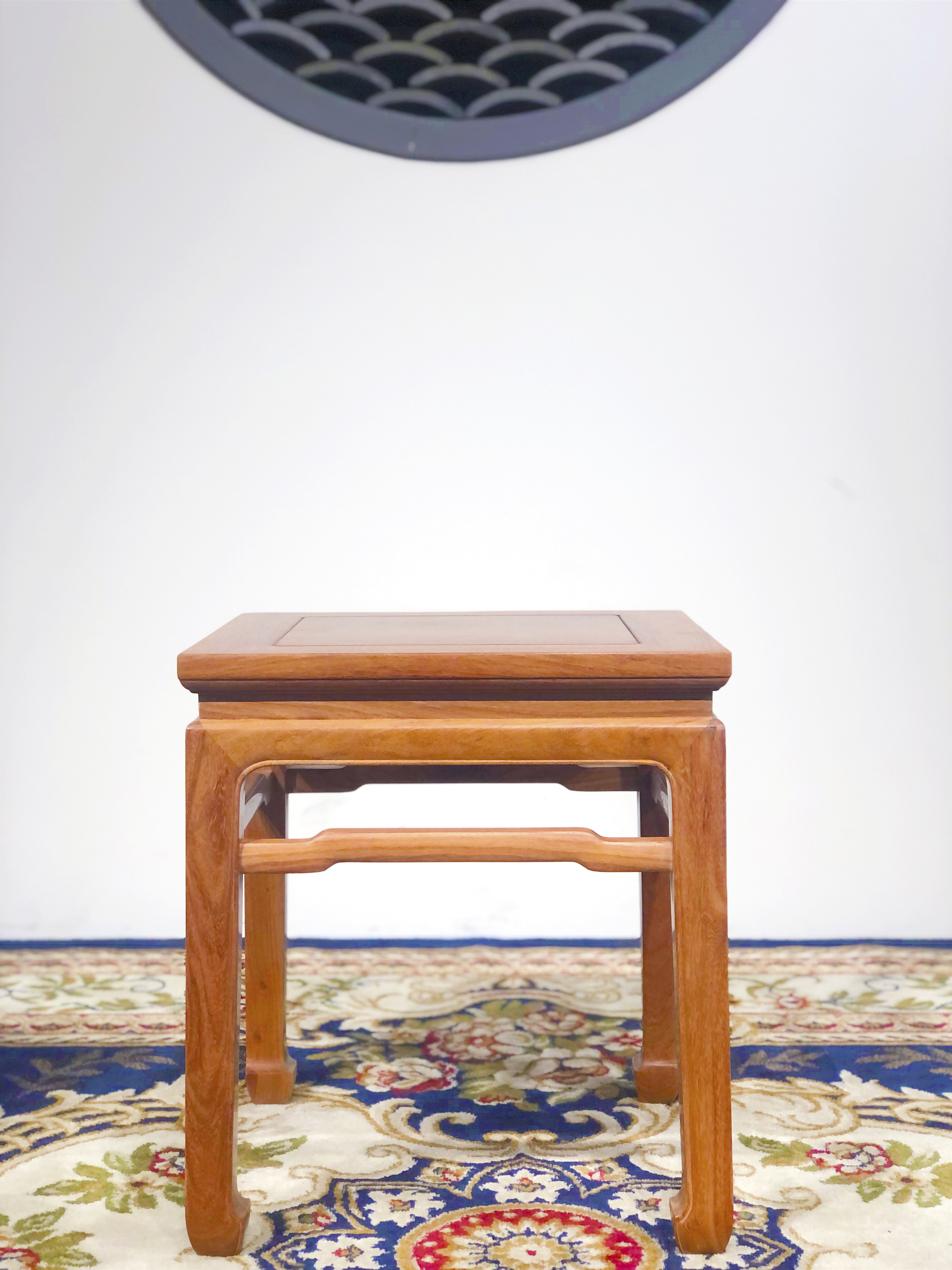 此为明式方凳之标准器,整器不做任何雕饰,做工考究,线条分明,舒展大方,颇具古韵,彰示出明式家具的神韵。
