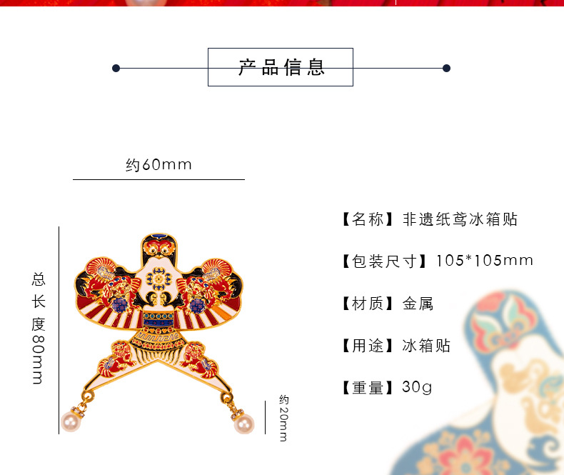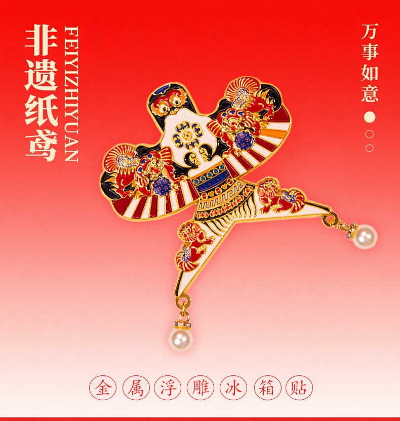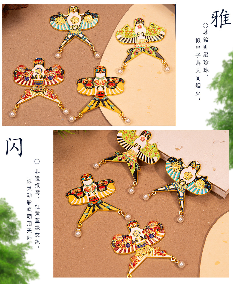【潍坊纸鸢】复古金属冰箱贴非遗国潮文创纪念创意工艺品礼品