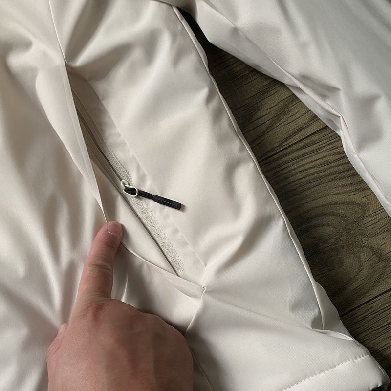 磁吸压胶斜门襟设计 ,胸口拉链口袋连接门襟,