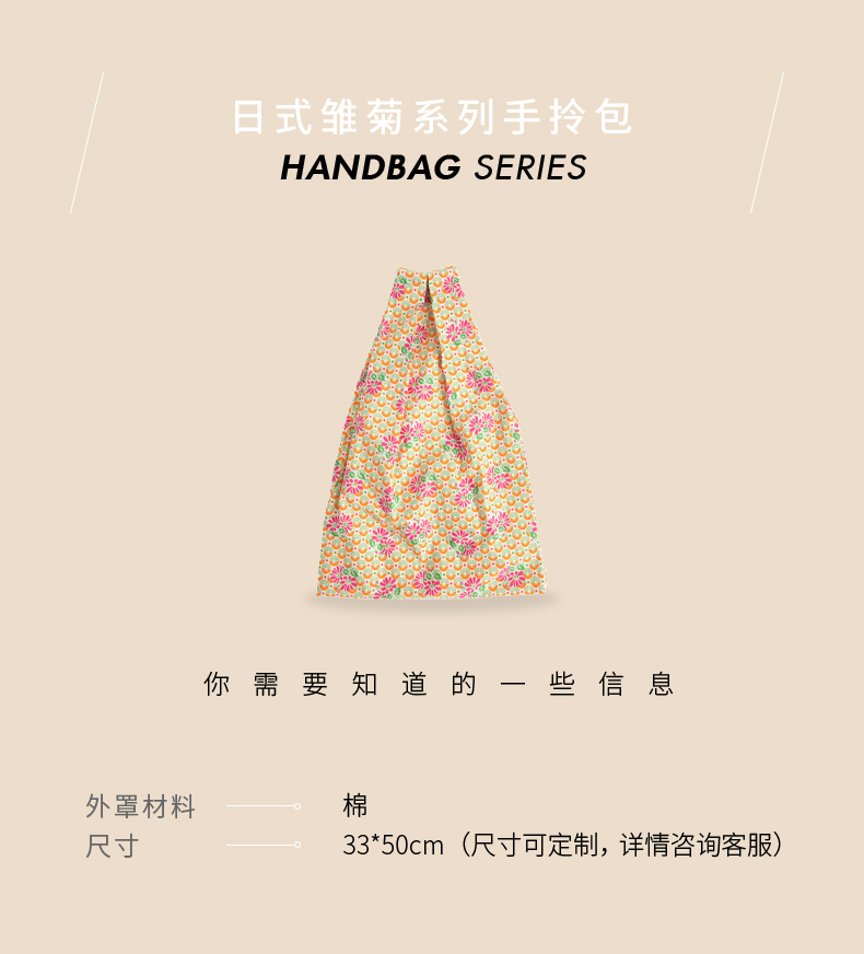 日式雏菊系列手拎包杂物女大容量纯棉通勤上班手提袋购物袋