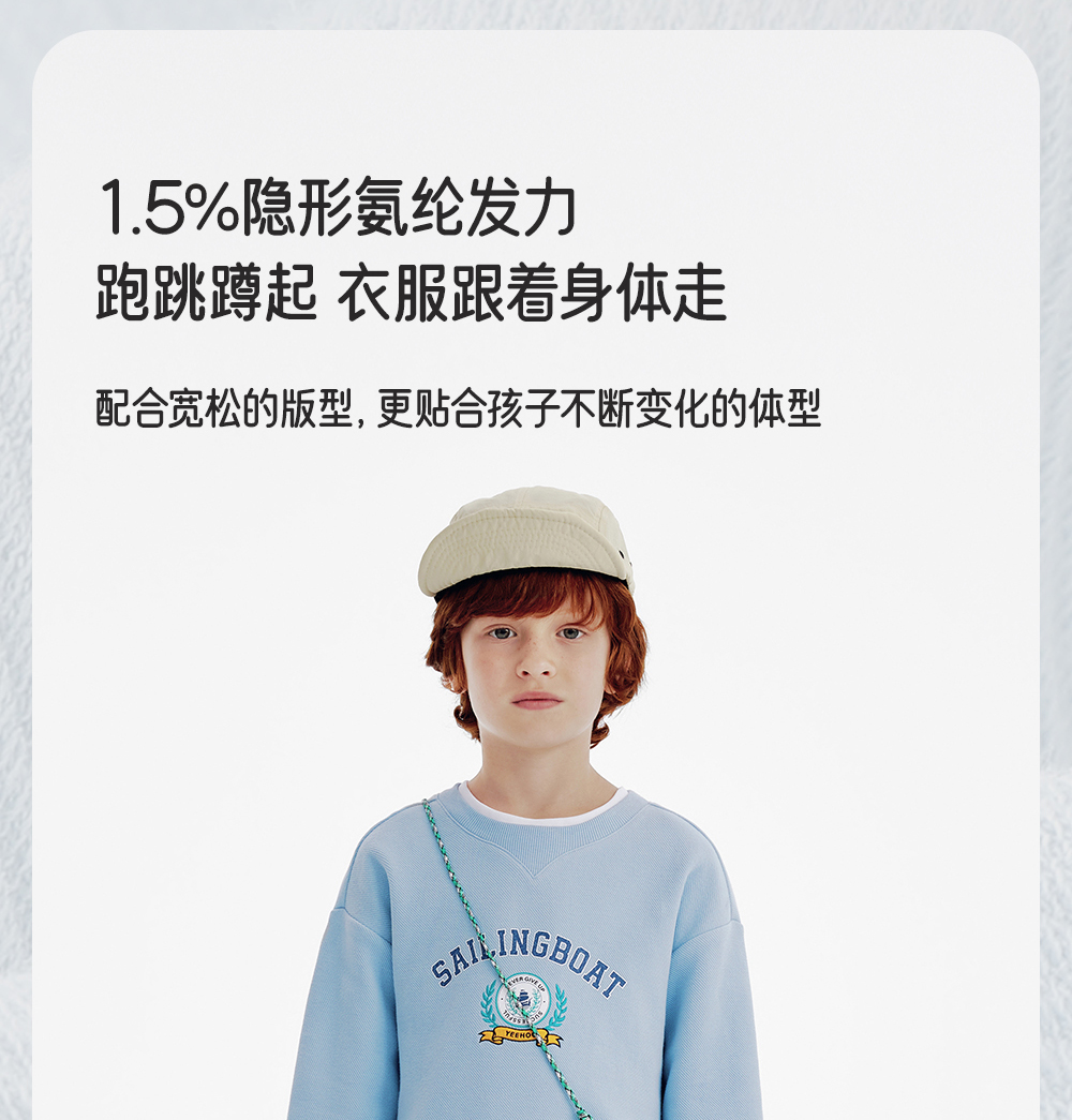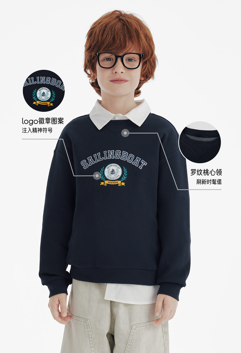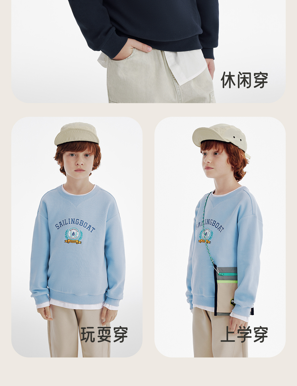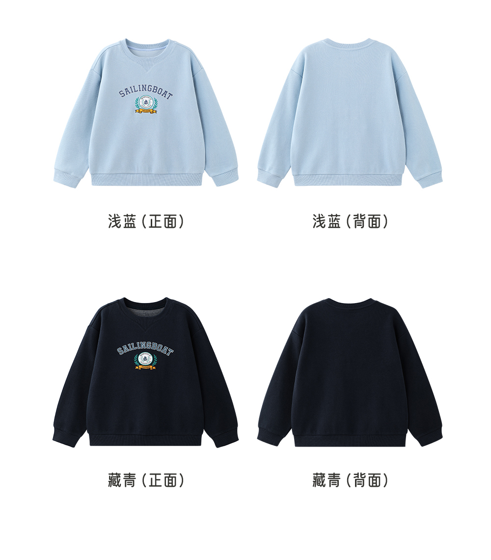 英氏儿童卫衣春秋季长袖男童圆领卫衣套头休闲百搭纯色男童上衣