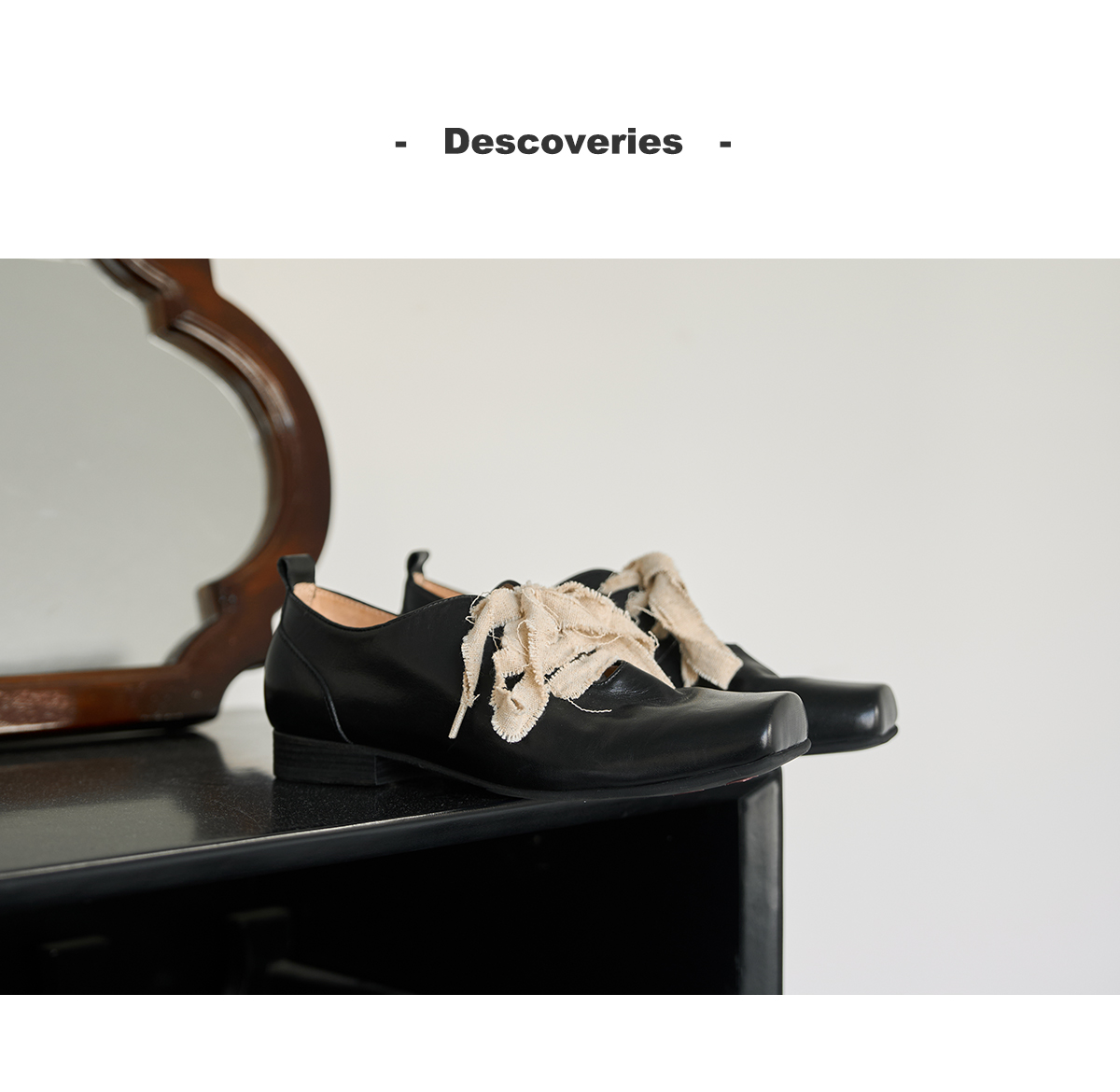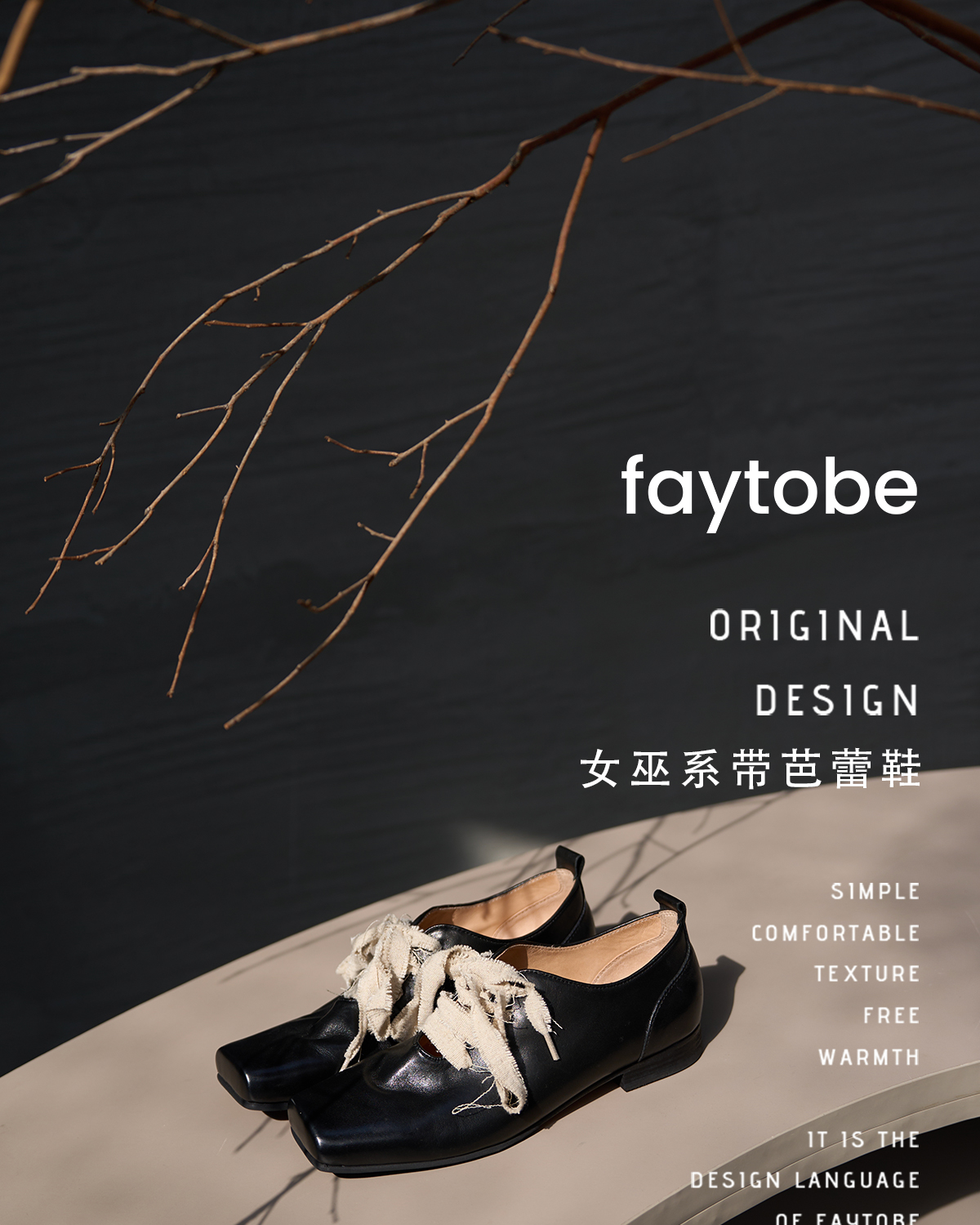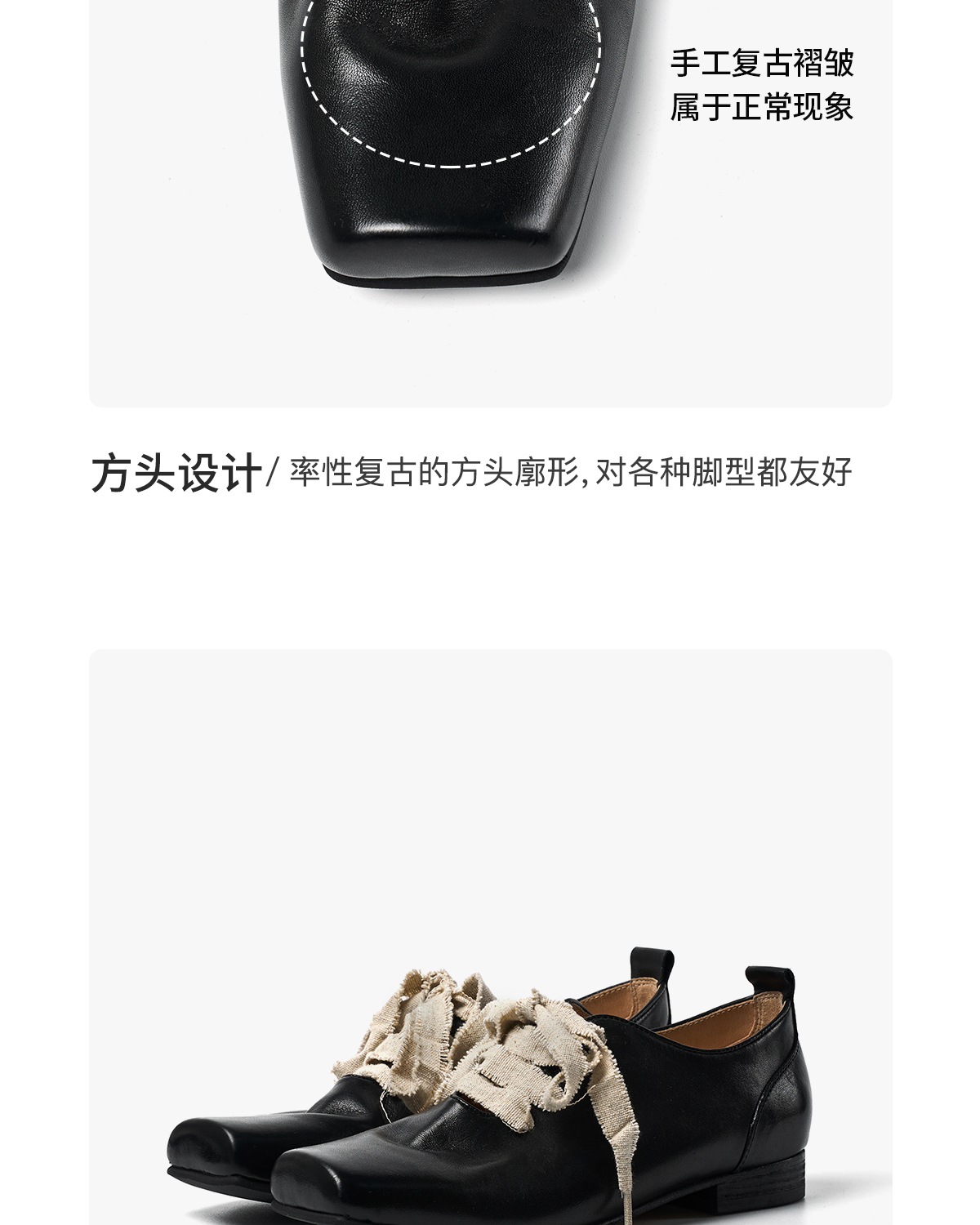 faytobe 复古系带芭蕾鞋手工方头牛皮侘寂风深口丝带小皮