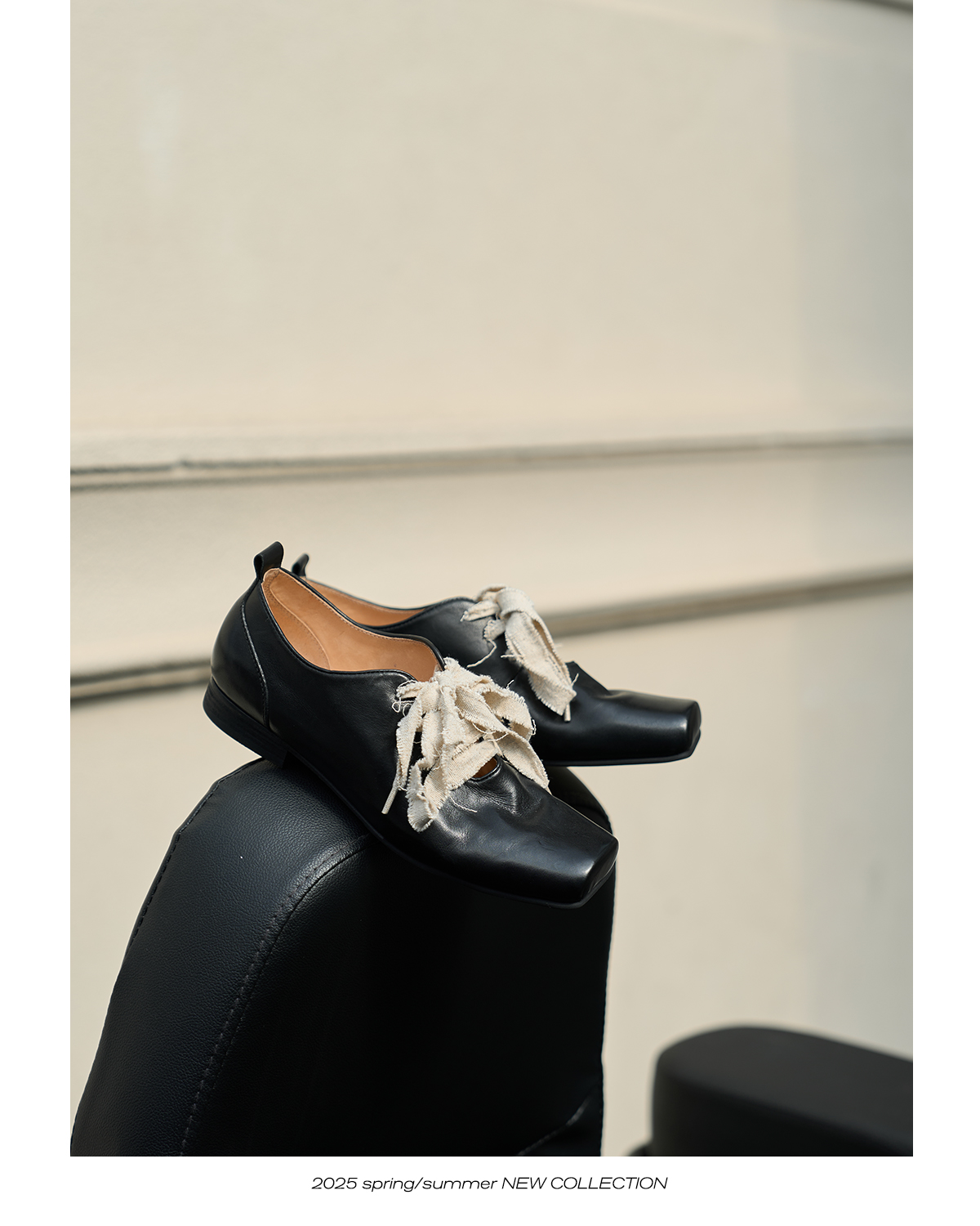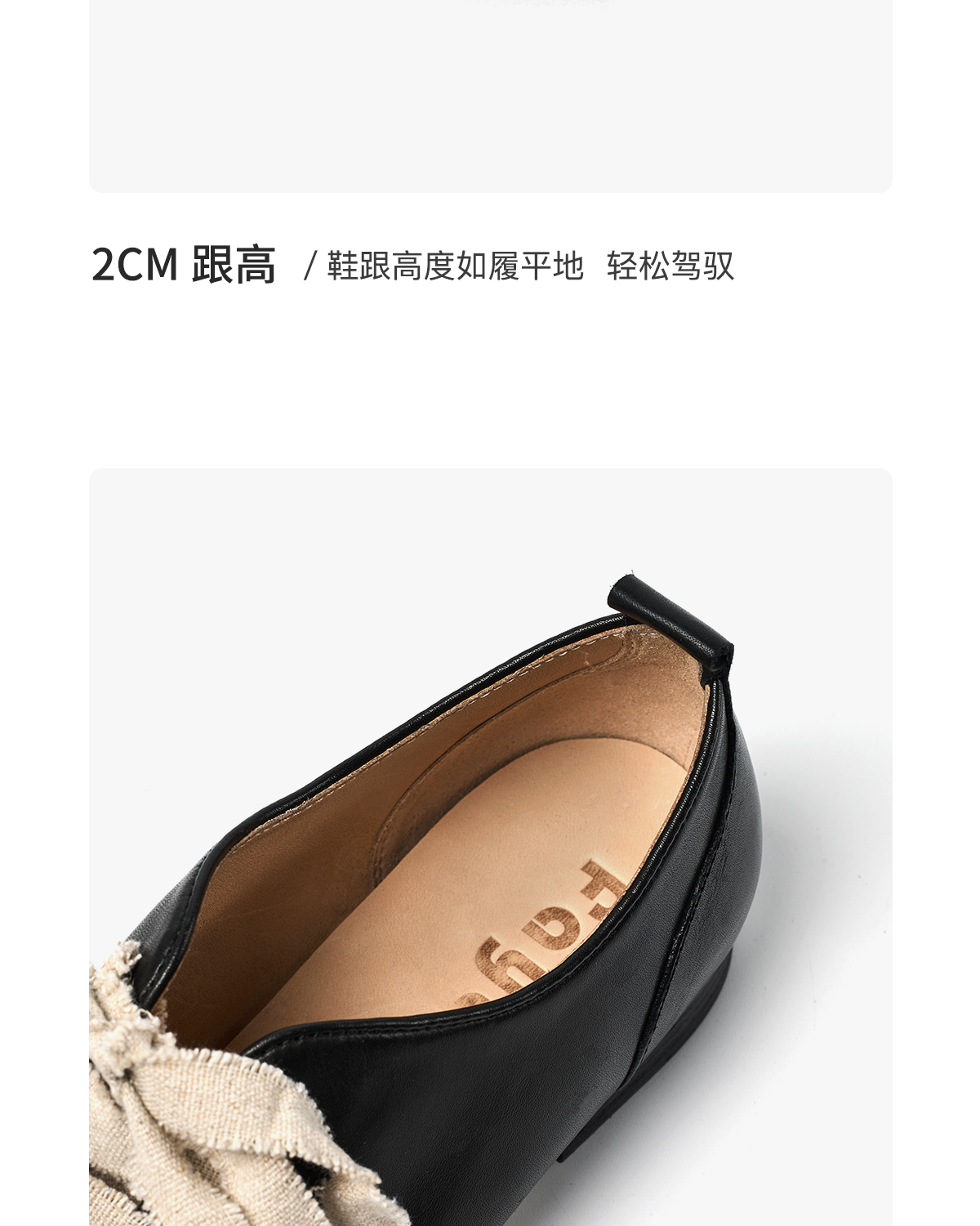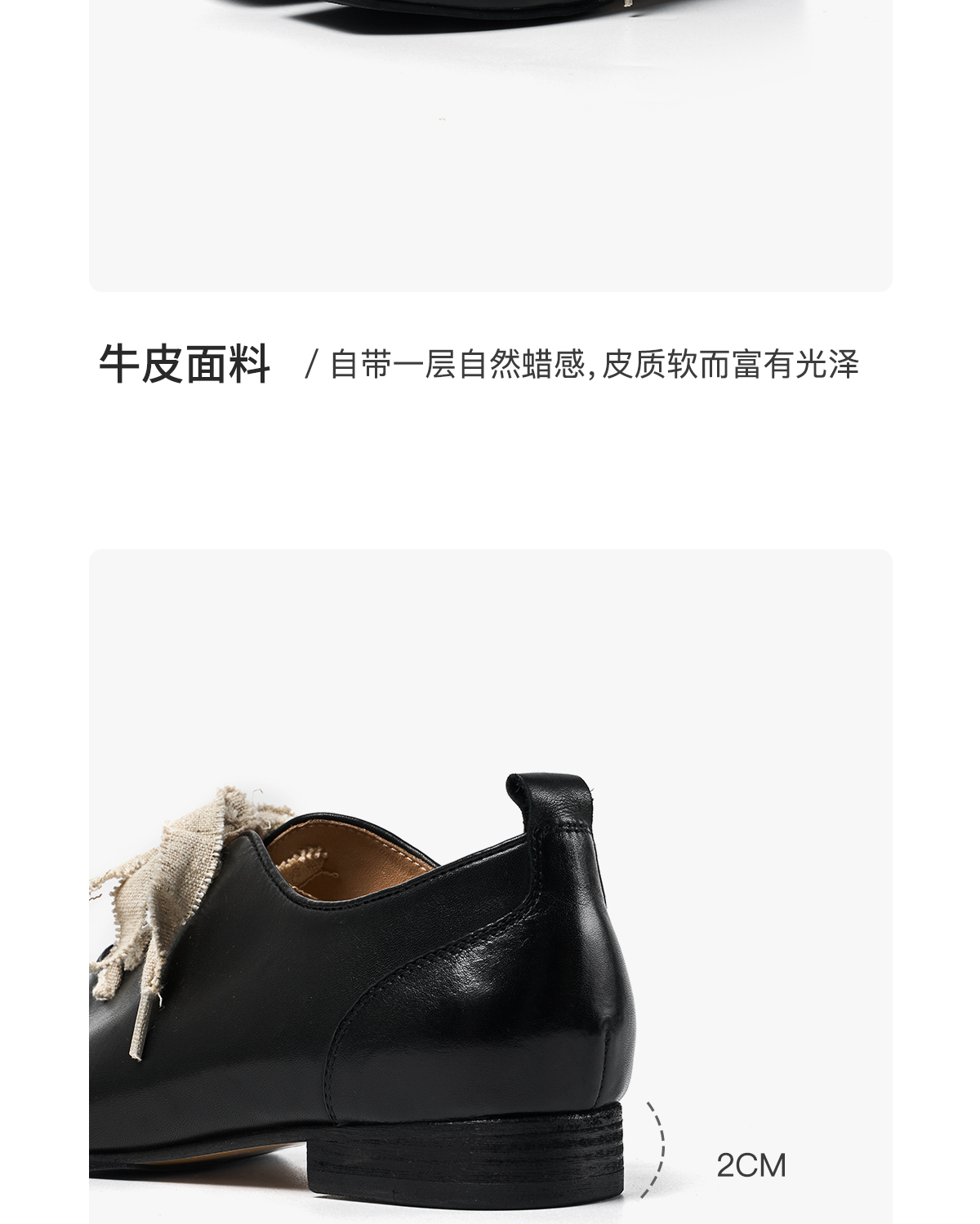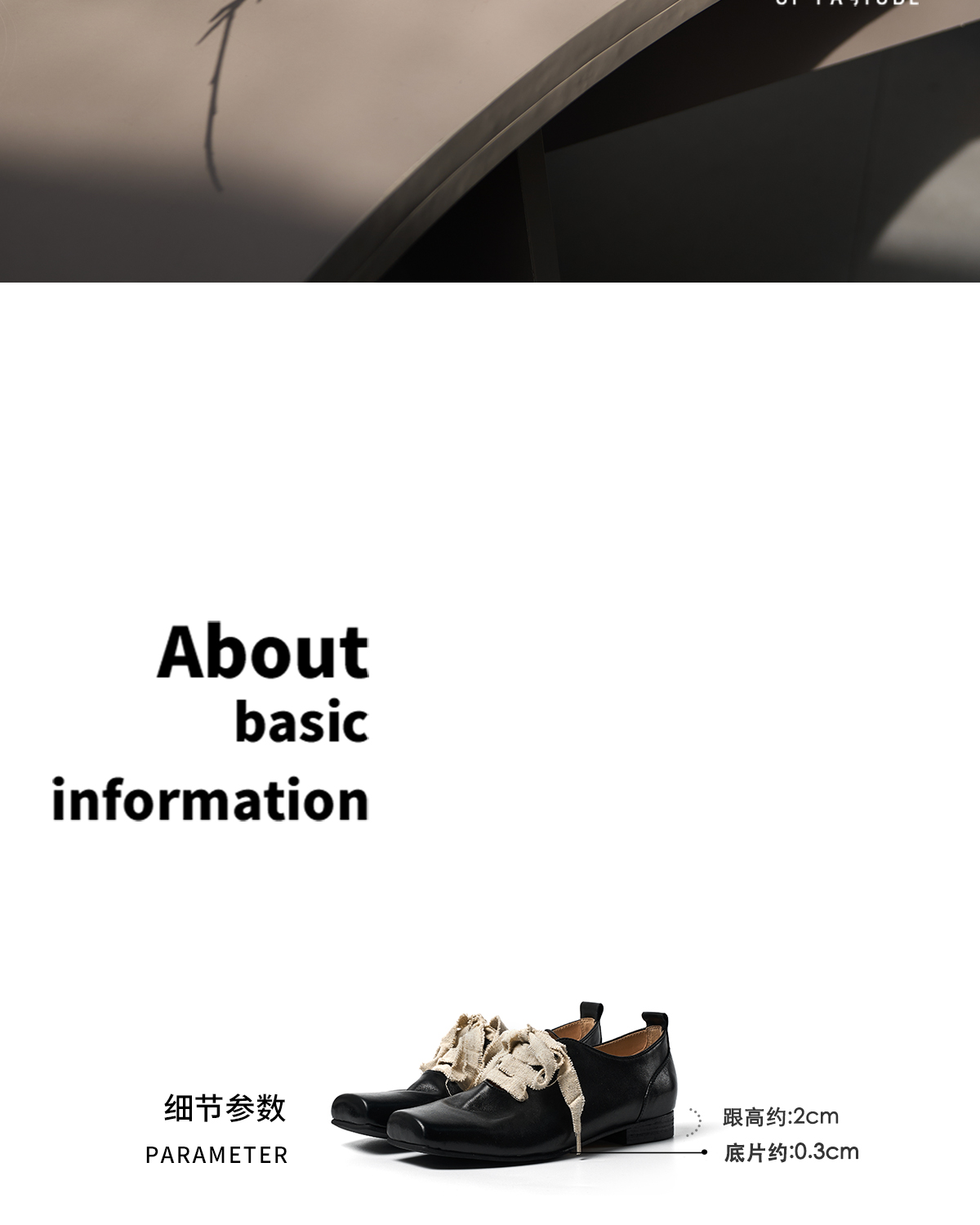 faytobe 复古系带芭蕾鞋手工方头牛皮侘寂风深口丝带小皮