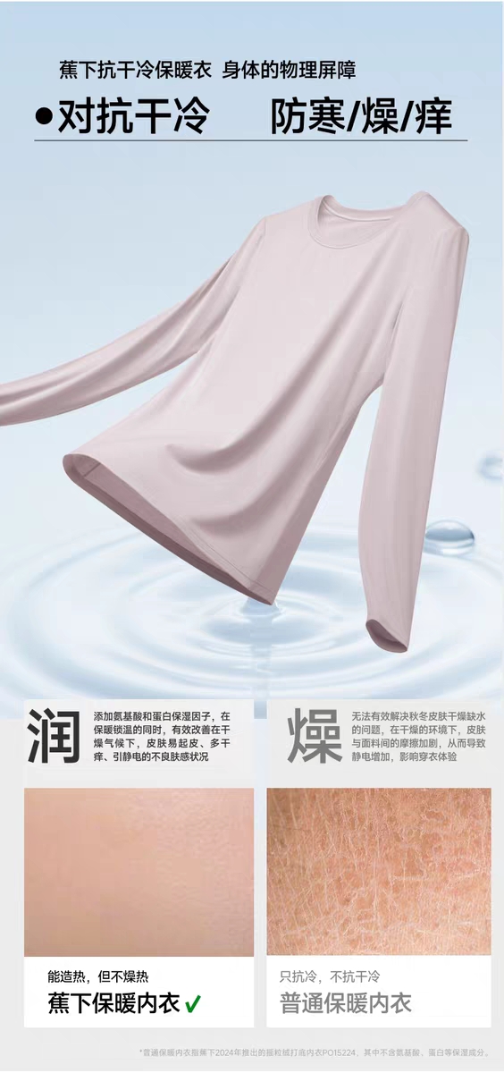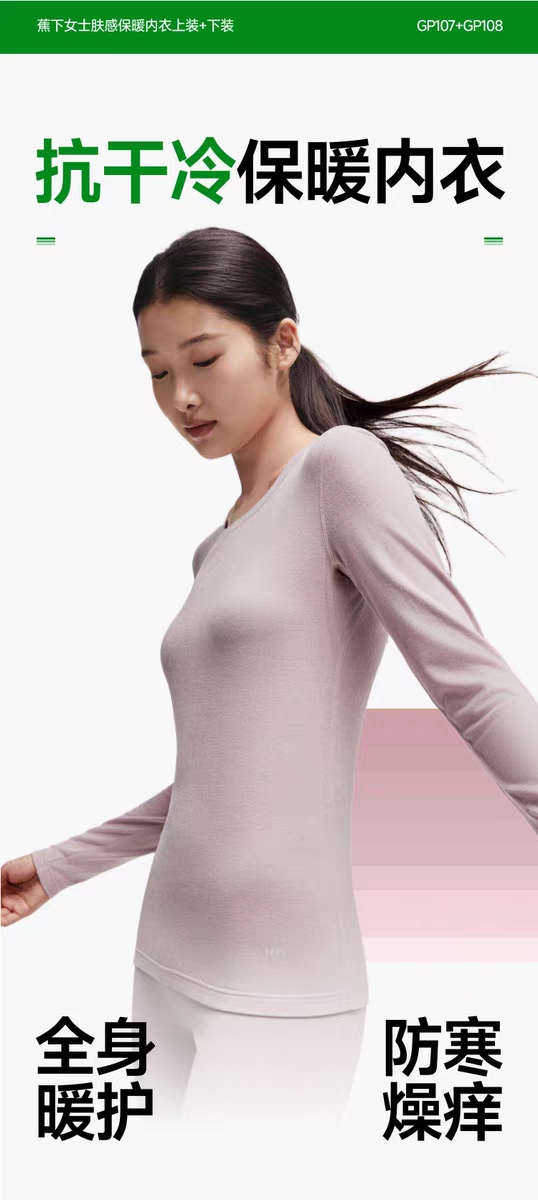 蕉下女士肌底保暖内衣GP107秋衣圆领打底上衣户外薄款贴身内搭