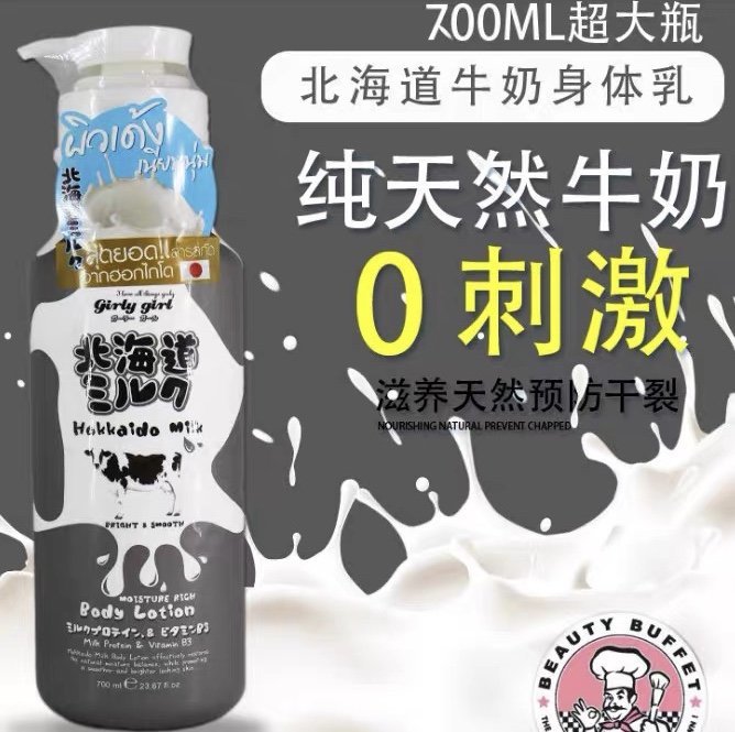 北海道牛奶身体乳700ml👍泰国人气护肤品牌,采自日本北海道牛奶配方并加入丰富纯牛奶精华🥛,锁紧保护肌肤的水油平衡,打造水嫩净亮的肌肤🤩。维他命C同E有于减少皱纹,使皮肤光滑自然。泰国长年都是夏天☀,所以泰国的润肤乳的都是比较清爽的哦,易吸收不油腻。适合肌肤干燥、追求牛奶肌的人群。