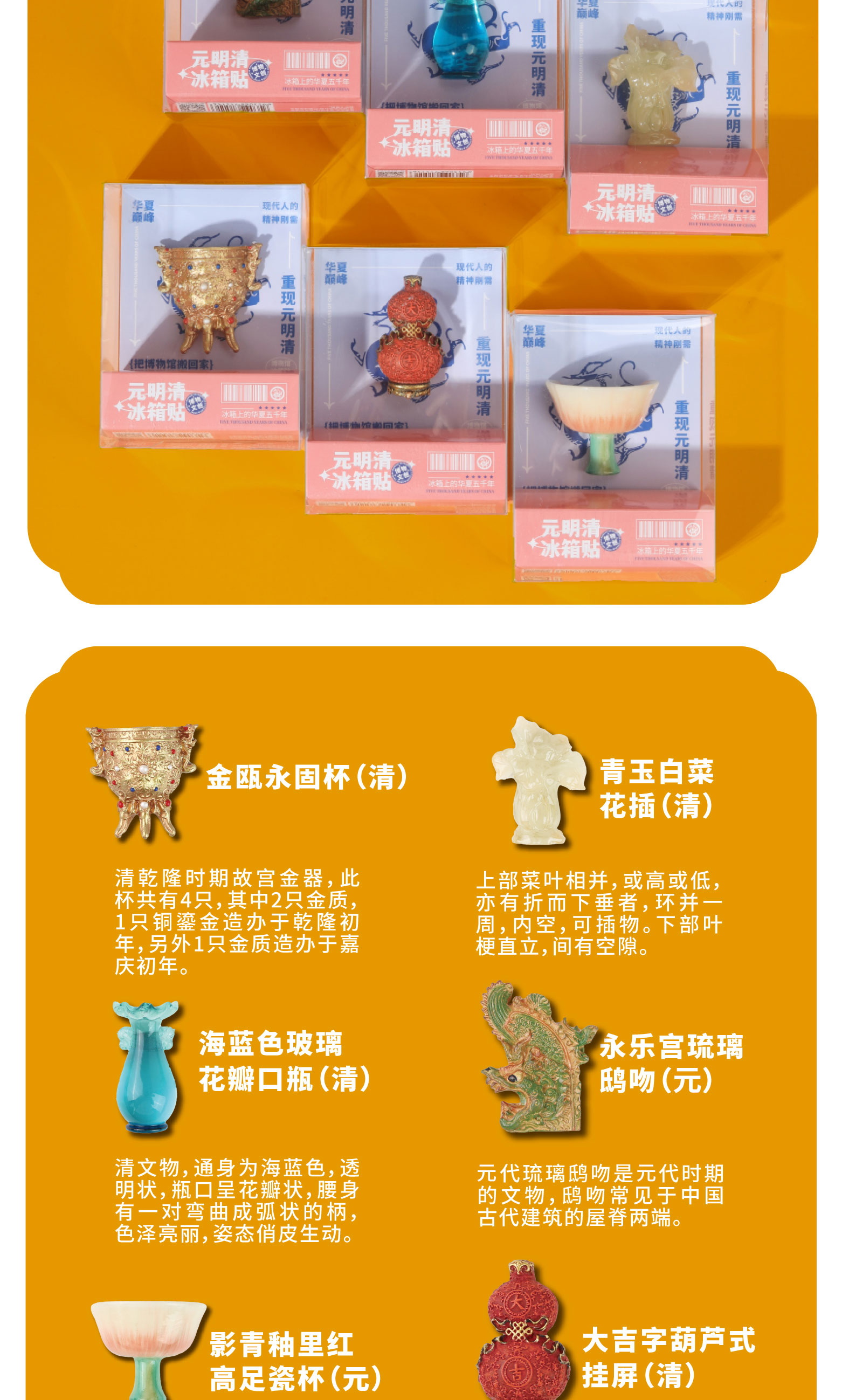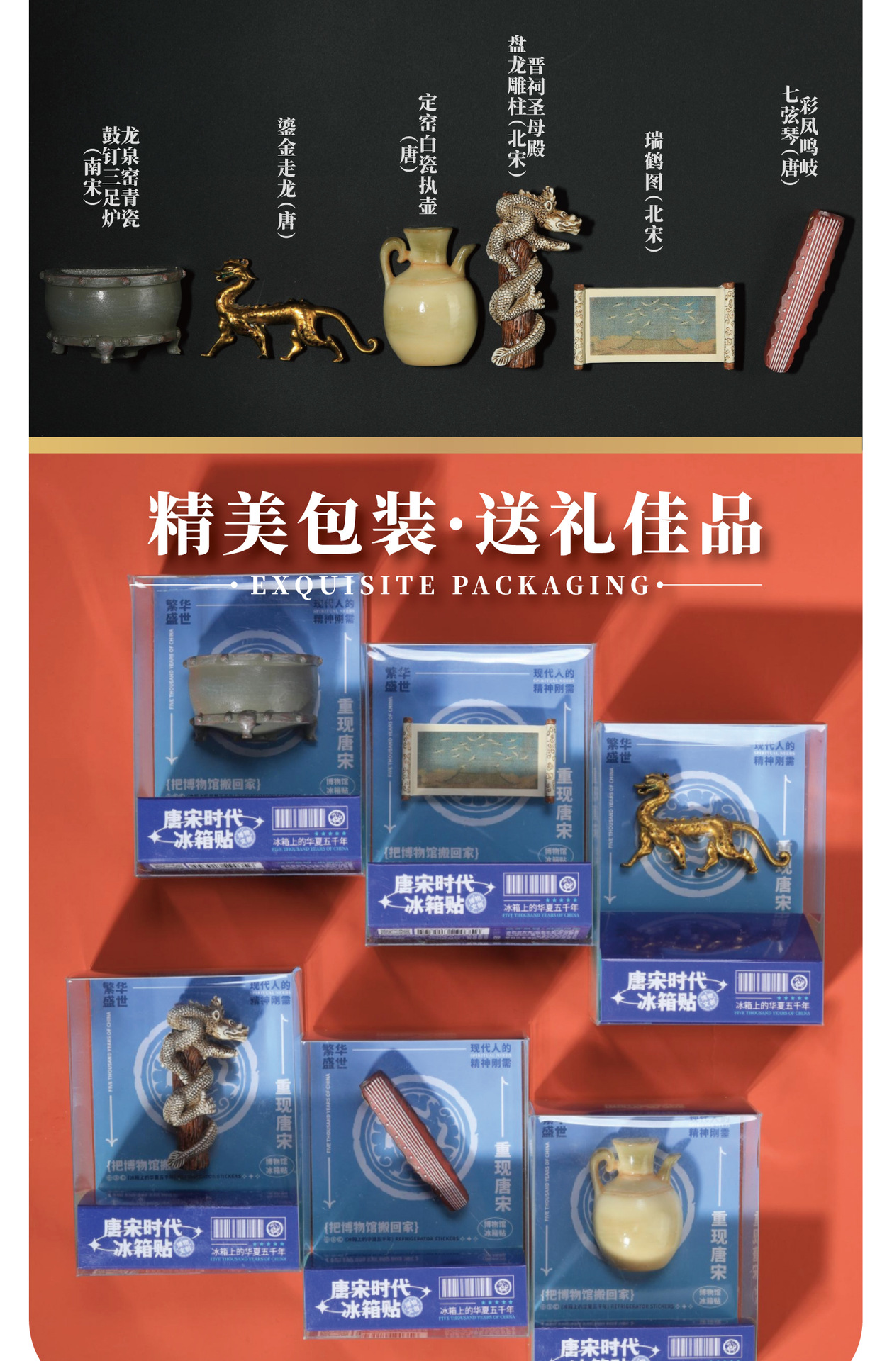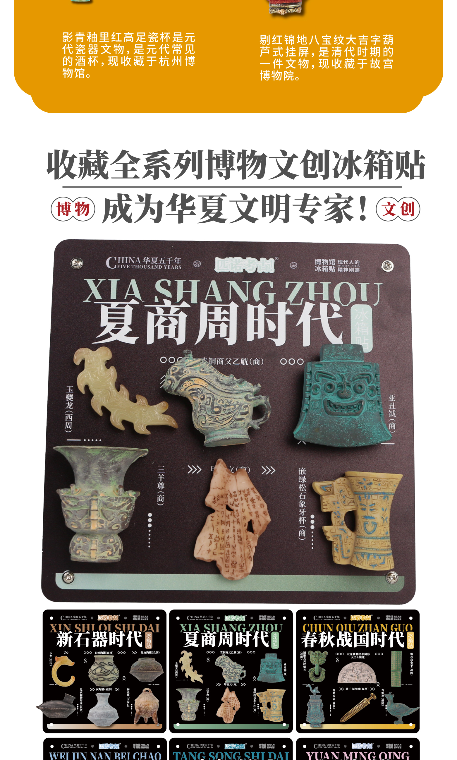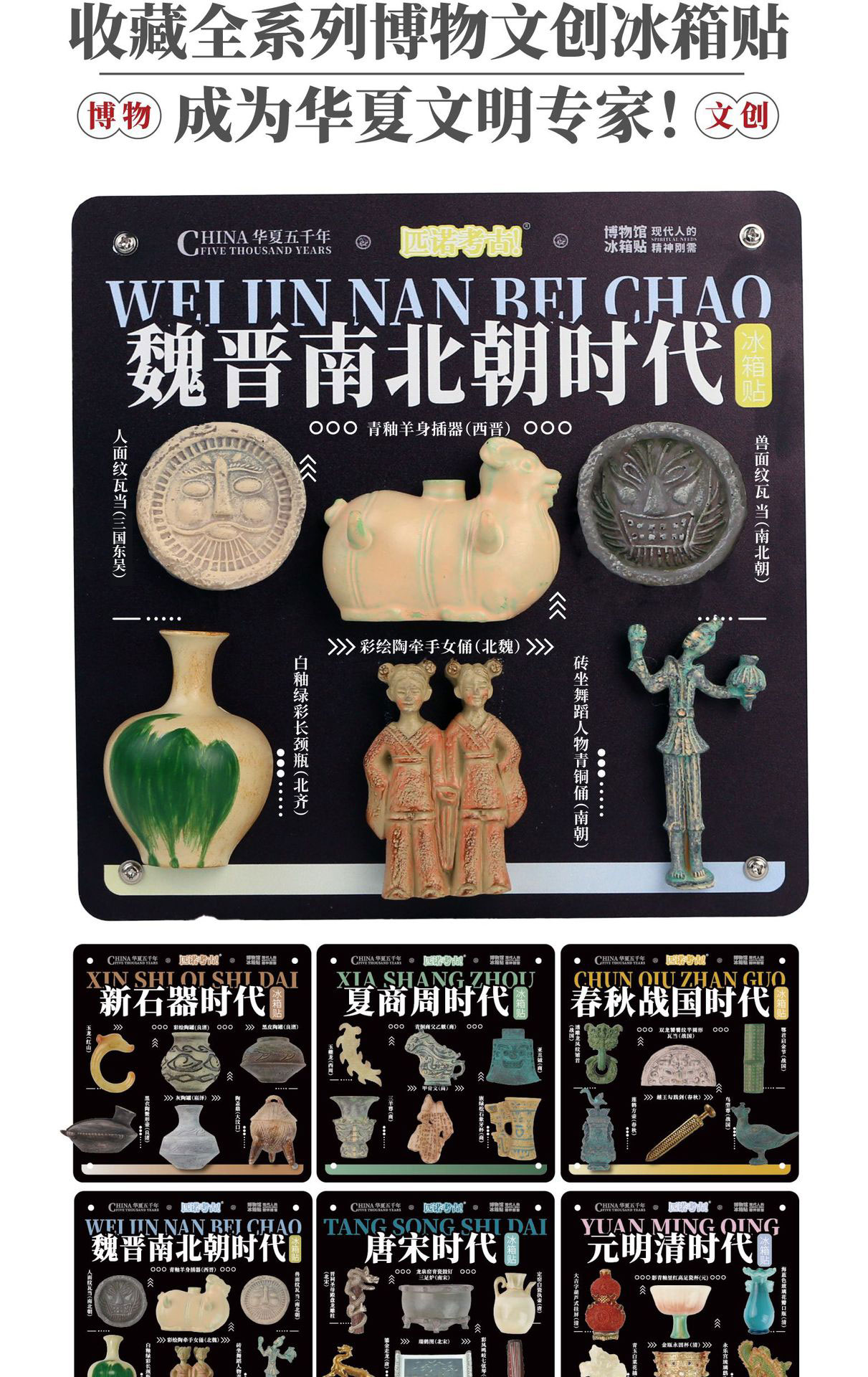 【全历史时代冰箱贴】从新石器时代到唐宋元明清 国宝文物冰箱贴 可搭配磁吸背景板