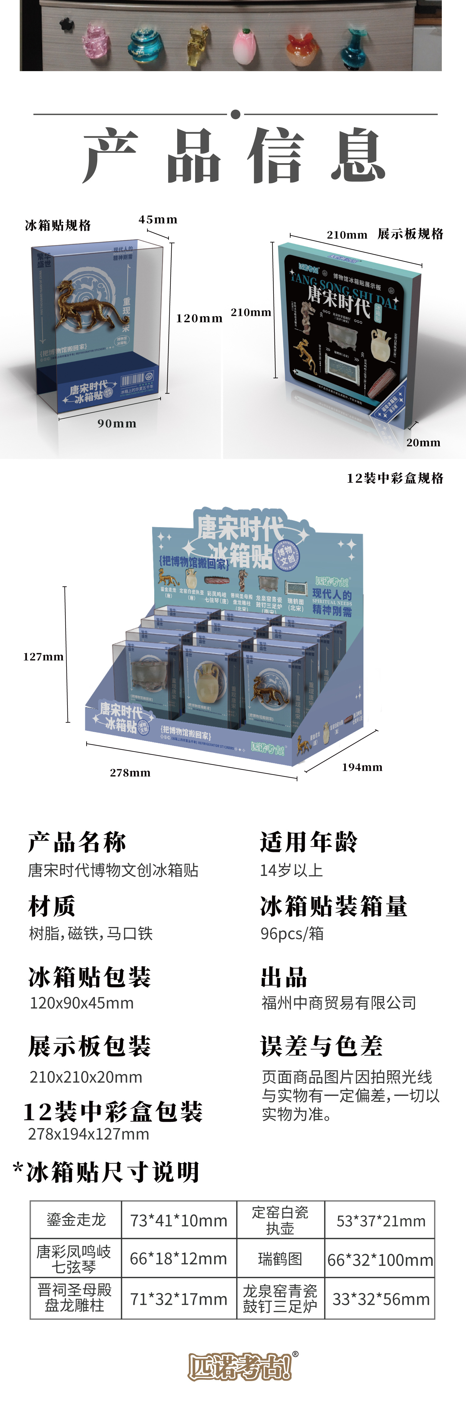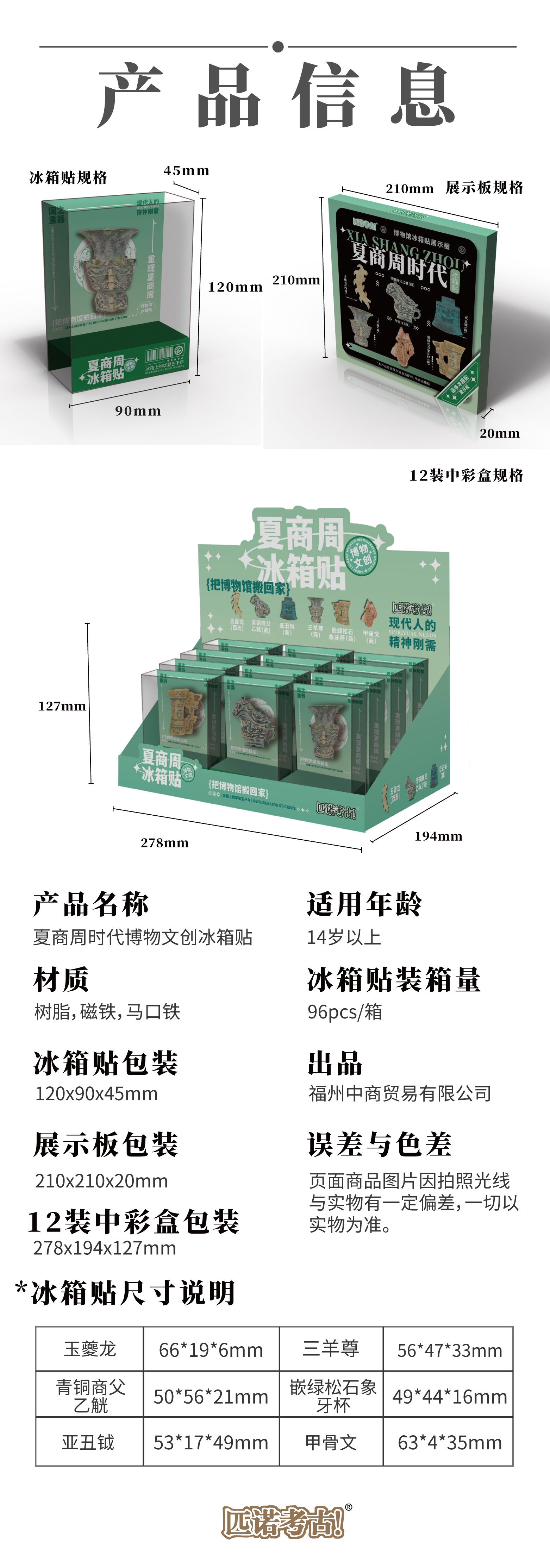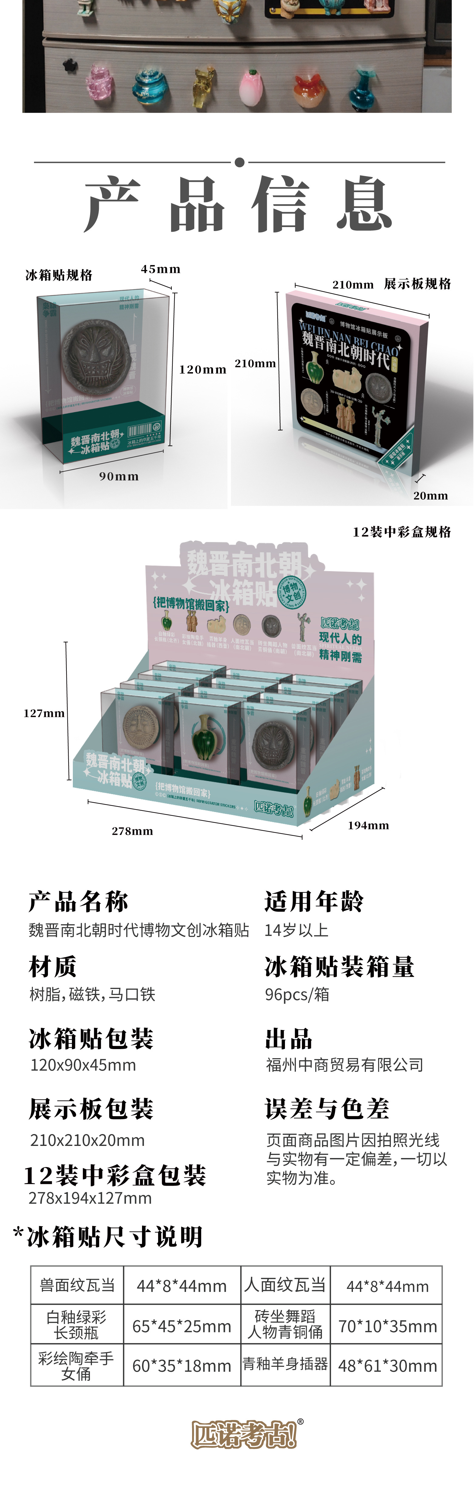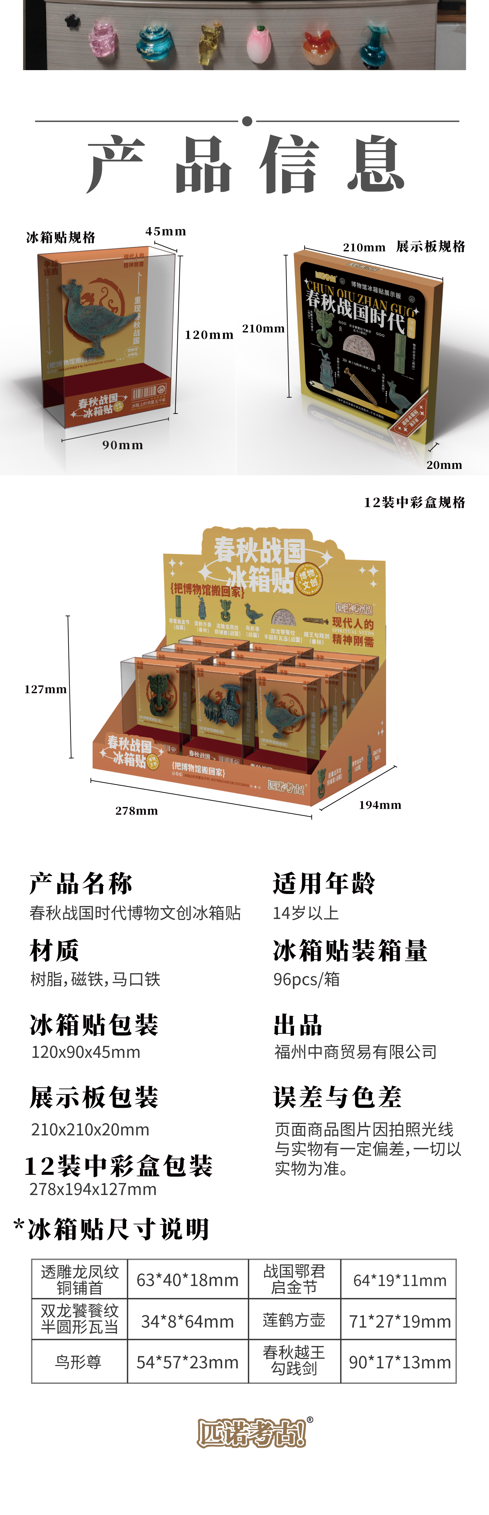 【全历史时代冰箱贴】从新石器时代到唐宋元明清 国宝文物冰箱贴 可搭配磁吸背景板
