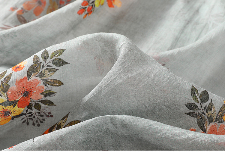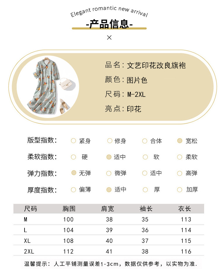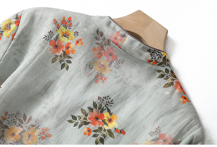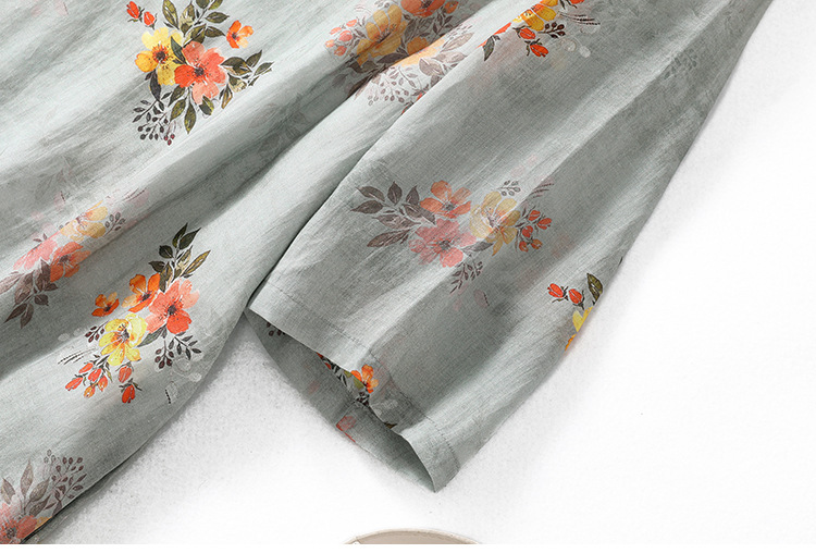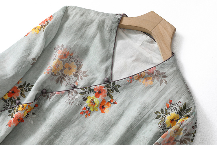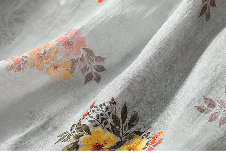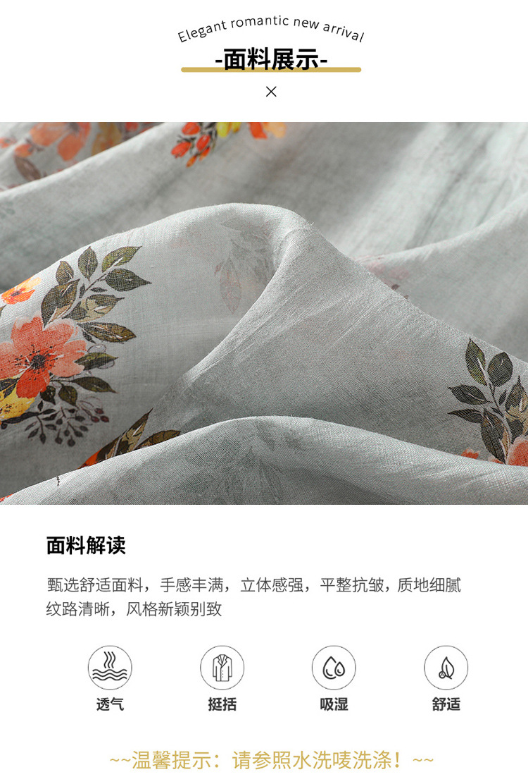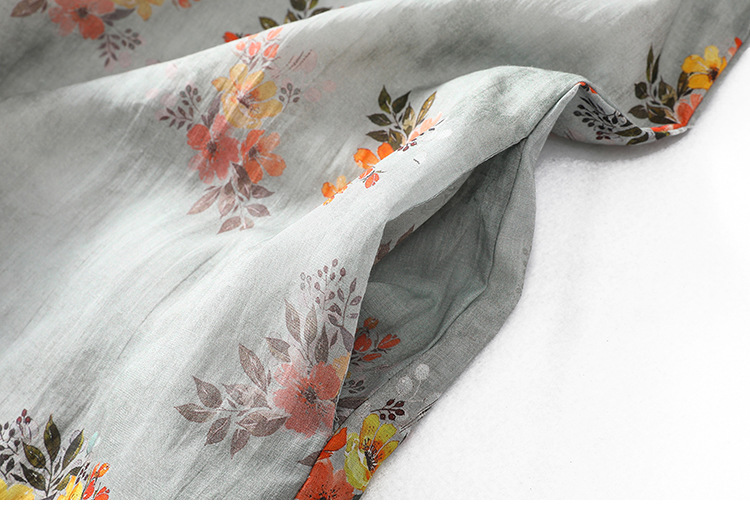 XYF-9083 2023春夏新款复古花色棉麻v领宽松显瘦遮肉中长款短袖连衣裙女