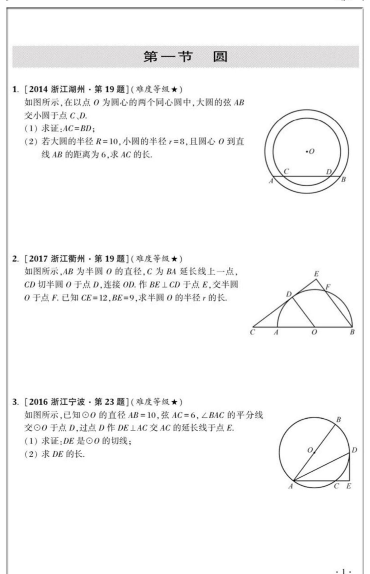 浙江省初中数学星级训练中考压轴题函数圆三角形与四边形全3册